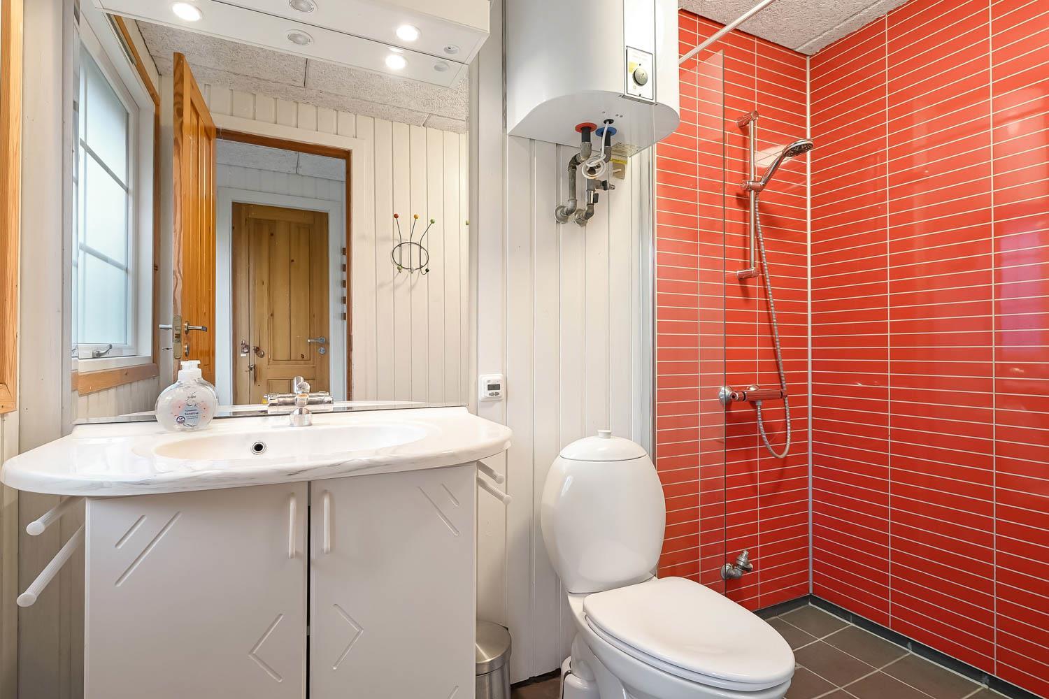 Huset har varmepumpe og brændeovn, som sikrer en behagelig temperatur og begrænser udgifterne til forbrug året rundt. Badeværelse med bruser, toilet, håndvask og klinkegulv med gulvvarme. Flotte laminatgulve i alle soverum og i opholdsstuen.