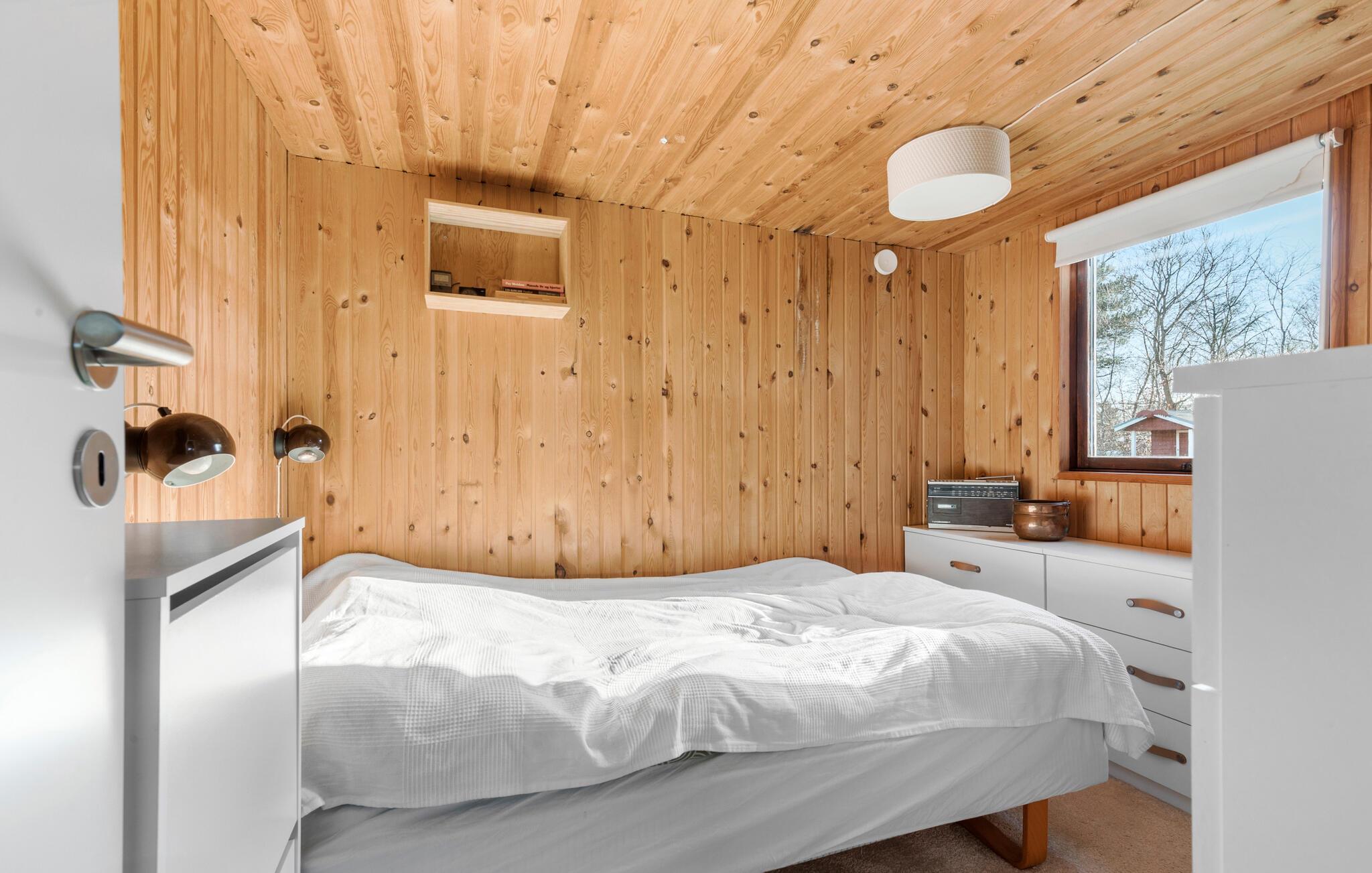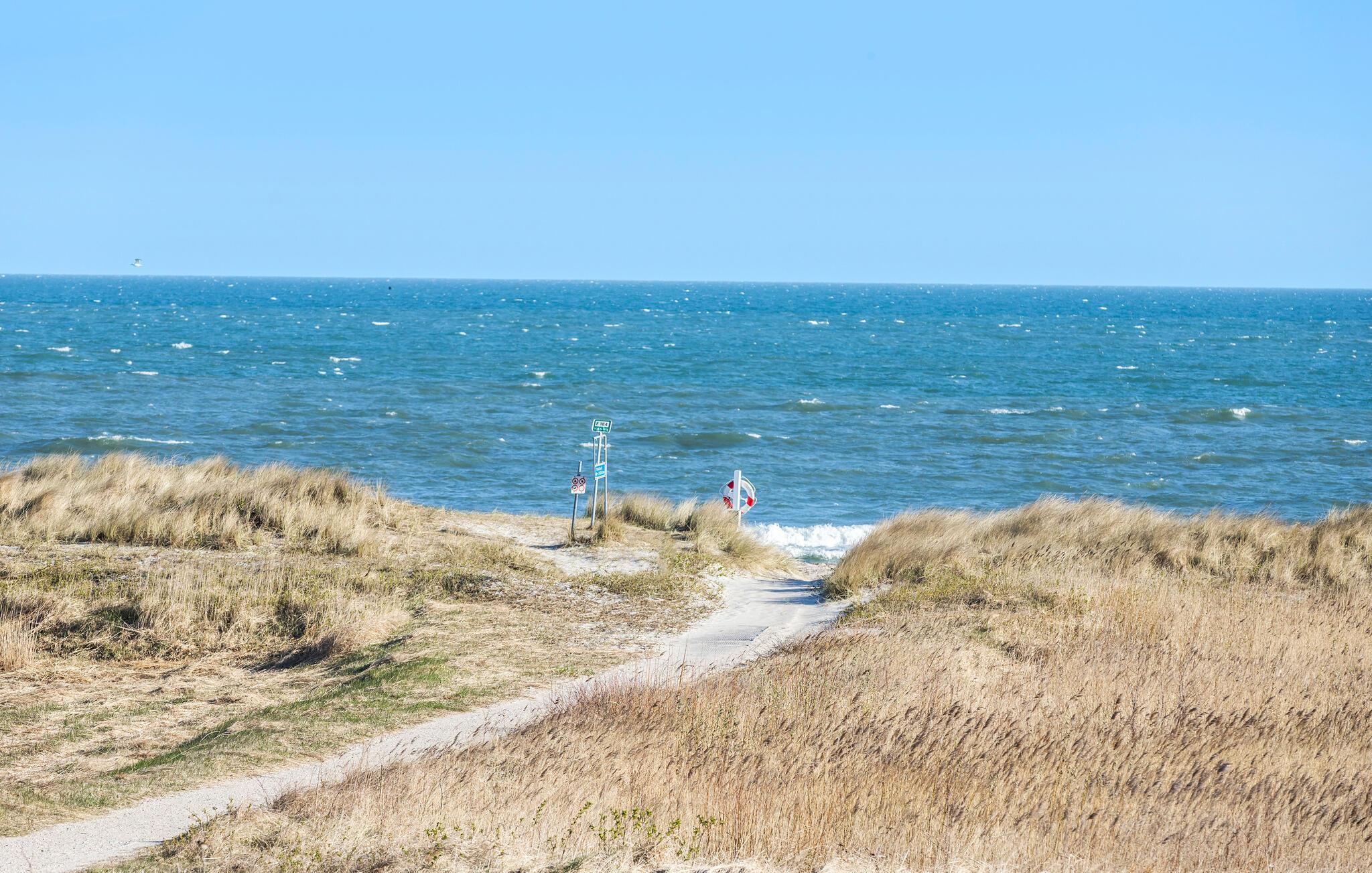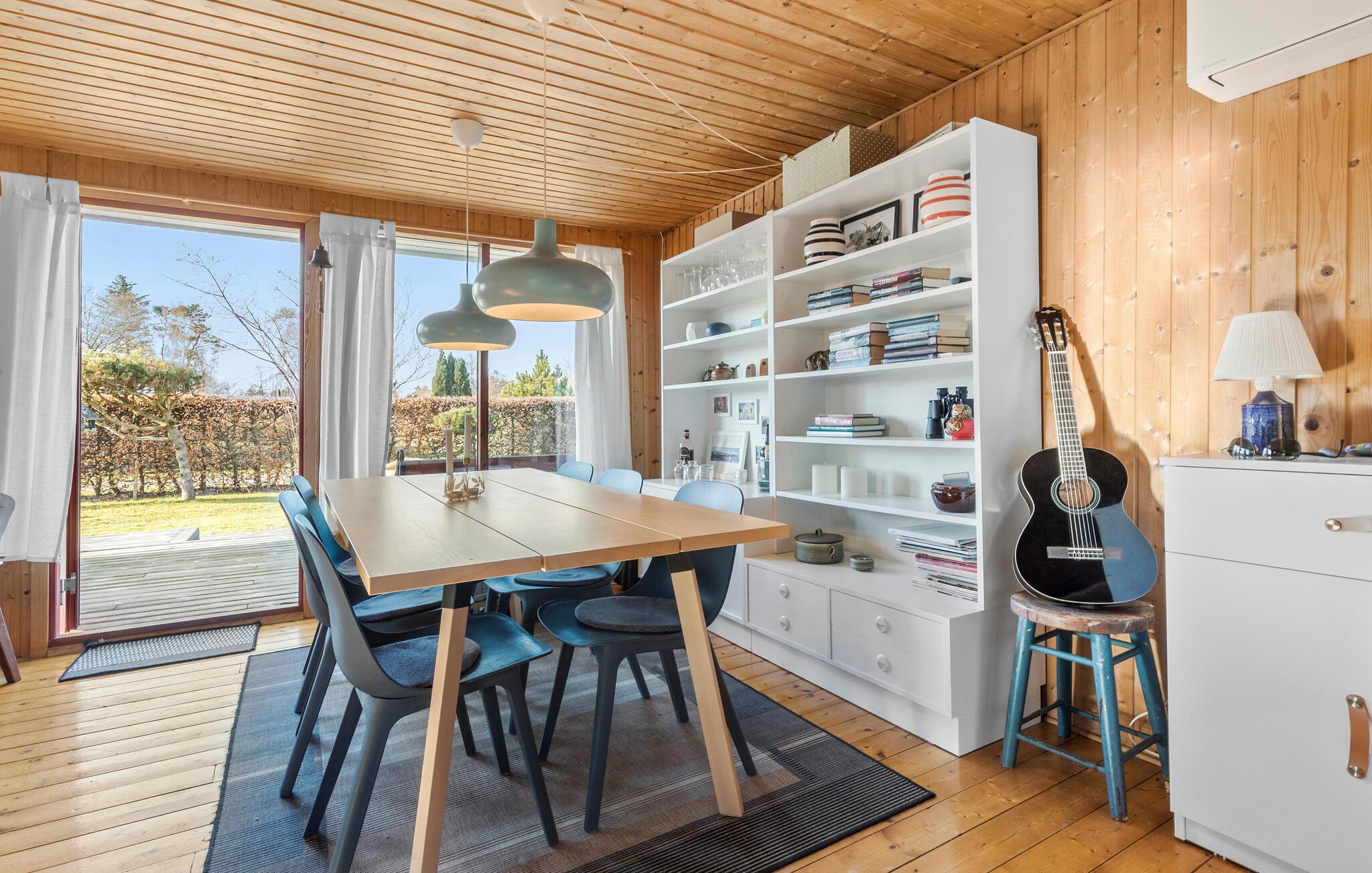 Velkommen til dette sommerhus, som kun er en kort gåtur fra den nærmeste strand. Tilbring afslappende stunder i den hyggelige opholdsstue med komfortable siddepladser og direkte adgang til terrassen. Det åbne køkken er praktisk indrettet og lægger op til hyggestunder med fælles madlavning. Der er et dejligt lys ud mod haven ved spisebordet, så her får I gode rammer om måltiderne og rolige aftener med brætspil. Husets varme træfarver skaber i sig selv en særlig ro, som gør, at alle kommer ned i gear.