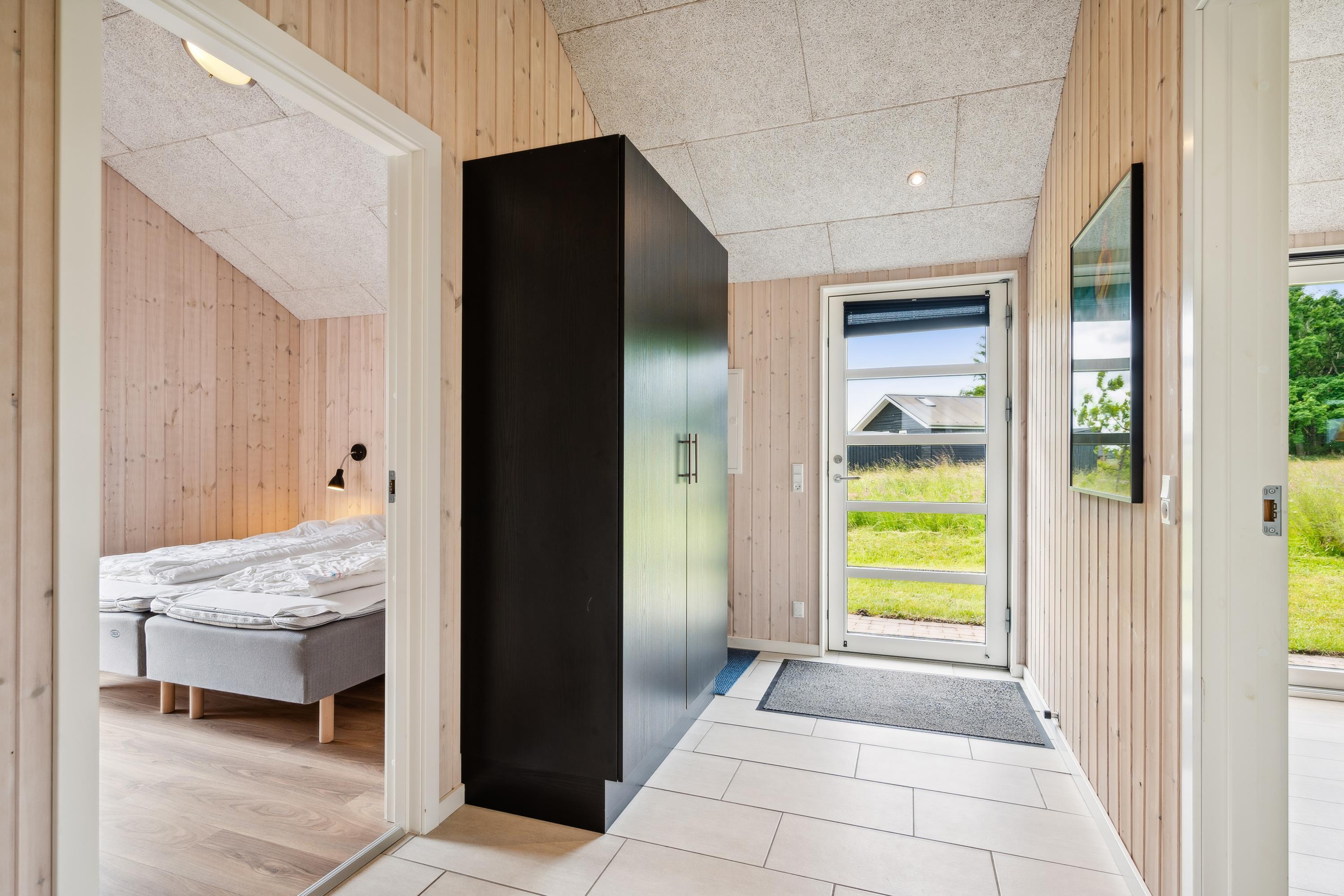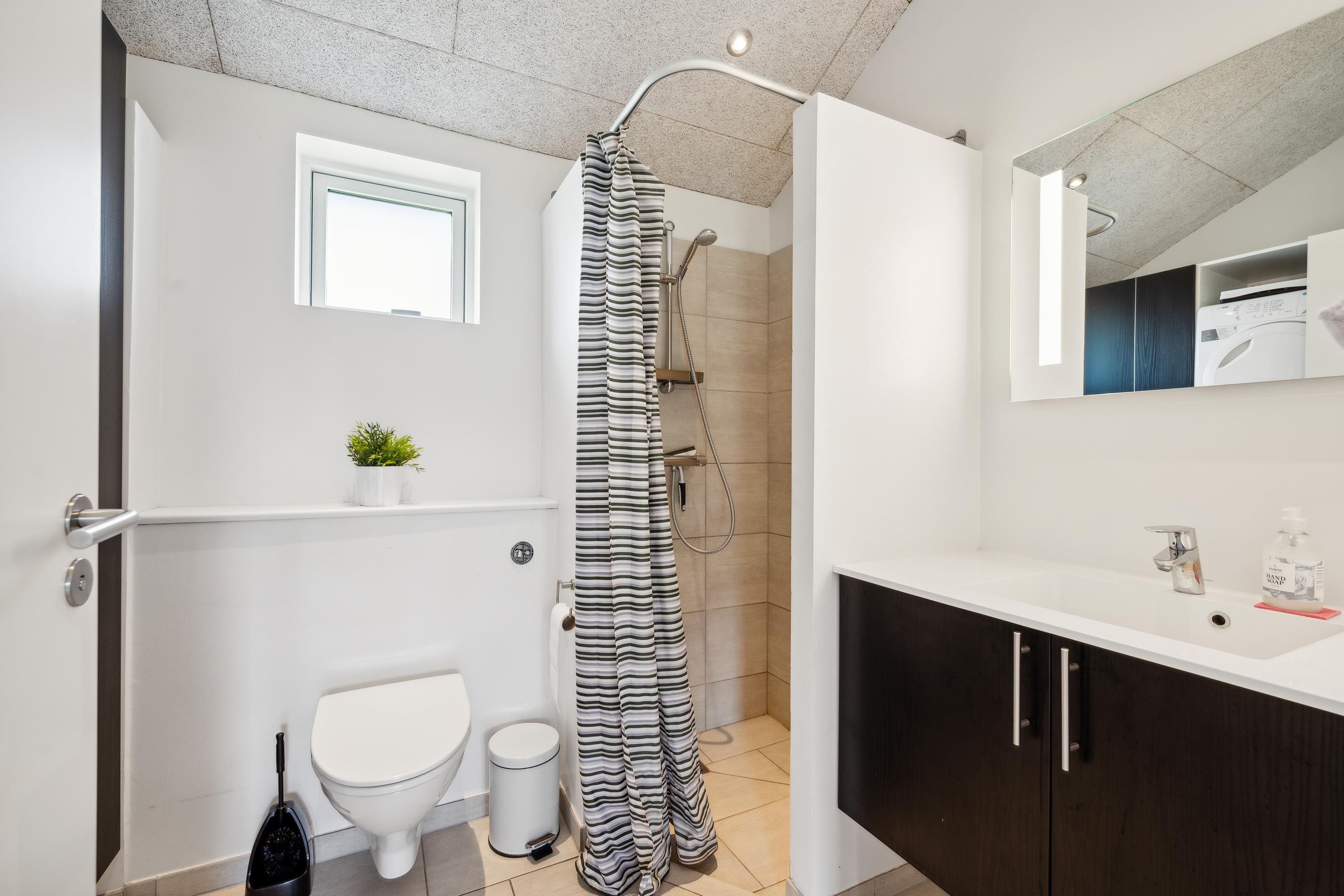 Dette moderne og rummelige sommerhus med 3 dejlige soveværelser har plads til op til 6 voksne og 2 børn (hemsepladser med madras). Et flot og lyst badeværelse med gulvvarme og bruseniche. Sæt jer godt til rette ved brændeovnen i stuen, lyt til den knitrende ild og nyd den vidunderlige udsigt over omgivelserne gennem gulv til loft-vinduerne, der også giver et dejligt lysindfald i huset. Der er både vaskemaskine, tørretumbler og opvaskemaskine til rådighed i feriehuset.