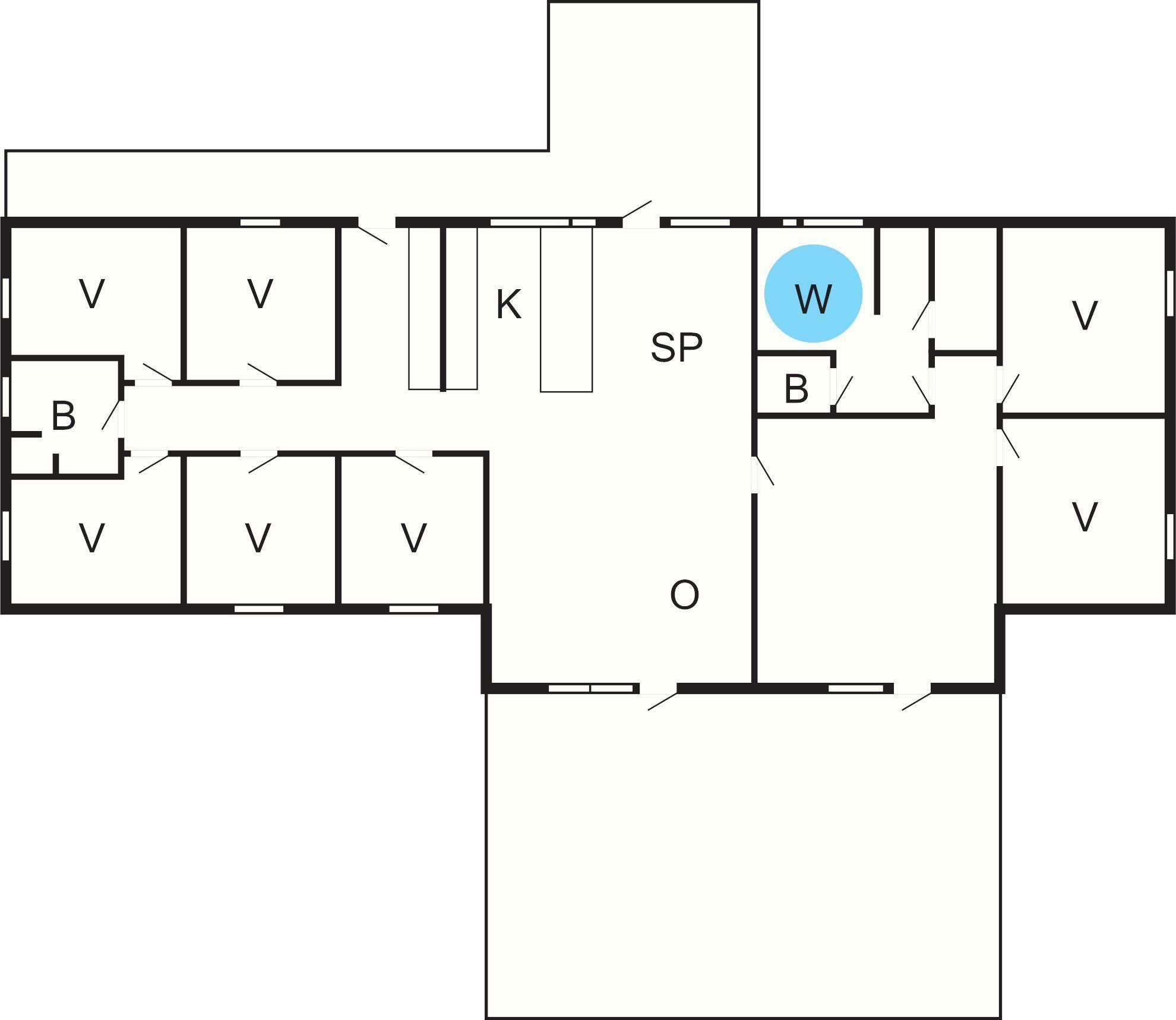 7 Soveværelser: (1DS)+(1DS)+(1DS)+(4K)+(1DS)+(1DS)+(1DS)