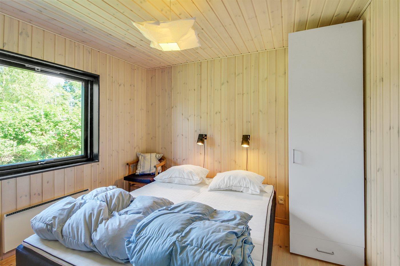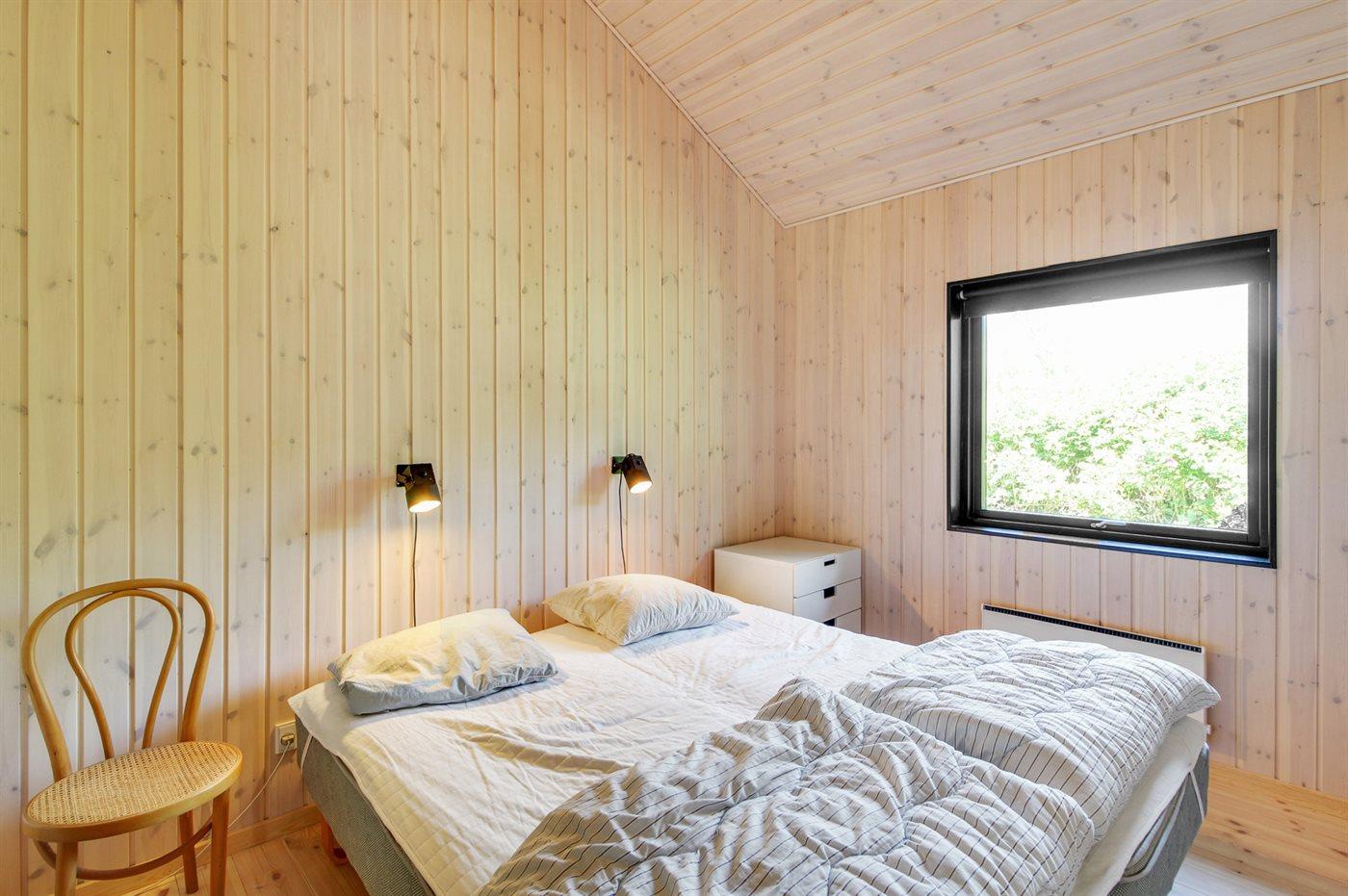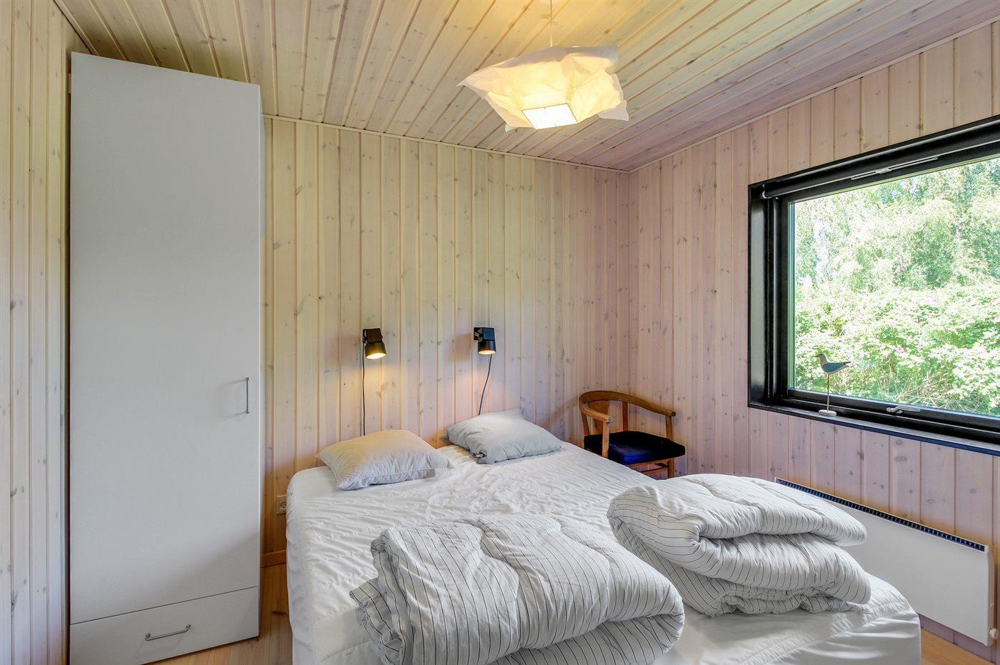 Der er i alt 3 soveværelser. Sovepladserne fordeler sig på: 6 sovepladser i dobbeltsenge. 2 sovepladser på madrasser. 2 af disse sovepladser befinder sig på husets hems. Derudover er der 1 stk. barneseng.