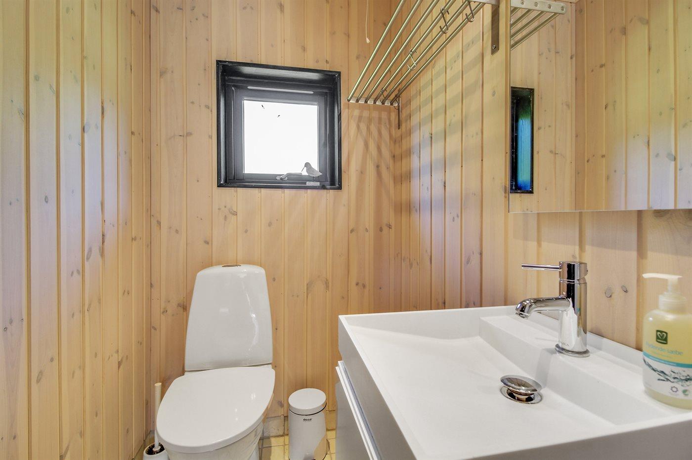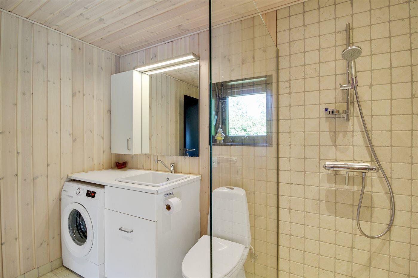 Der er 1 badeværelse med bruseniche og 2 toiletter, heraf 1 gæstetoilet. Der er gulvvarme på 1 badeværelse. Der er gulvvarme på gæstetoilettet. I saunaen er der mulighed for afslapning.