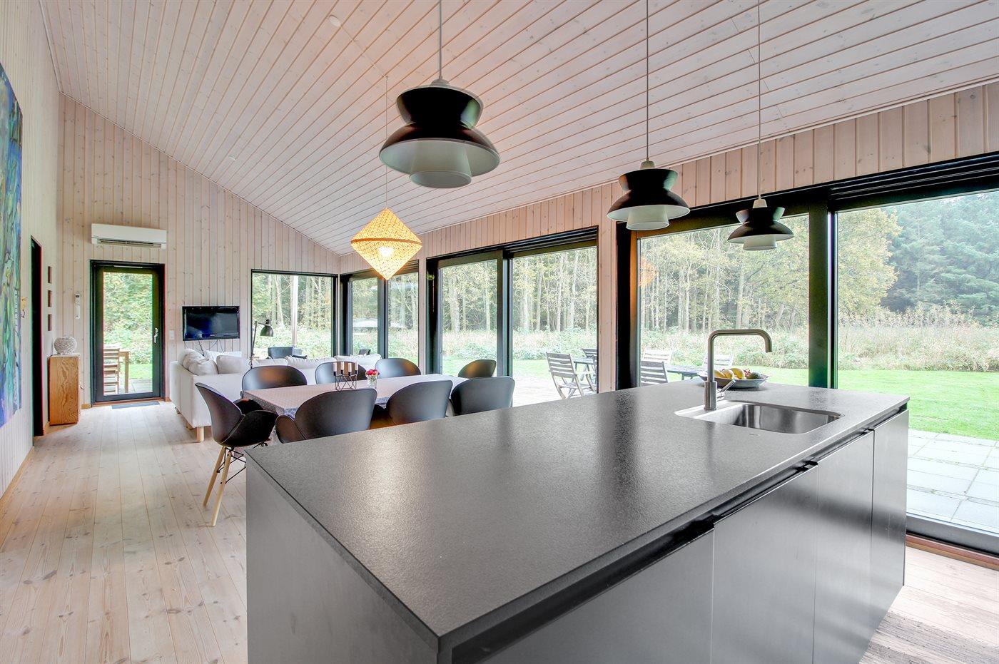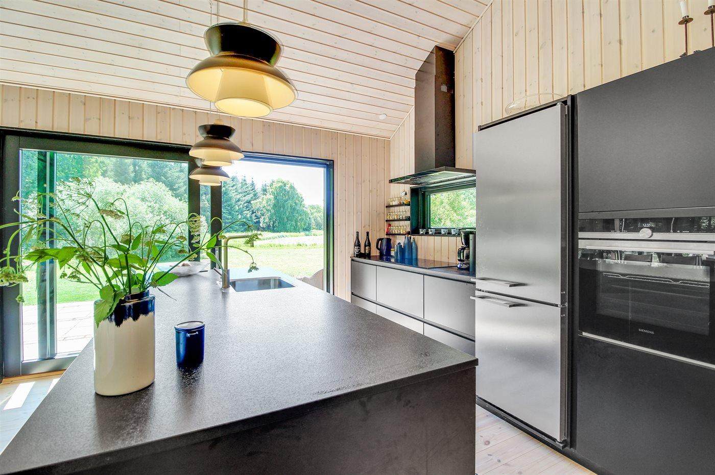 Køkkenet er udstyret med 1 køleskab. Der er 4 induktionskogeplader, varmluftovn samt opvaskemaskine.