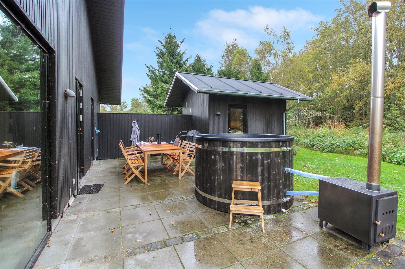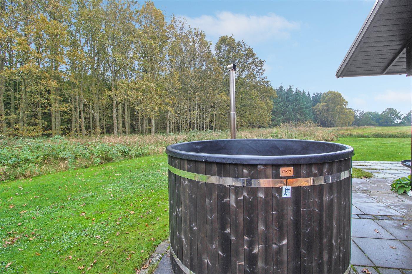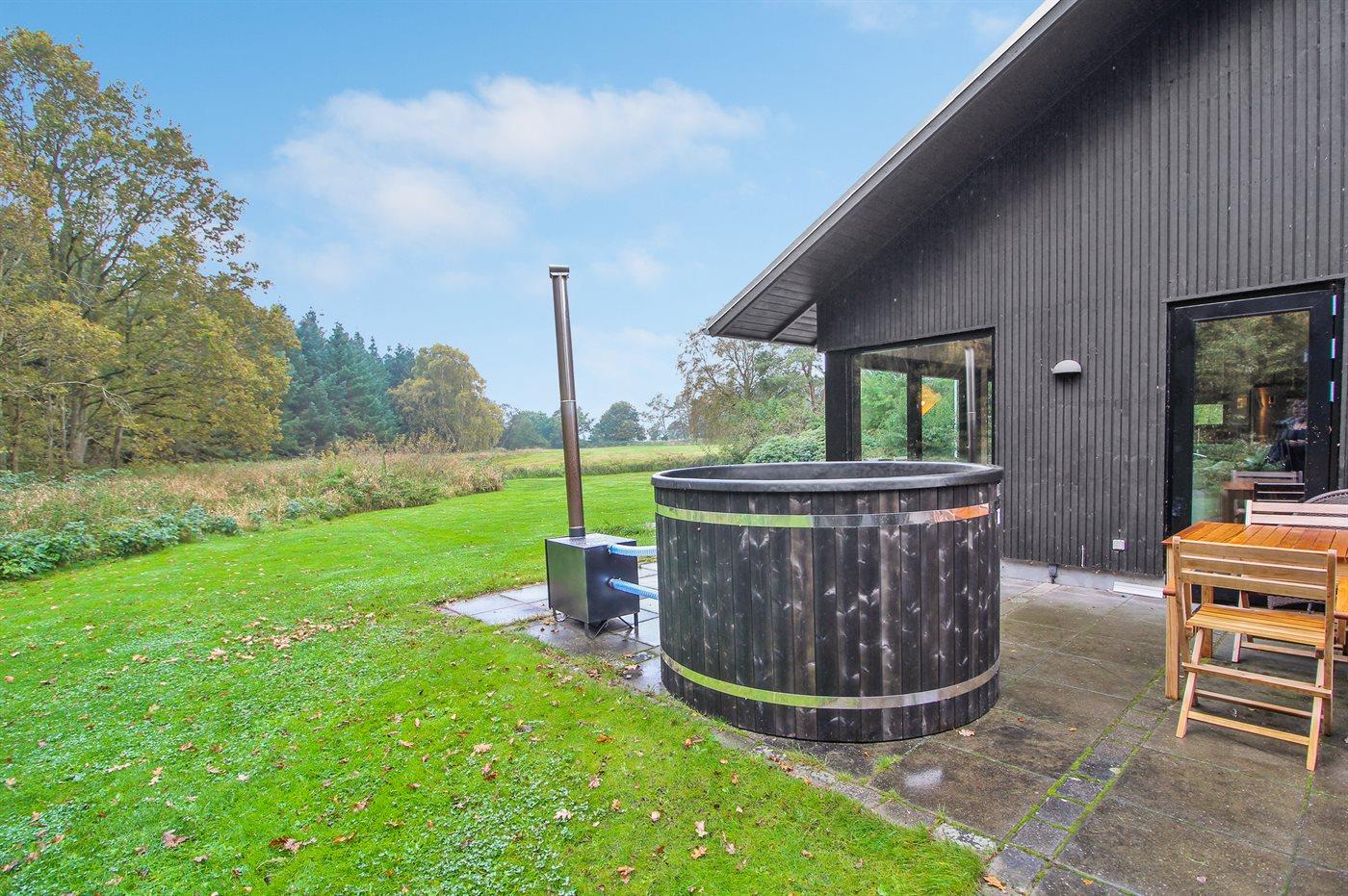 Der er mulighed for afslapning i det udendørs vildmarkskar til 4 personer.