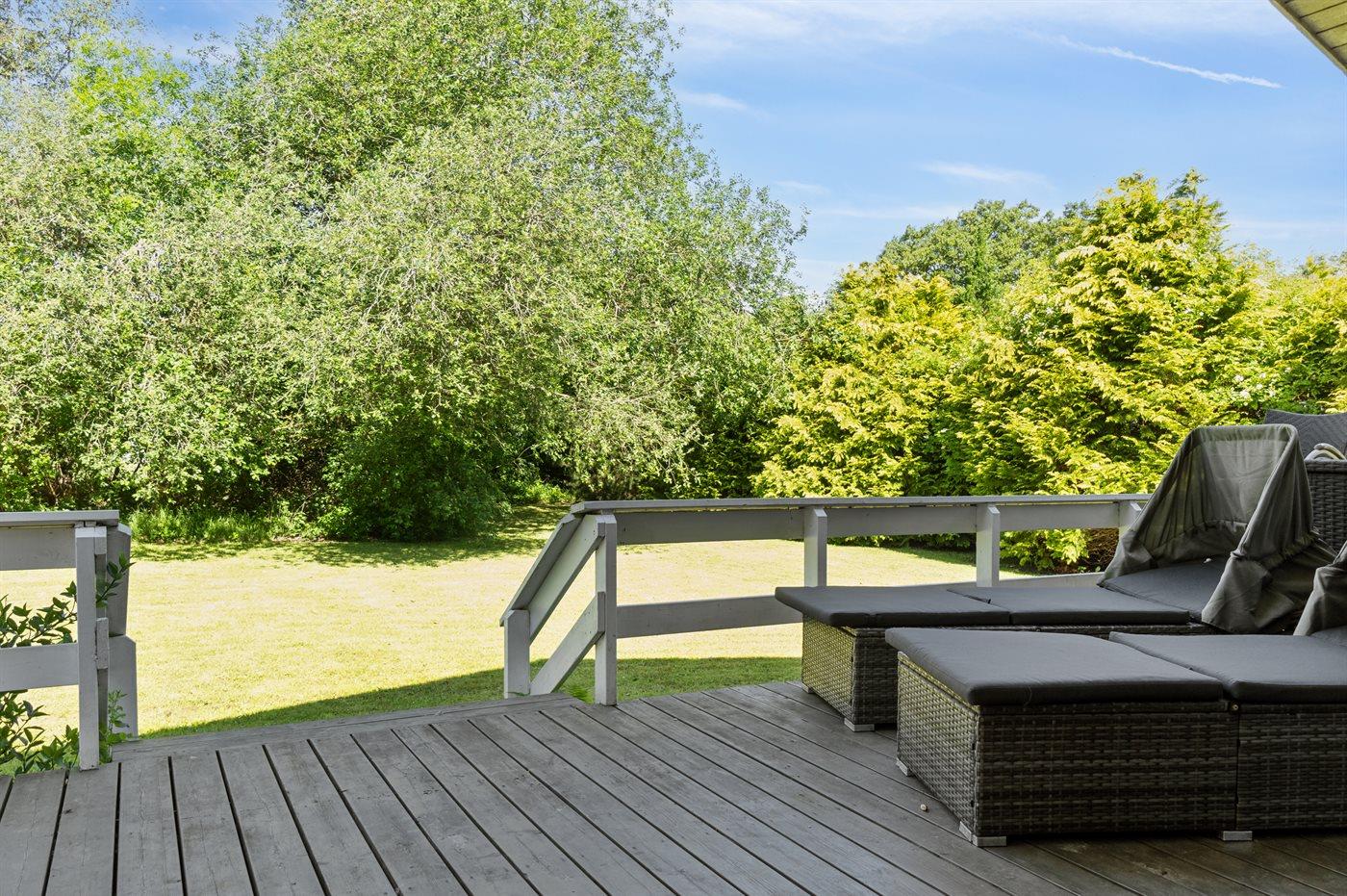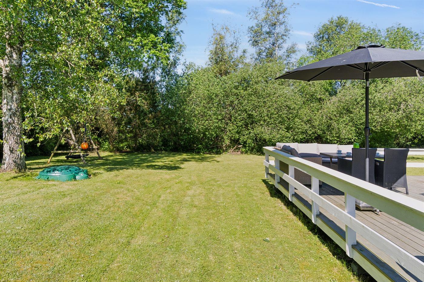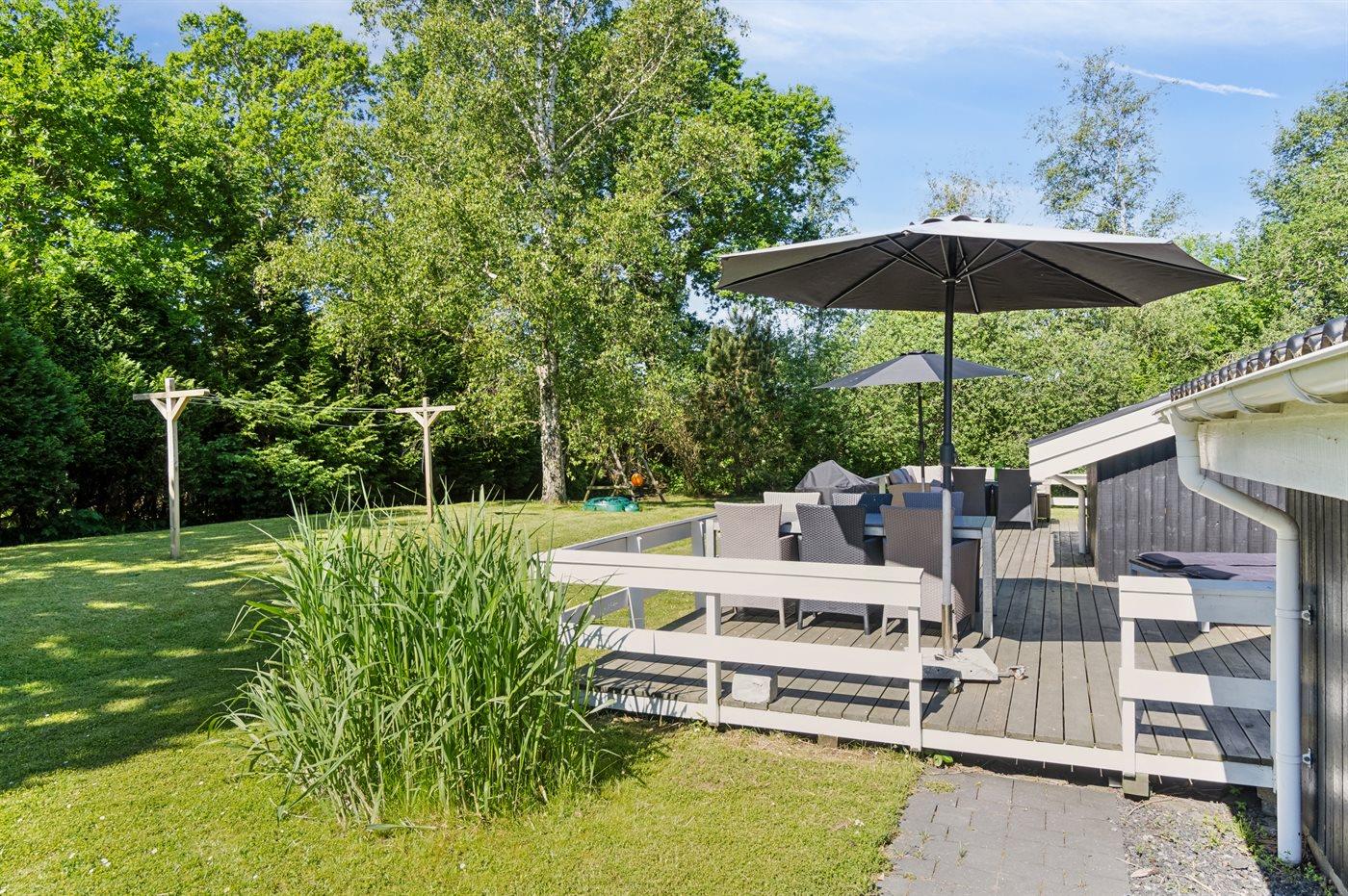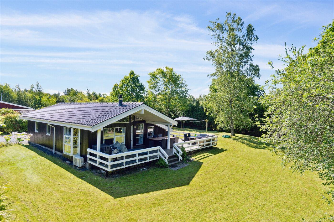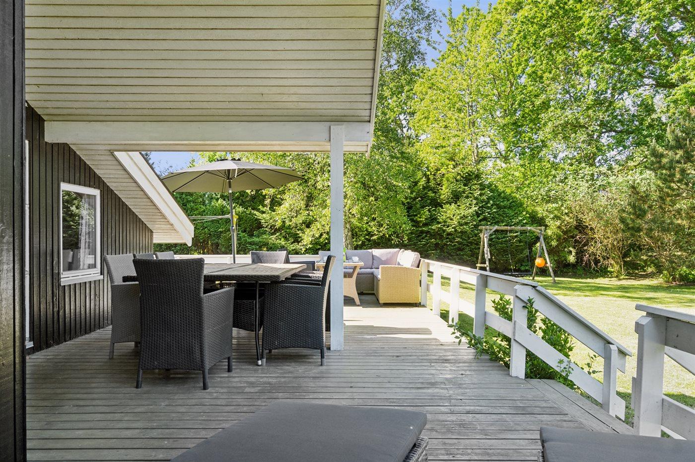 Ferieboligen er beliggende på en 1200 m² stor naturgrund. Der er 350 m til havet. Nærmeste forretning er beliggende i en afstand af 3000 m. Til ferieboligen hører åbent terrasseareal. Desuden er der overdækket terrasse. Der er redskabsrum. Gynge. Sandkasse. Grill til rådighed. Der er installeret stik til opladning af elbil. Type 2 stik. Med 11 kW ladeeffekt. Parkering ved ferieboligen.