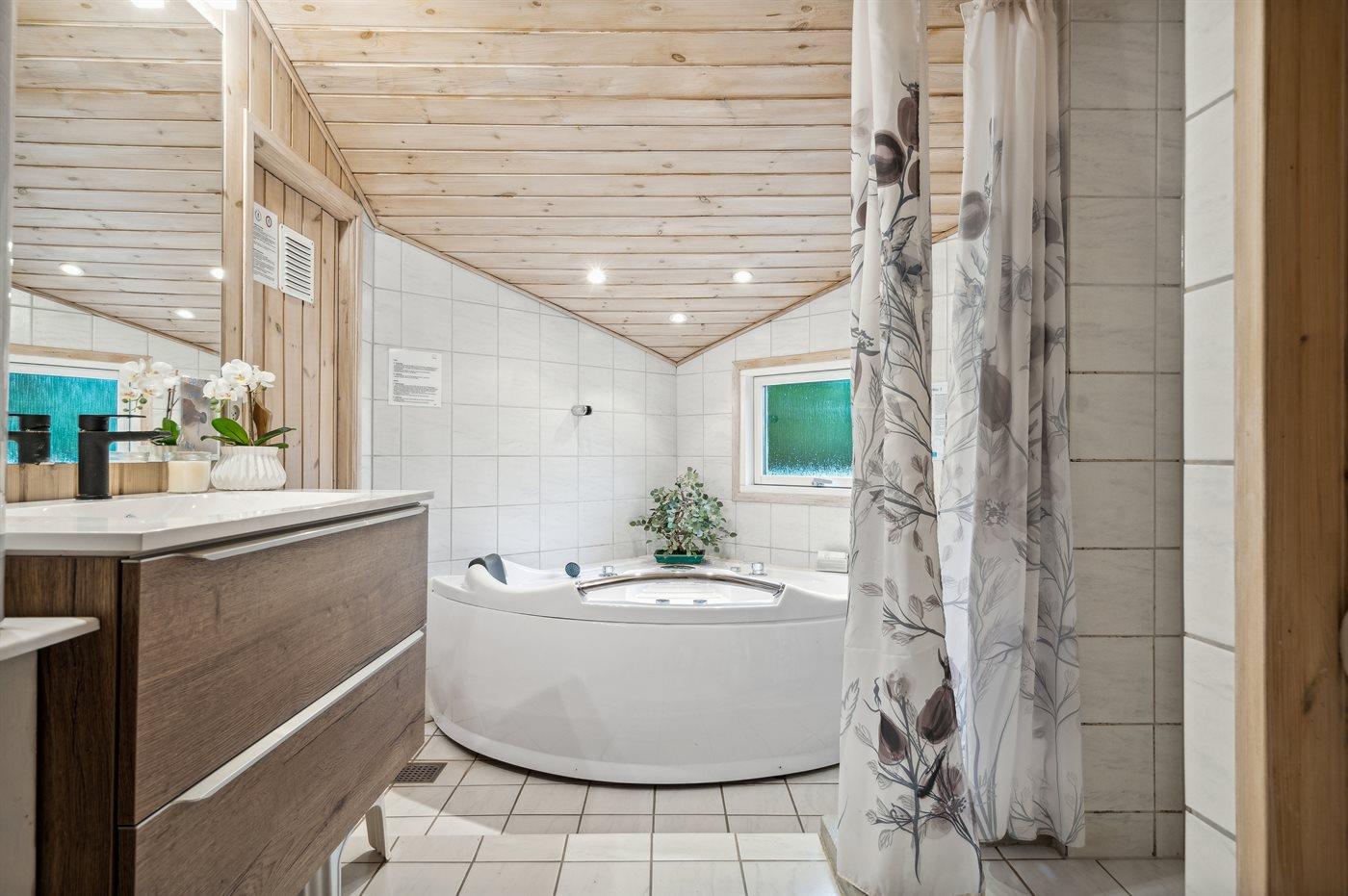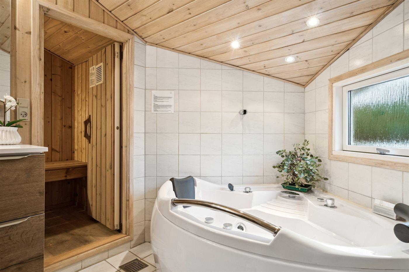 Der er 1 badeværelse med bruseniche og 2 toiletter. Der er gulvvarme på 1 badeværelse. I saunaen er der mulighed for afslapning.