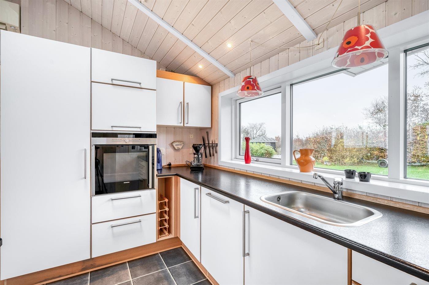 Køkkenet er udstyret med 1 køleskab. Der er 4 induktionskogeplader, varmluftovn samt opvaskemaskine.