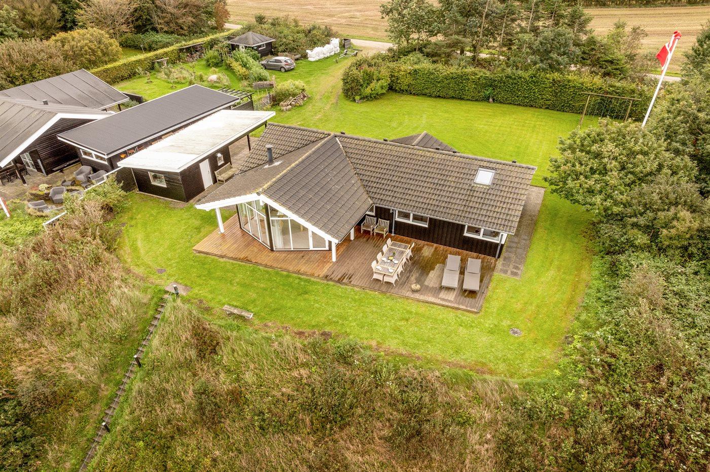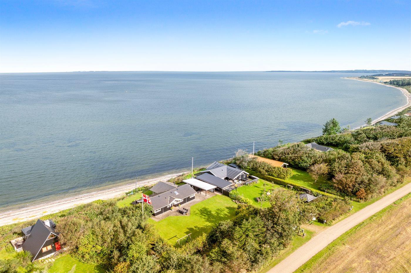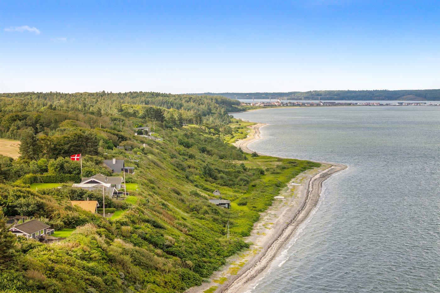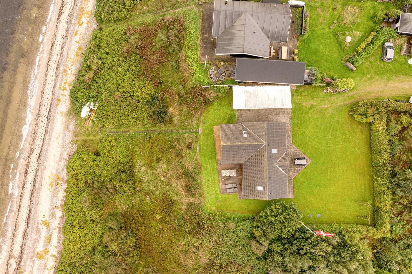 Ferieboligen er beliggende på en 2300 m² stor naturgrund. Der er 10 m til fjorden. Nærmeste forretning er beliggende i en afstand af 6000 m. Der er en golfbane i en afstand af 10000 m. Til ferieboligen hører åbent terrasseareal. Gynge. Grill til rådighed. Der er installeret stik til opladning af elbil. CEE stik. Parkering ved ferieboligen.