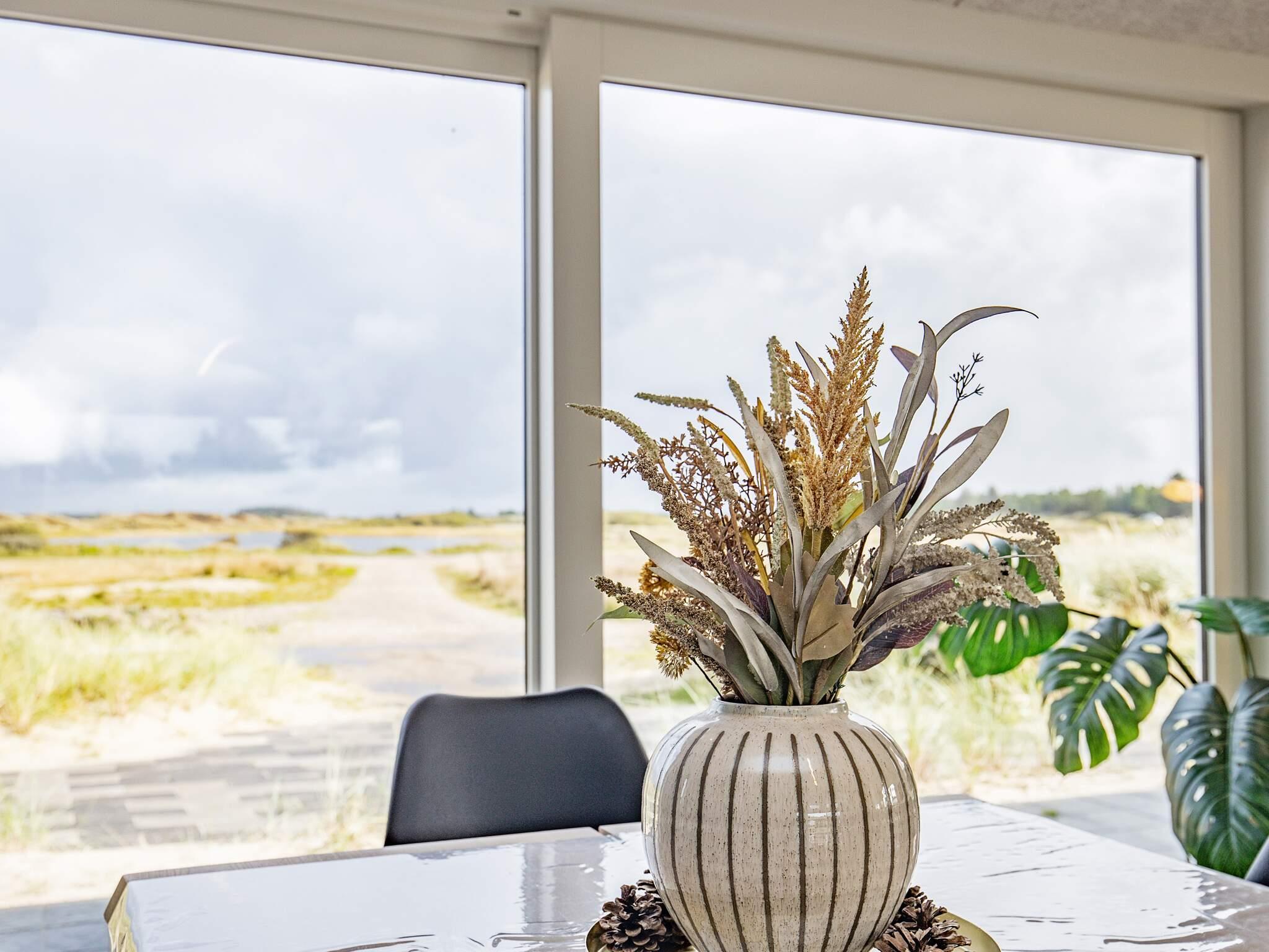 Udenfor byder den delvist overdækkede terrasse på havemøbler af høj kvalitet, liggestole og en grill, hvilket gør det til et perfekt sted at nyde solrige dage, spise udendørs eller slappe af under milde sommeraftener, mens du nyder den fantastiske klitudsigt. Den store naturgrund giver masser af plads til børn at lege eller for gæster til at slappe af i privatlivets fred.
