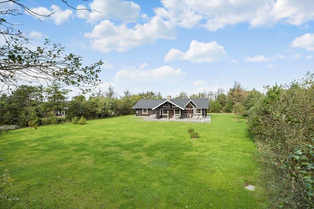 På den 1800 m2 store grund er der både carport og et flisebelagt parkeringsområde ud mod vejen. Rundt om huset er der flere terrasseområder at vælge imellem – inklusiv et overdækket areal, som hurtigt kan blive favoritpladsen om aftenen, når duggen falder, men vejret stadig er for godt til at gå helt indenfor. På den vidtstrakte græsplæne har I masser af plads til at boltre jer, og hvis I medbringer petanque eller andre havespil, kan I have en turnering kørende om at blive feriens ubestridte mester.