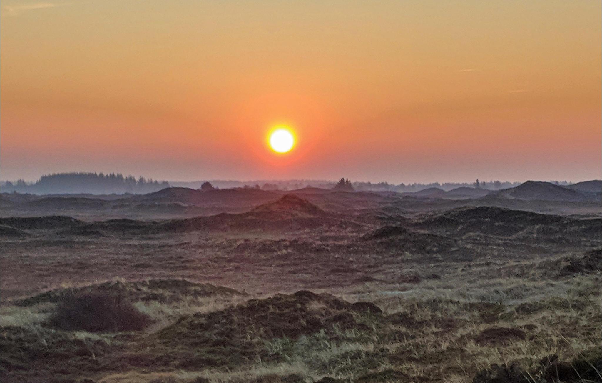 Et hyggeligt feriehus med en enkel indretning, beliggende midt i det flotte og skønne område ved Grærup Strand, og med gåafstand til én af vestkystens gode strande. Feriehuset er indrettet i en meget autentisk retro stil. Den delvis overdækkede terrasse er sydvendt, og der er gode muligheder for at finde læ på den store, kuperede og ugenerte naturgrund, der er fyldt med lyngplanter. Ved solnedgang kan I opleve de smukkeste farver på himlen inden solen går ned i havet. I bor ikke langt fra Grærup Fiskesø, hvor I kan være heldige at fange aftensmaden.