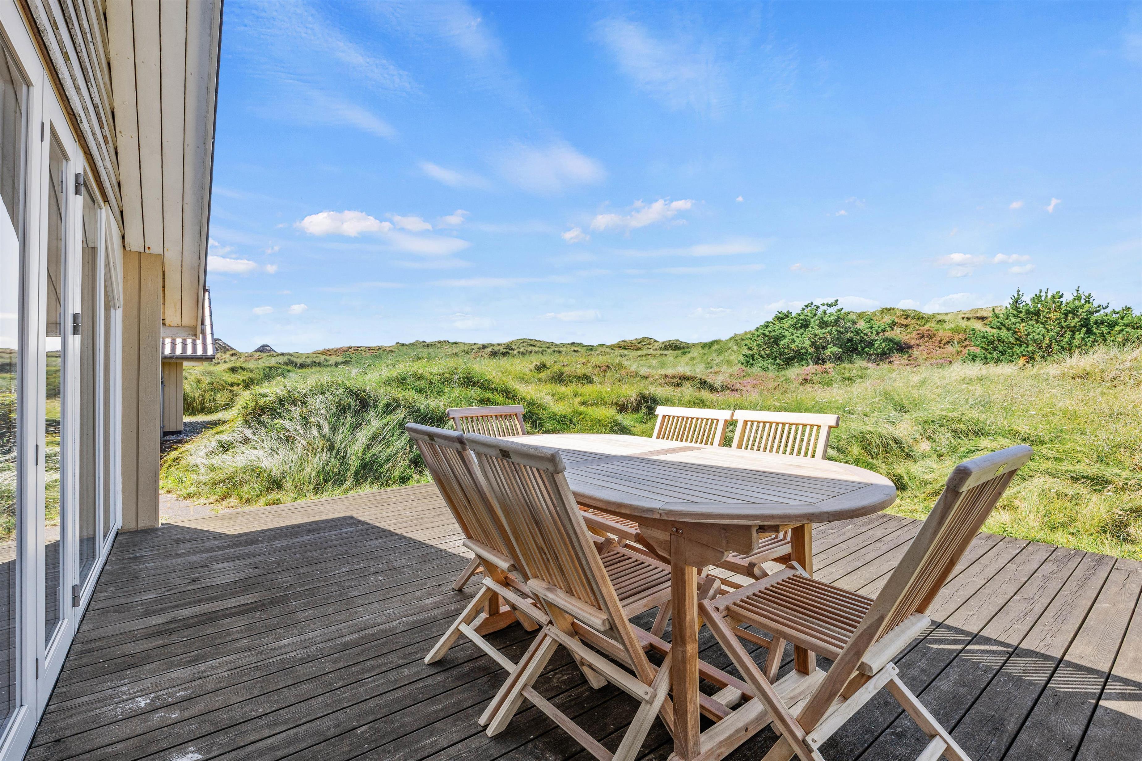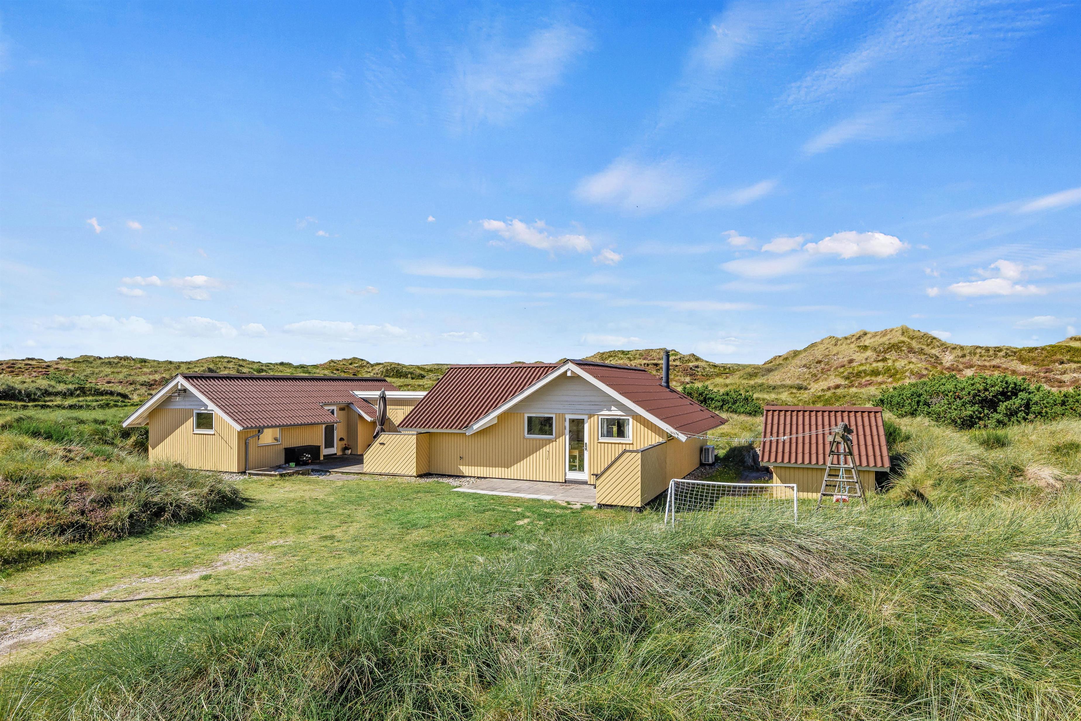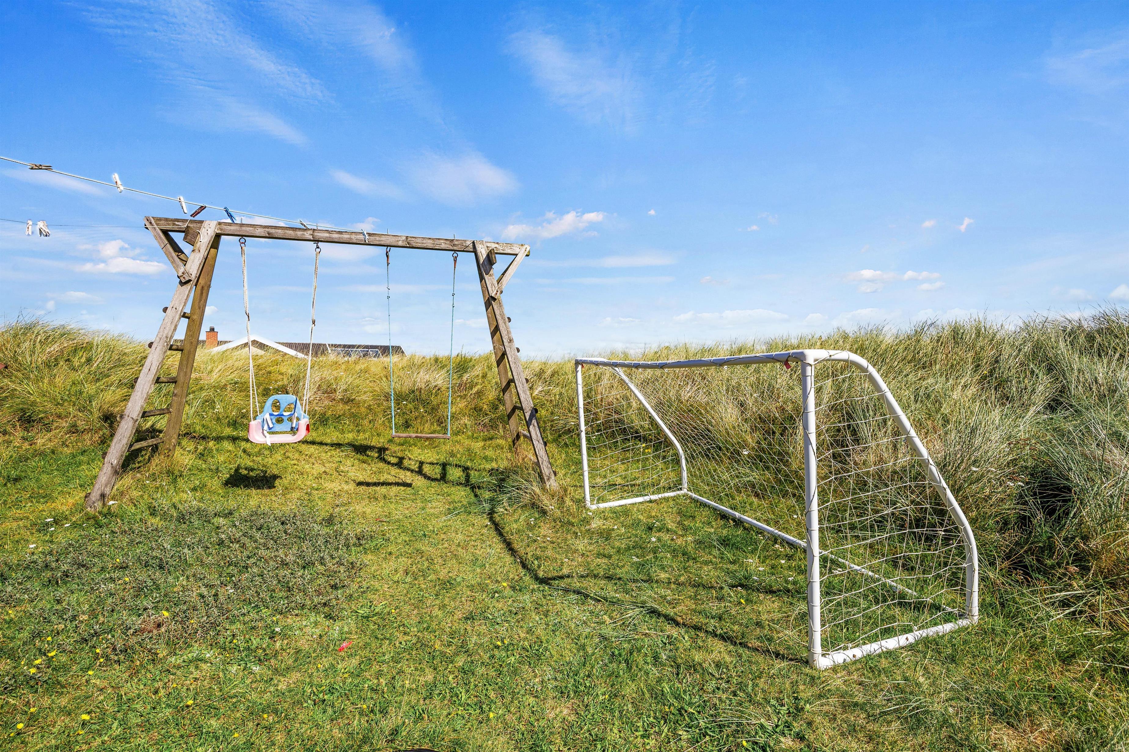 Det 3.300 m² store klitgrundstykke giver rigelig plads til leg og udforskning. Jeres børn vil elske gyngen og sandkassen, mens I kan bruge grillen på den åbne terrasse til at nyde lækre måltider i den friske luft. Den nærliggende strand er kun 200 meter væk og inviterer til hyggelige gåture eller spændende timer ved havet. Hvis I ønsker at medbringe jeres elskede firbenede ven, er feriehuset kæledyrsvenligt og tillader en hund.