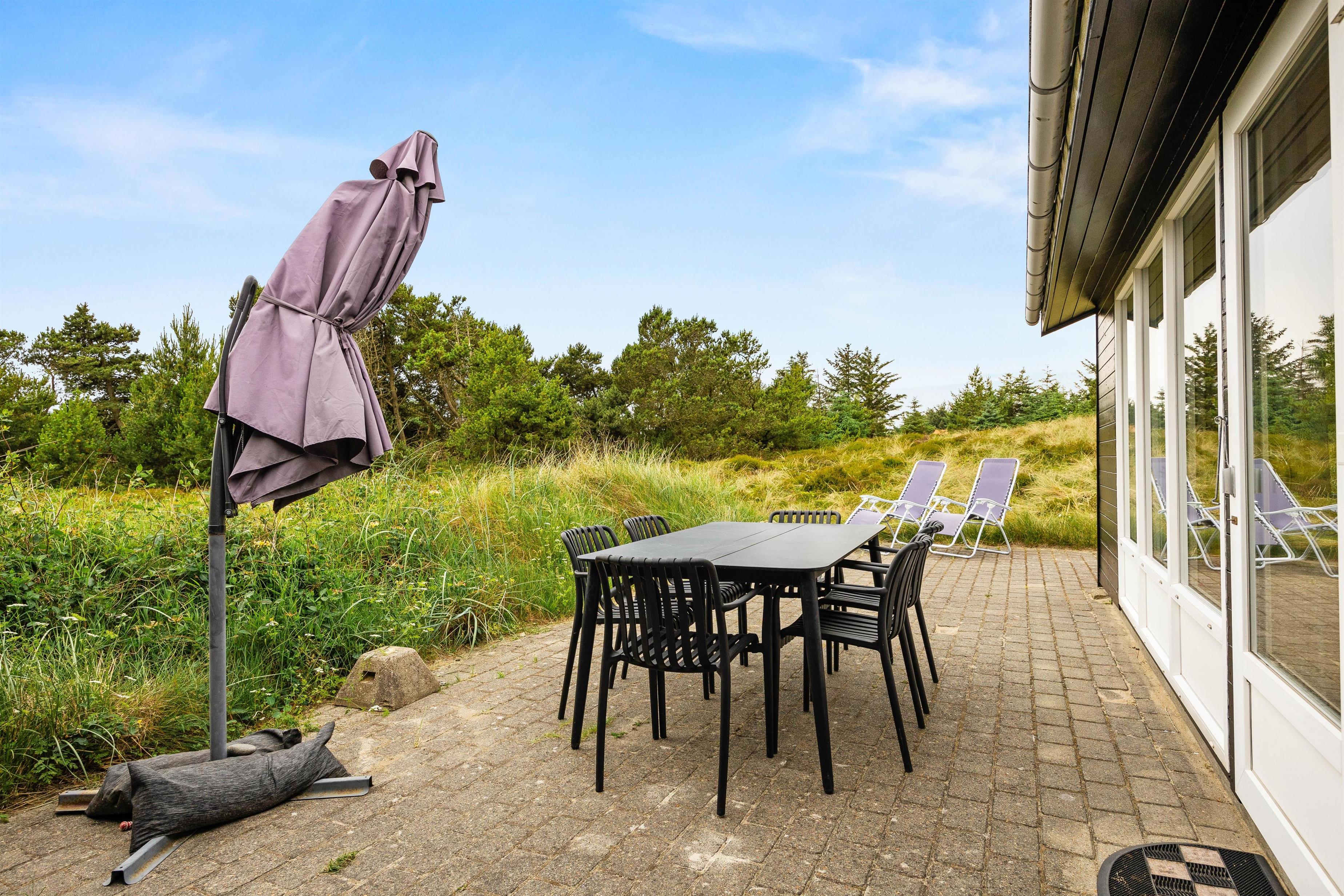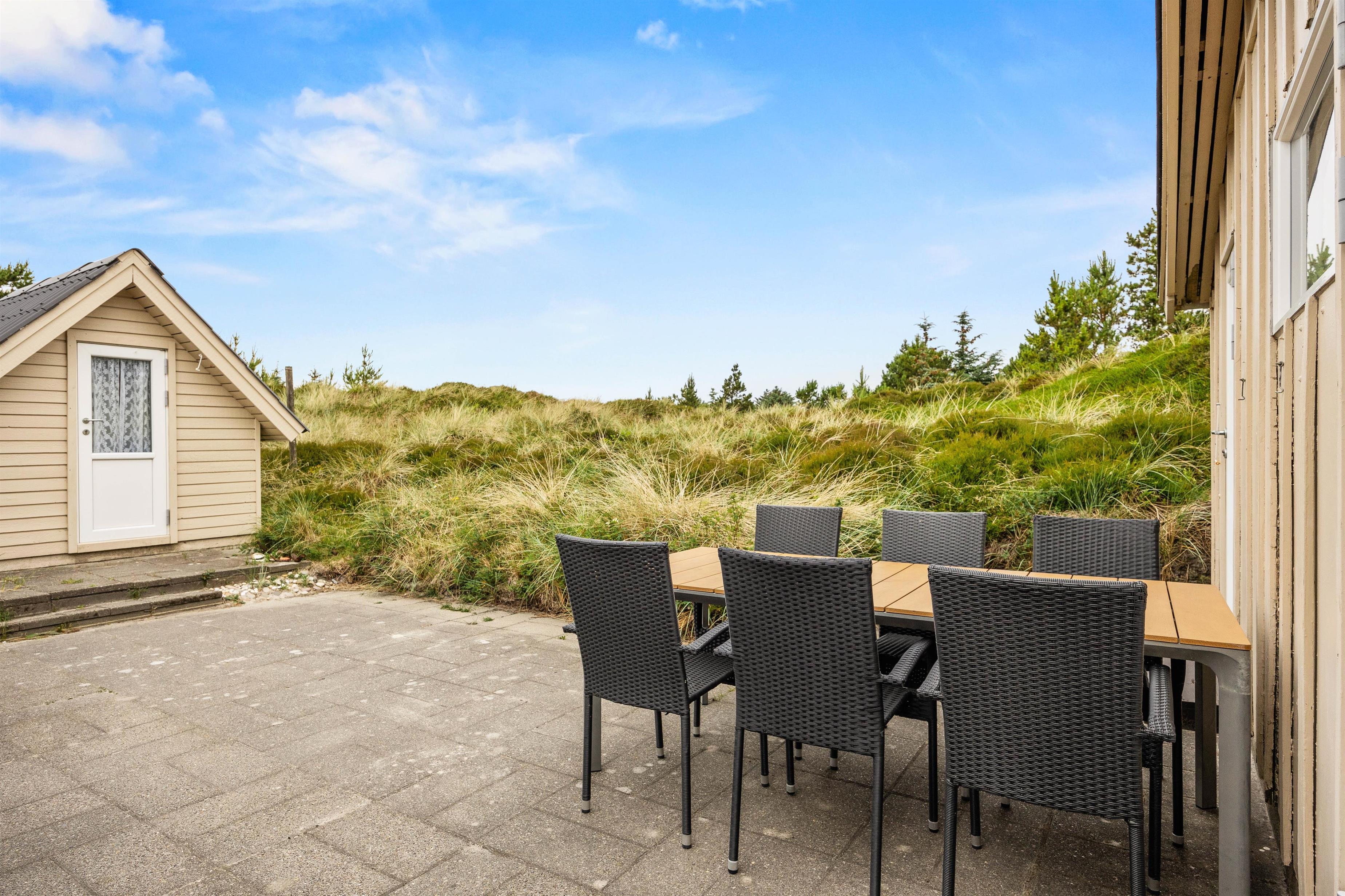 Det fantastiske Vesterhav ligger kun 400 meter fra sommerhuset, og en kort gåtur gennem det flotte landskab og ned over klitten bringer jer hele vejen ned til vandkanten. Den hvide sandstrand er altid en imponerende oplevelse og byder på alt fra bølgebadning og drageflyvning til røde solnedgange fra klittoppen.