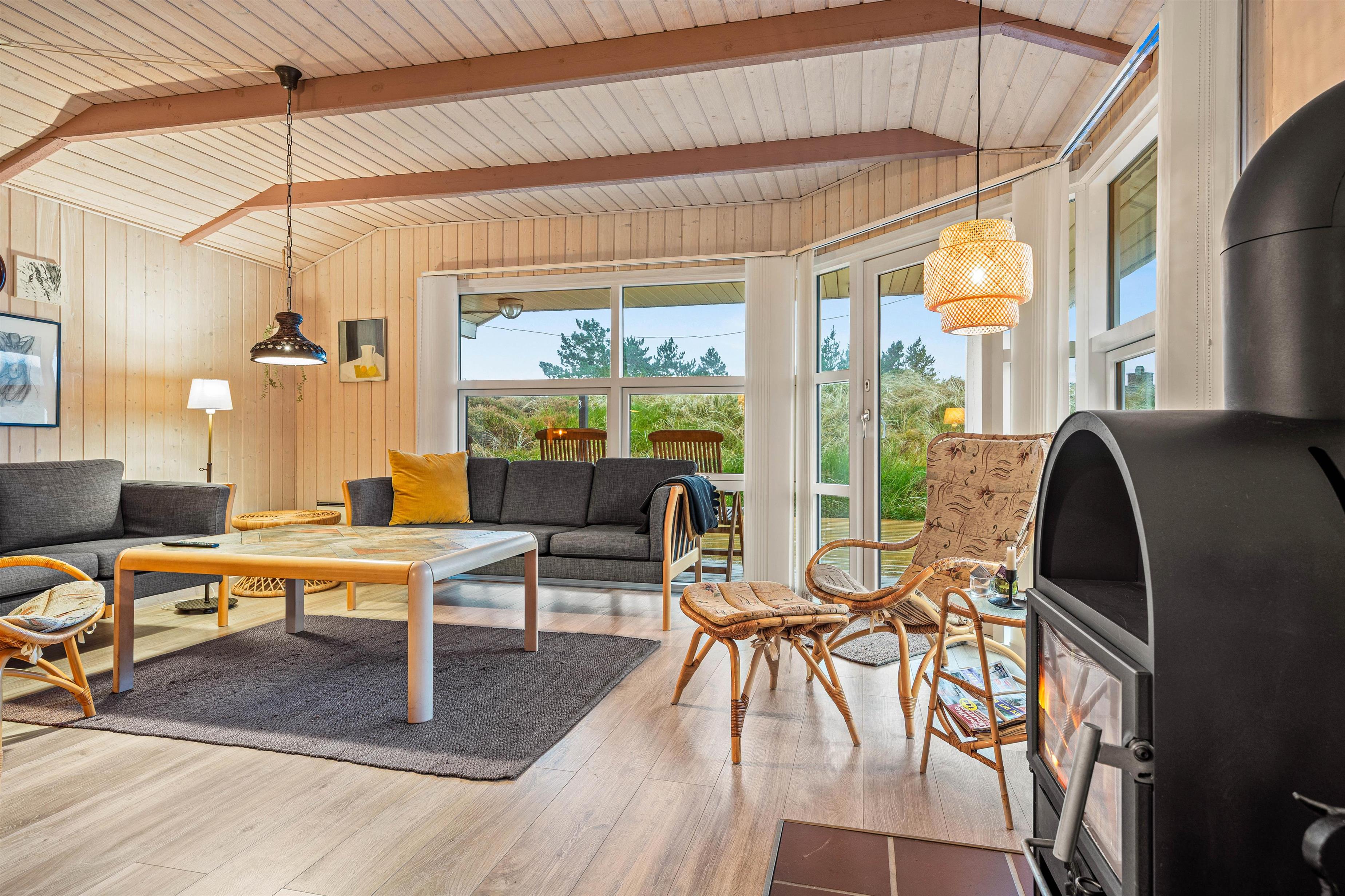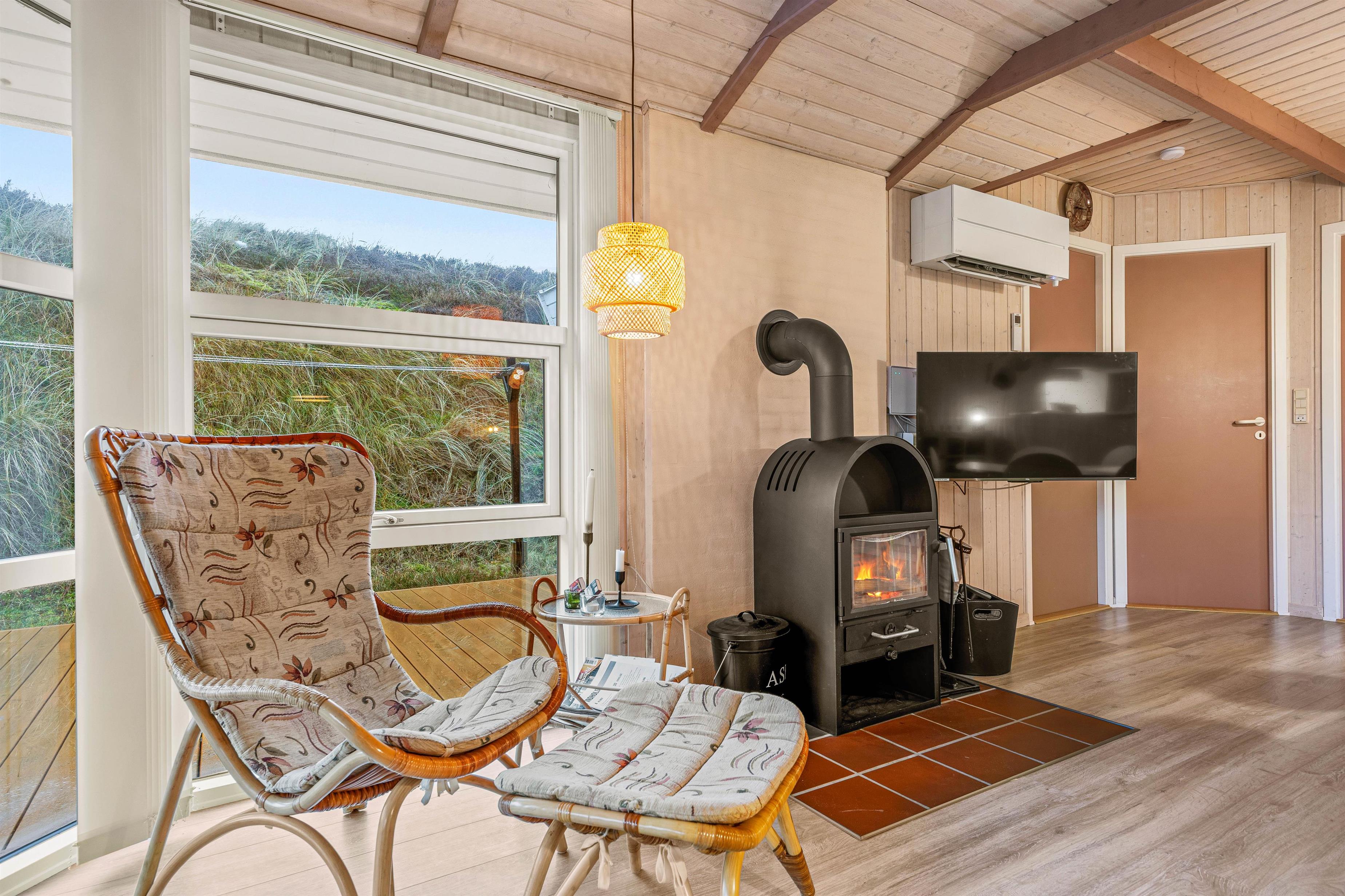 I alrummet er der også en brændeovn, der med sin knitren i baggrunden og varme er med til at fuldende feriestemningen. Udover brændeovnen er der også en energivenlig varmepumpe i sommerhuset, der sørger for, at I har et godt indeklima på ferien.