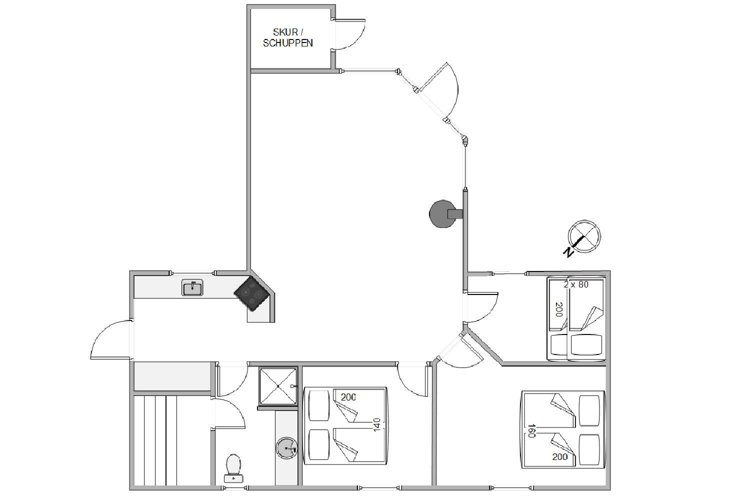 Sommerhusets hjerte er alrummet, og I vil helt sikkert tilbringe mange hyggelige stunder her i løbet af jeres ferie. Alrummet forener nemlig køkken, spiseplads og stue, og I har derfor rig mulighed for at tilbringe masser af tid sammen her.