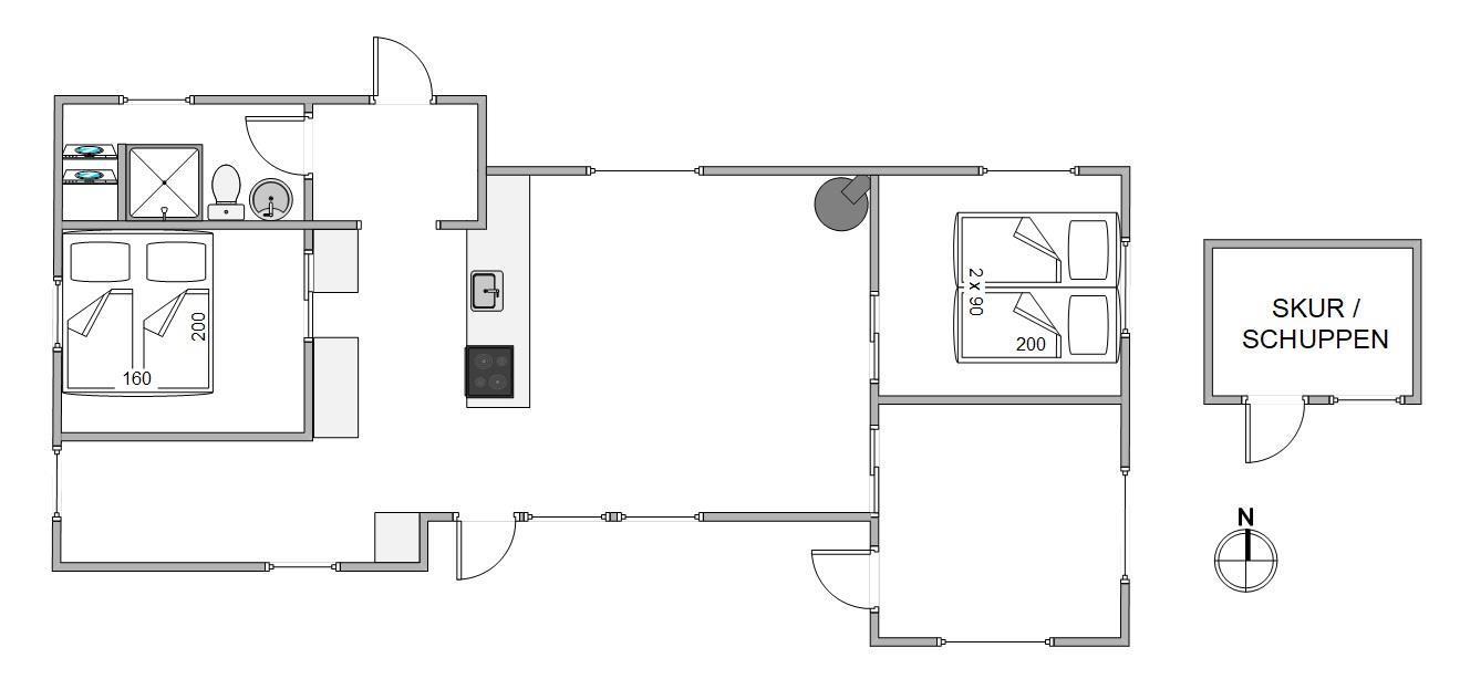 Når energien er ved at være brugt op efter en skøn feriedag i Grærup Strand, kan I søge mod sommerhusets 2 soveværelser, hvor I kan få jer en god nats søvn og blive klar til næste feriedag. Begge soveværelser er indrettet med en dobbeltseng hver. Næste morgen slipper I for kolde fødder, da der er gulvvarme på badeværelset.