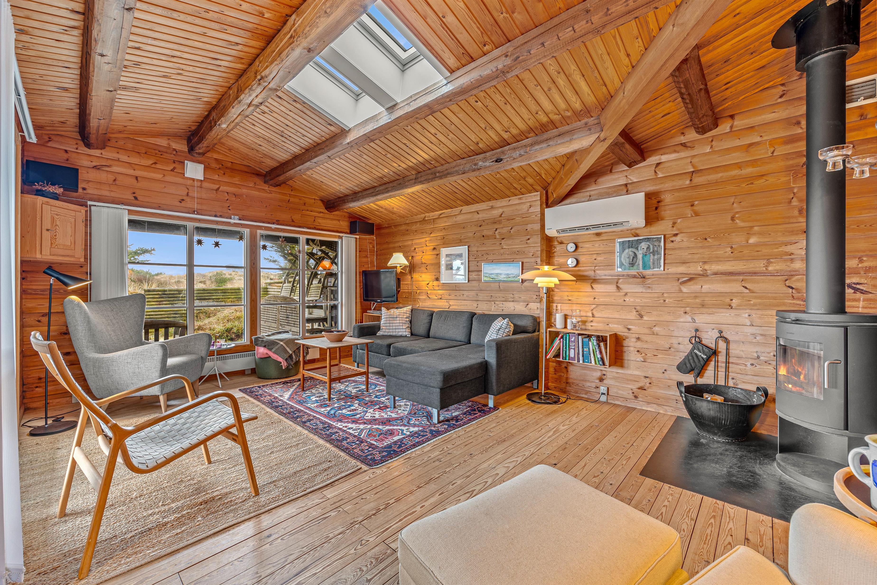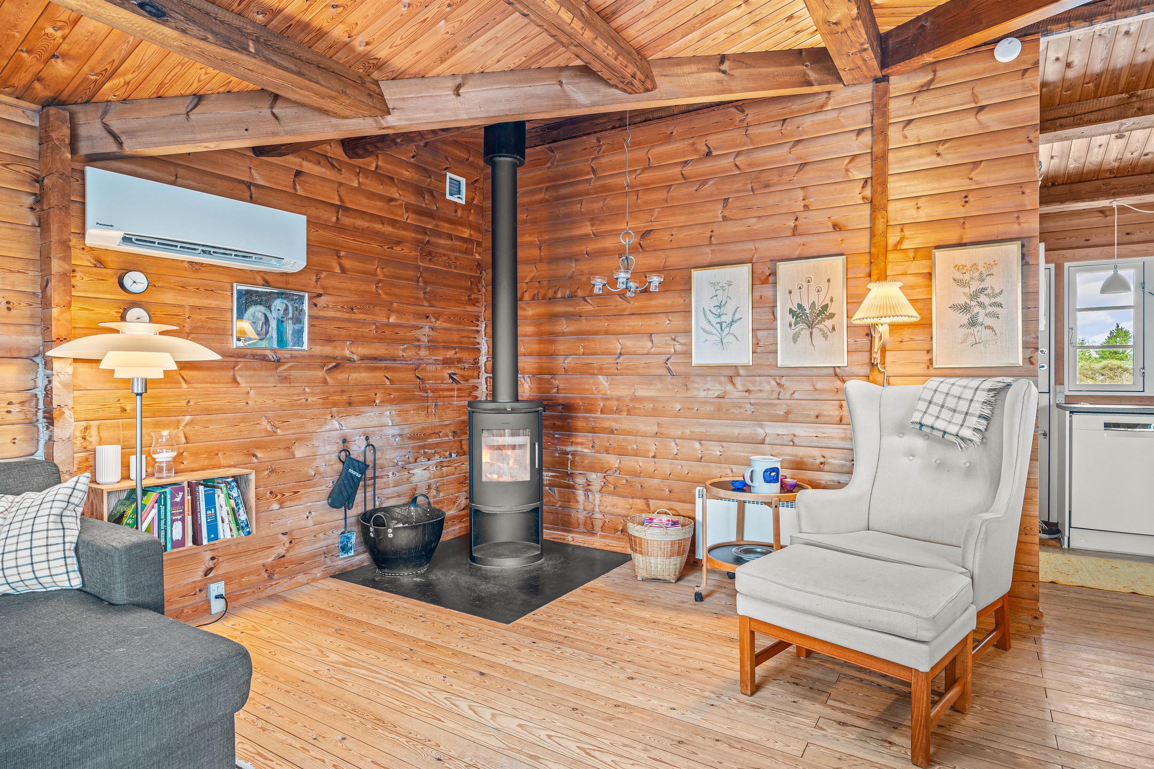 Rart og venligt indrettet sommerhus med højt til loft og brændeovn