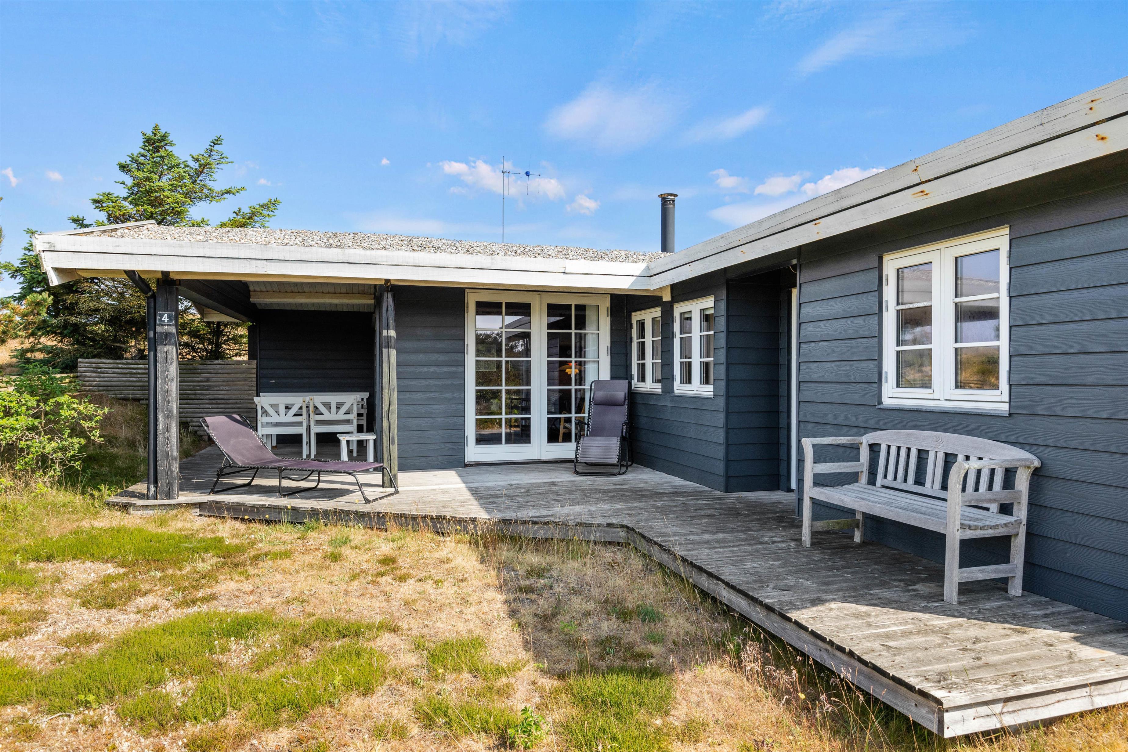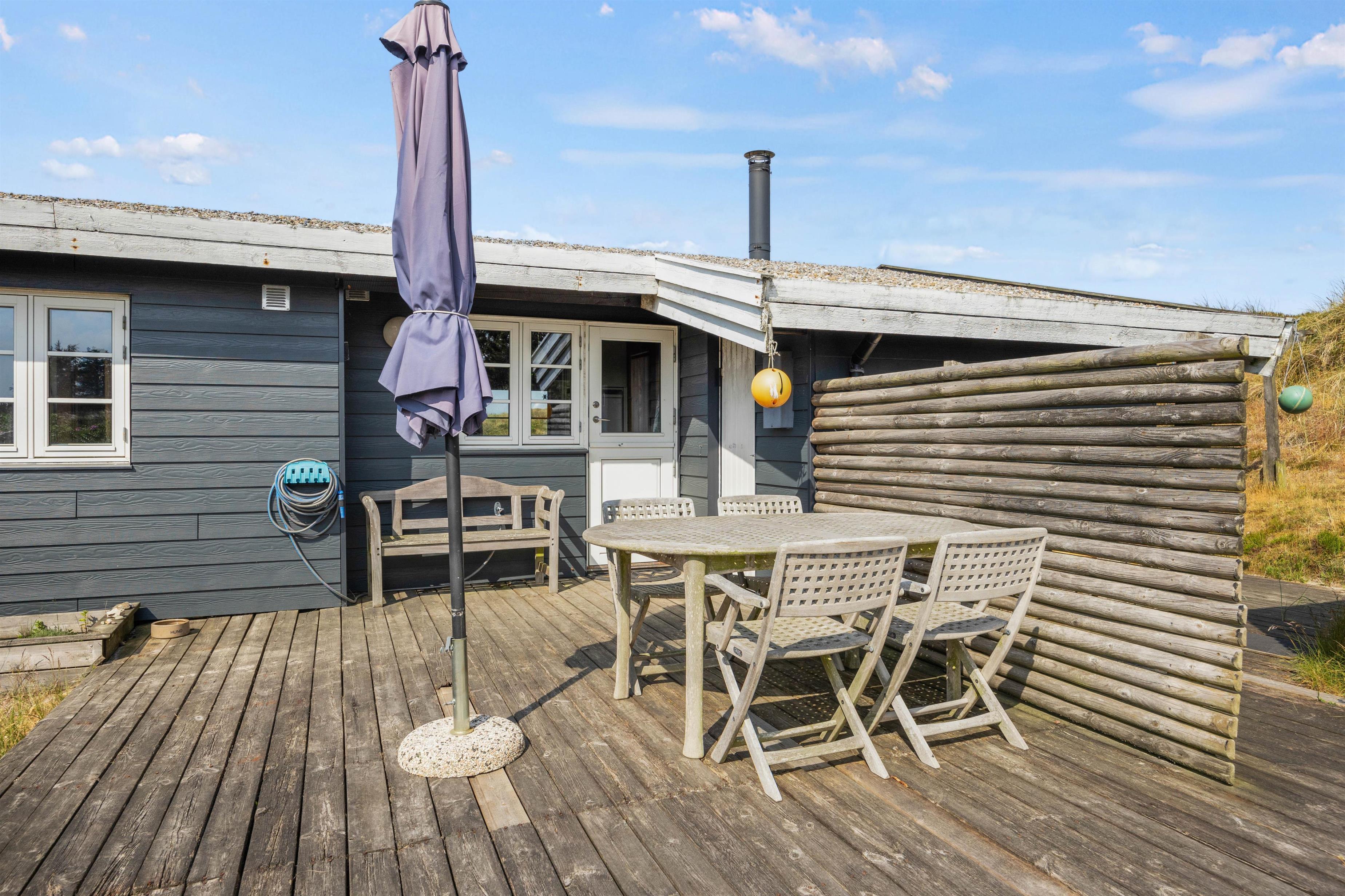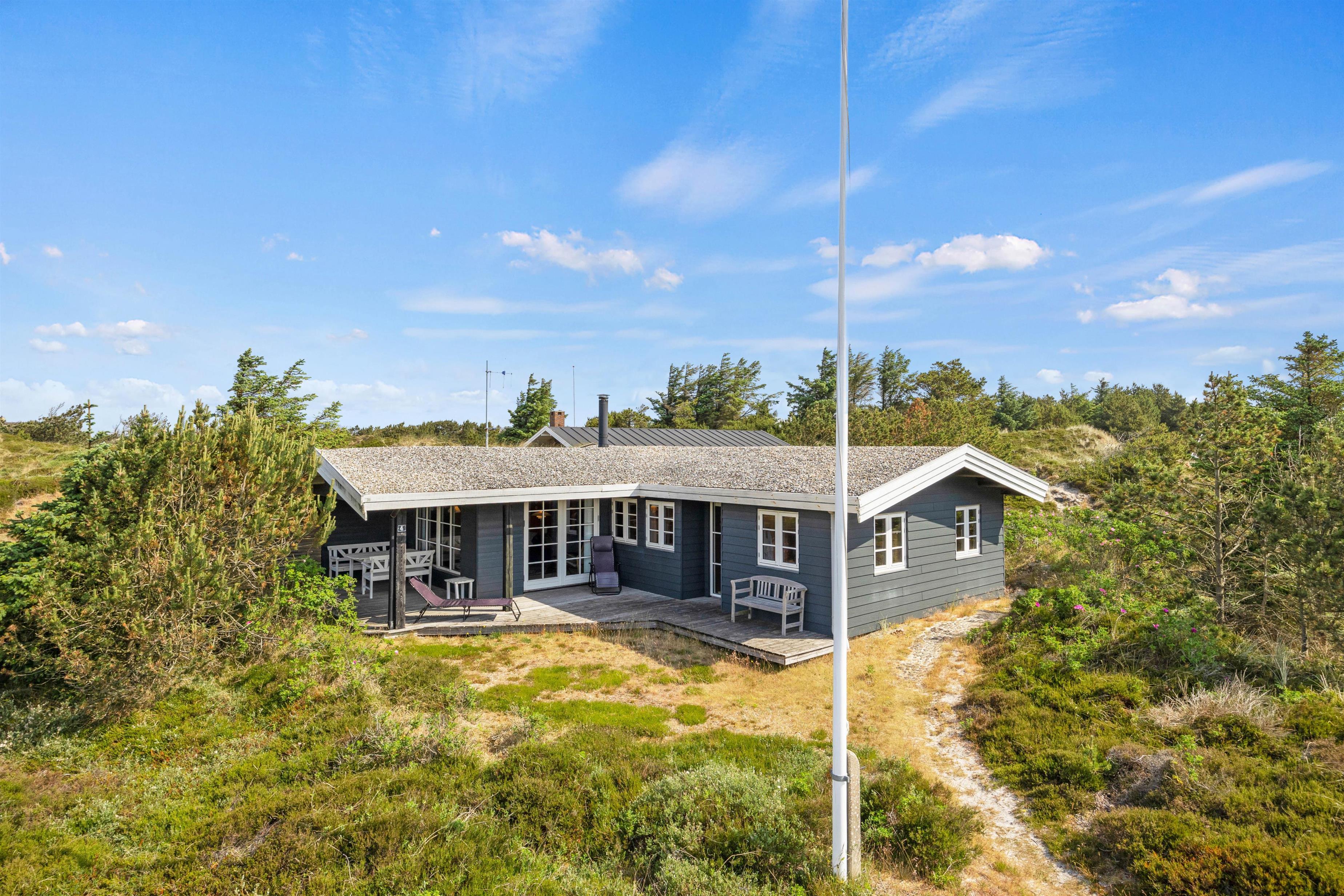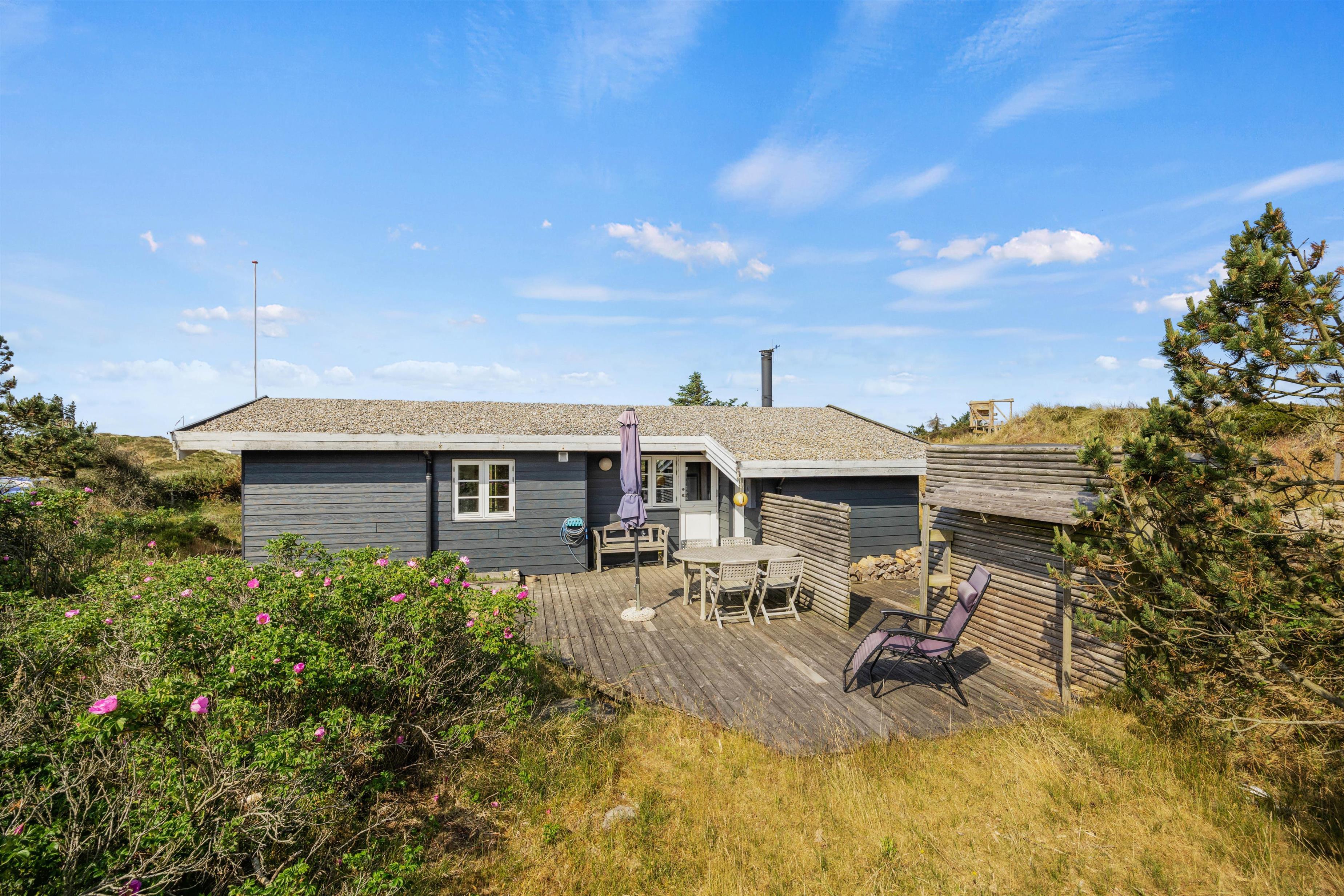 I naturskønne omgivelser kun 350 meter fra Vesterhavet finder I dette fine klassiske sommerhus. Her kan seks feriegæster holde en dejlig ferie i det hyggelige og personligt indrettede sommerhus. Udenfor kan I samles til bålhygge eller grillaften på terrassen. Familiens hund er velkommen, og tropper I op i el-bil, har I mulighed for at oplade den her.