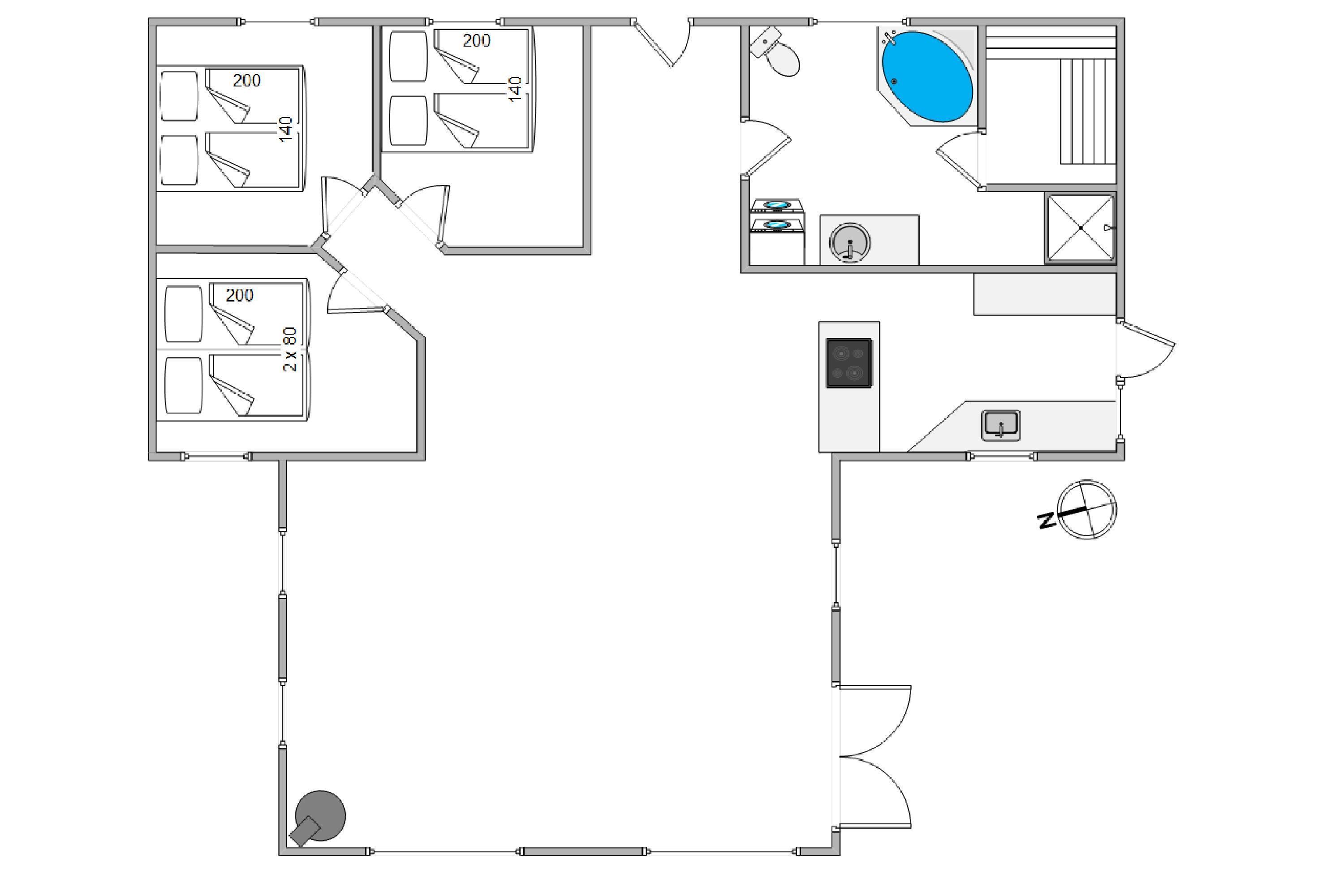 Trænger I til at komme helt ned i gear? Så skal I bare søge mod sommerhusets badeværelse, som er indrettet med et lækkert spabad og en sauna. Det lille ”wellnesshjørne” er det perfekte spot, når der skal tankes nye kræfter efter en dejlig, lang gåtur i den friske havluft.