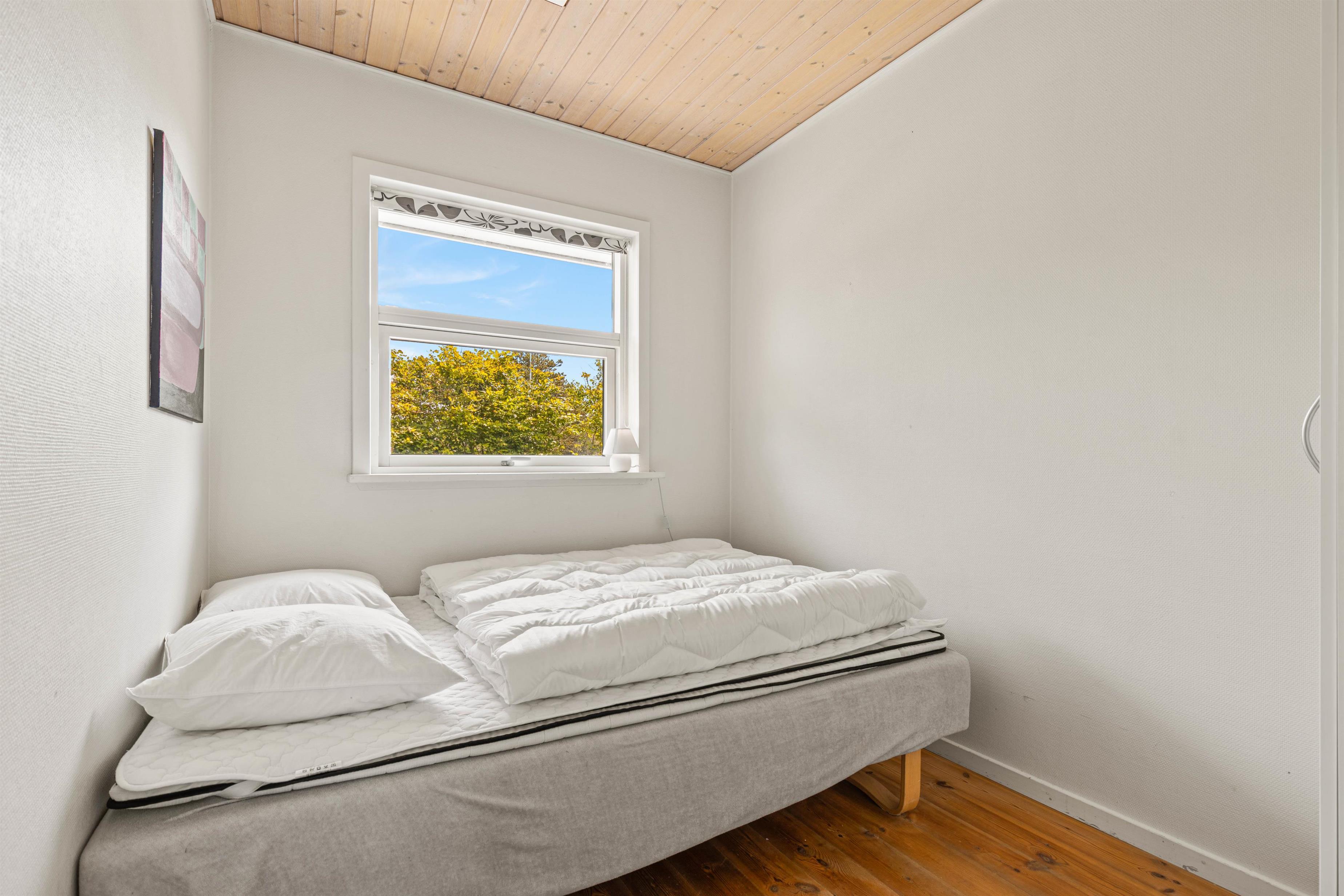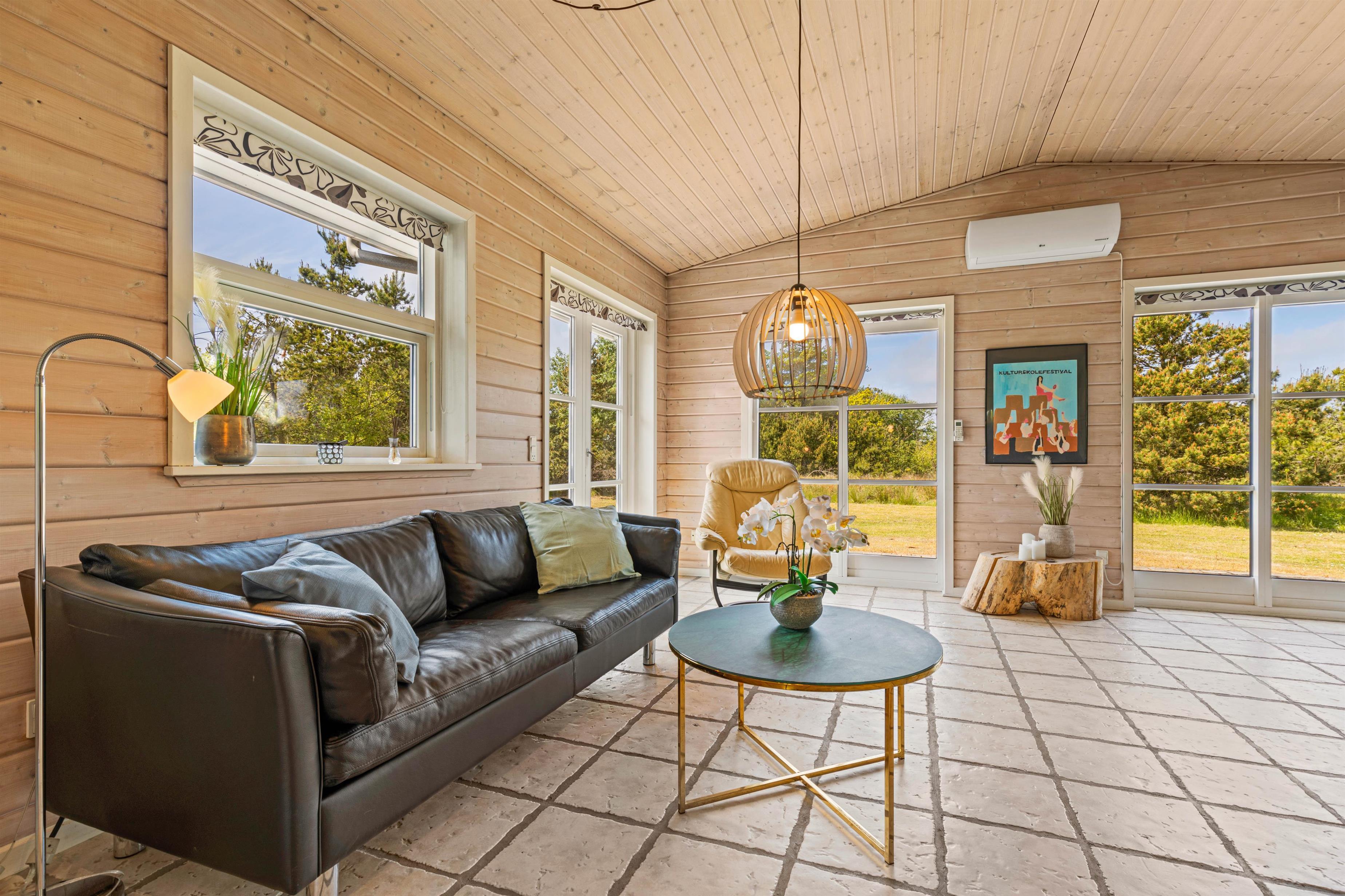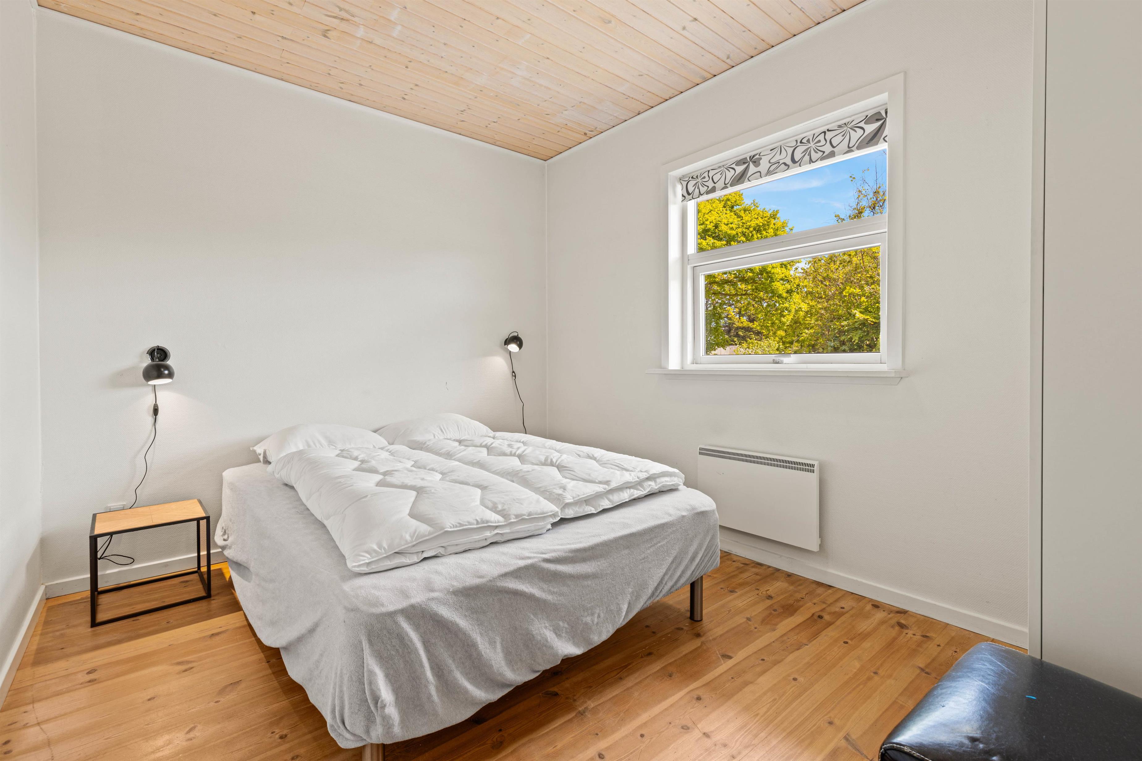 Både det åbne opholdsrum og badeværelset er udstyret med gulvvarme, så I ikke kommer til at fryse fødderne om morgenen, og en energivenlig varmepumpe holder omkostningerne og sikrer samtidig et behageligt rumklima hele året rundt. Når der skal skrues ekstra op for varmen og feriehyggen, kan I passende tænde op i brændeovnen, som altid er en garanti for god stemning.
