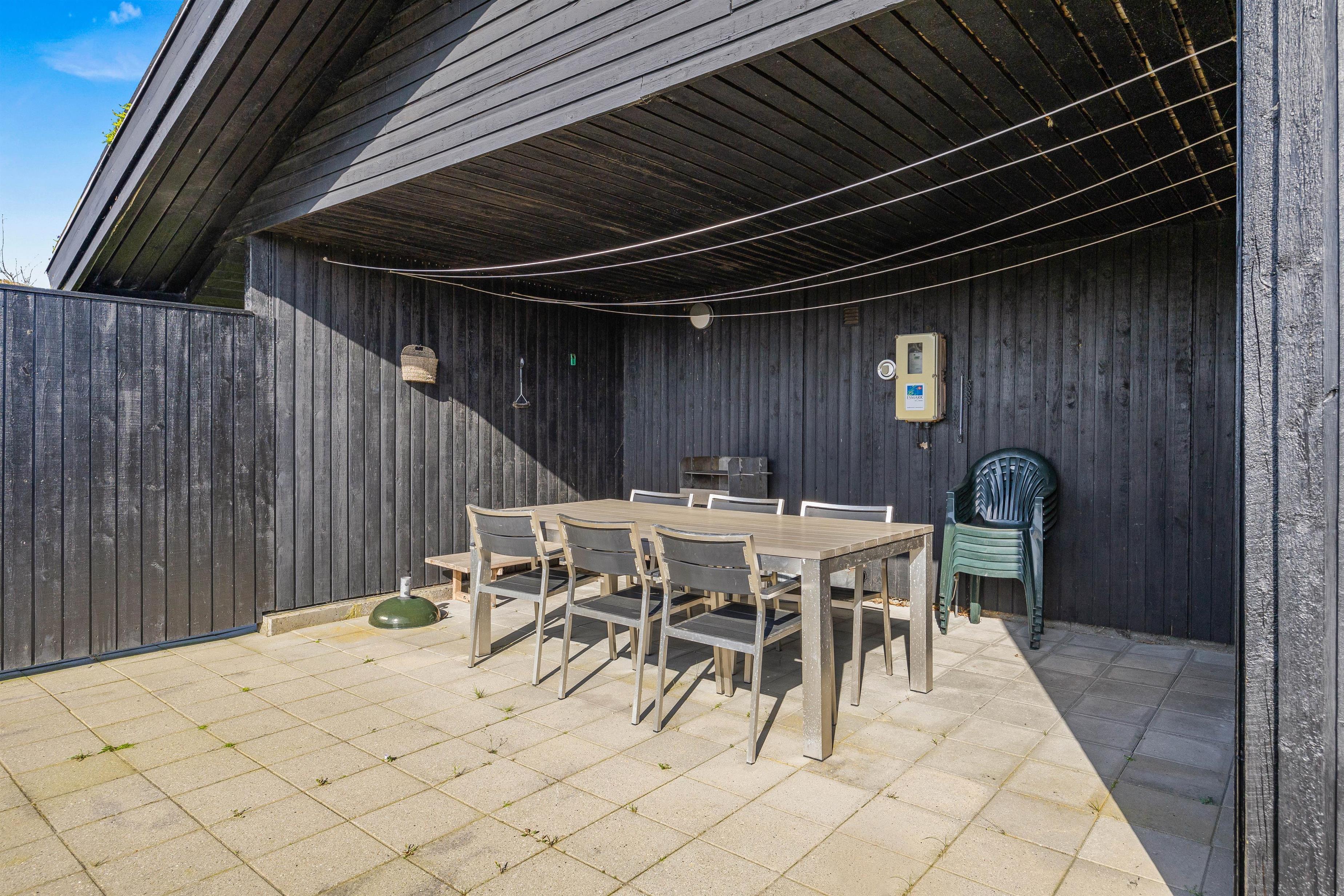 Feriehuset ligger på en stor naturgrund, og på den afskærmede terrasse kan I nyde det gode vejr og de smukke omgivelser dagen lang fra havemøblerne eller liggestolene. Rundt om picnicbænken kan I spise en lækker frokost i varmen, og om aftenen kan der grilles i den lune aftensol.