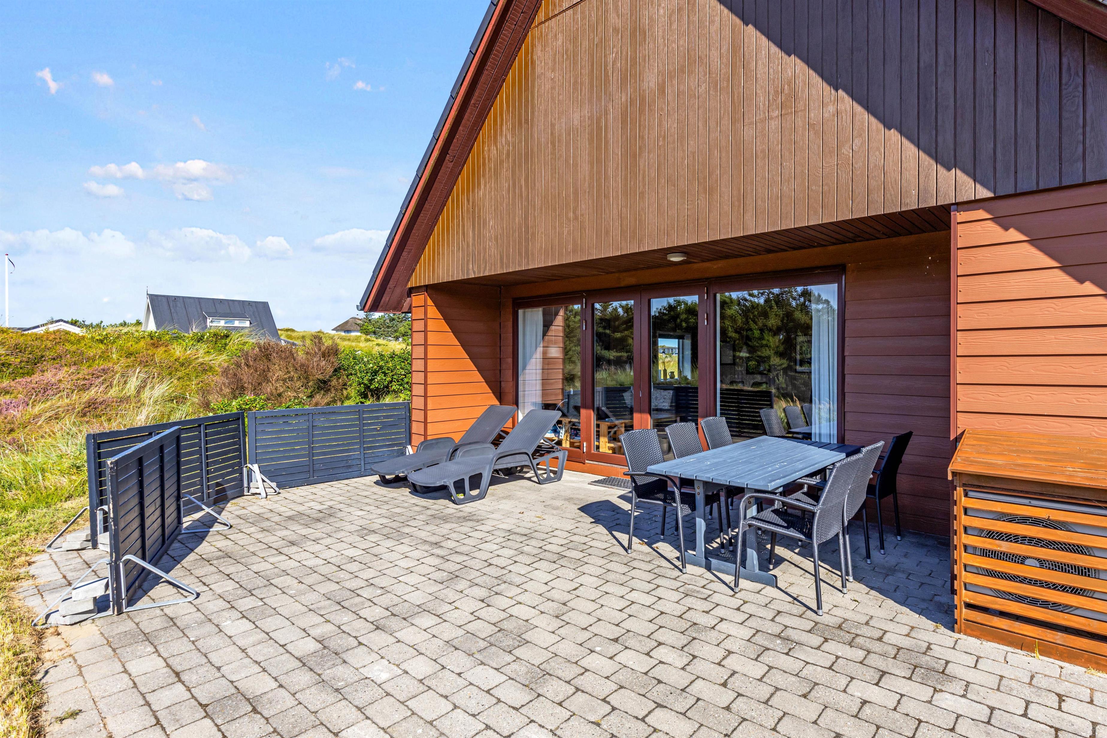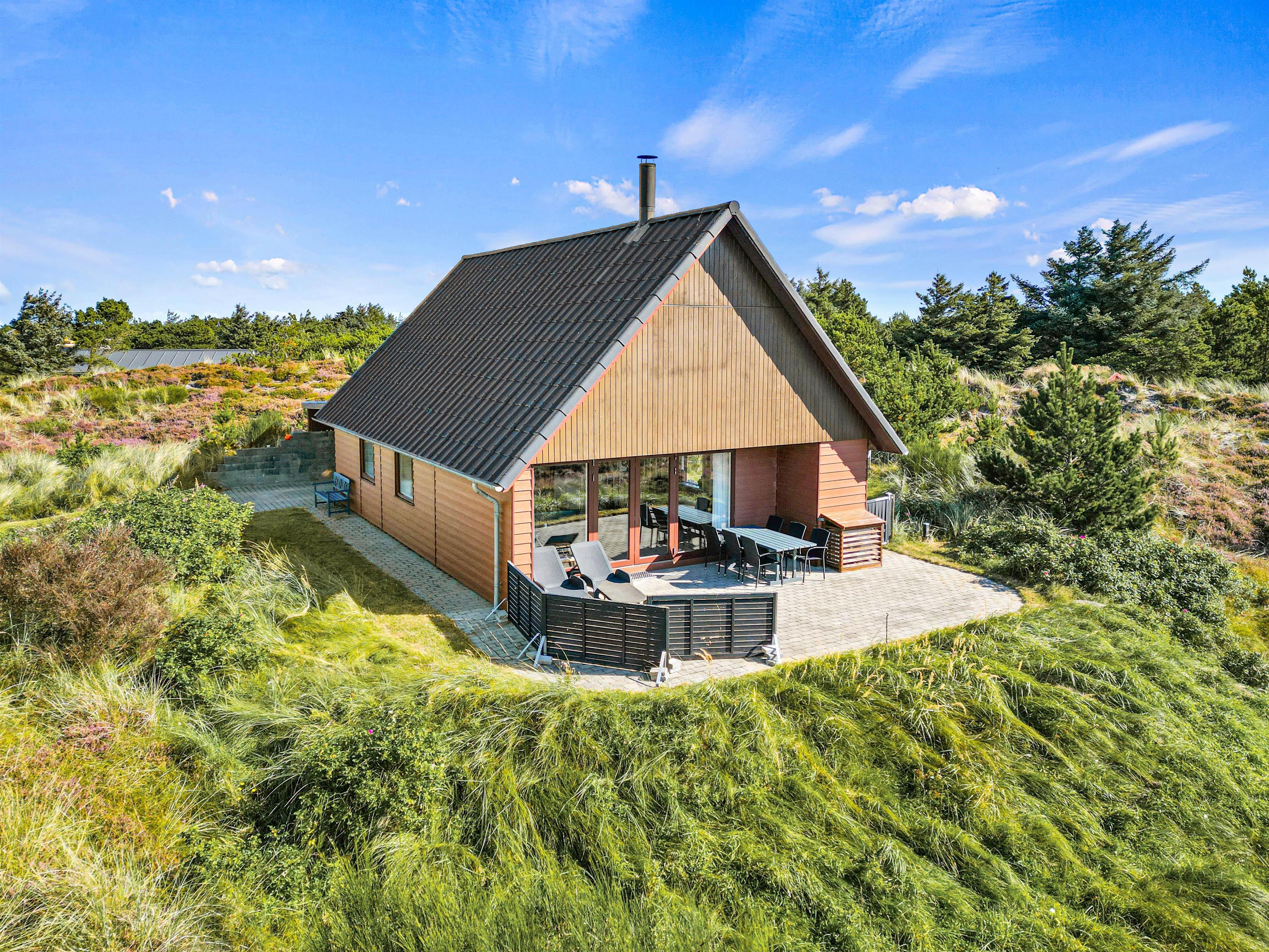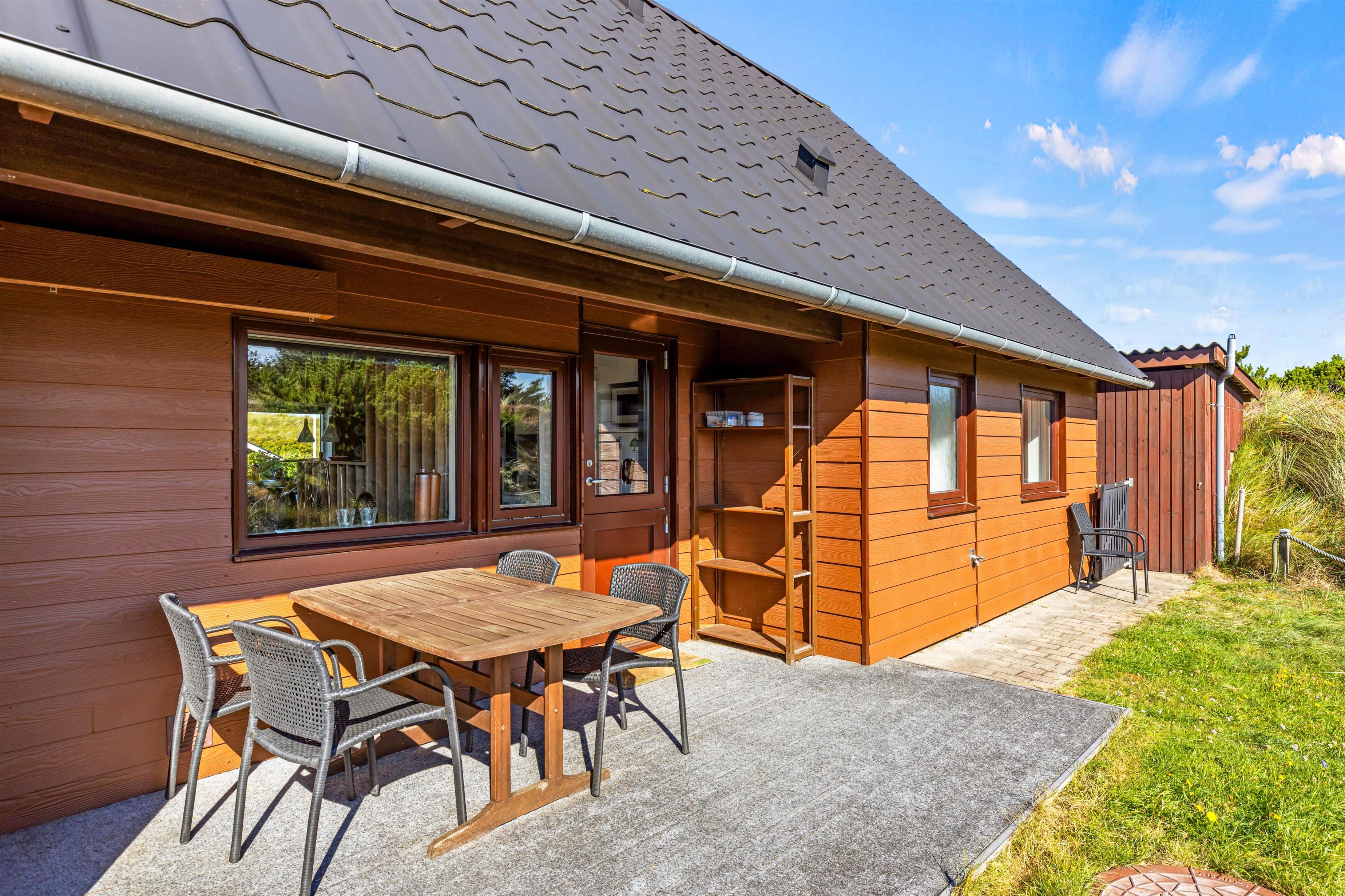Det klassiske feriehus ligger midt i det klitbeklædte landskab, og på den åbne terrasse har I smuk natur til alle sider. Læn jer tilbage i liggestolene med noget koldt at drikke eller spis en lækker frokost i solen - i det gode vejr er udendørsmulighederne uendeligt mange!