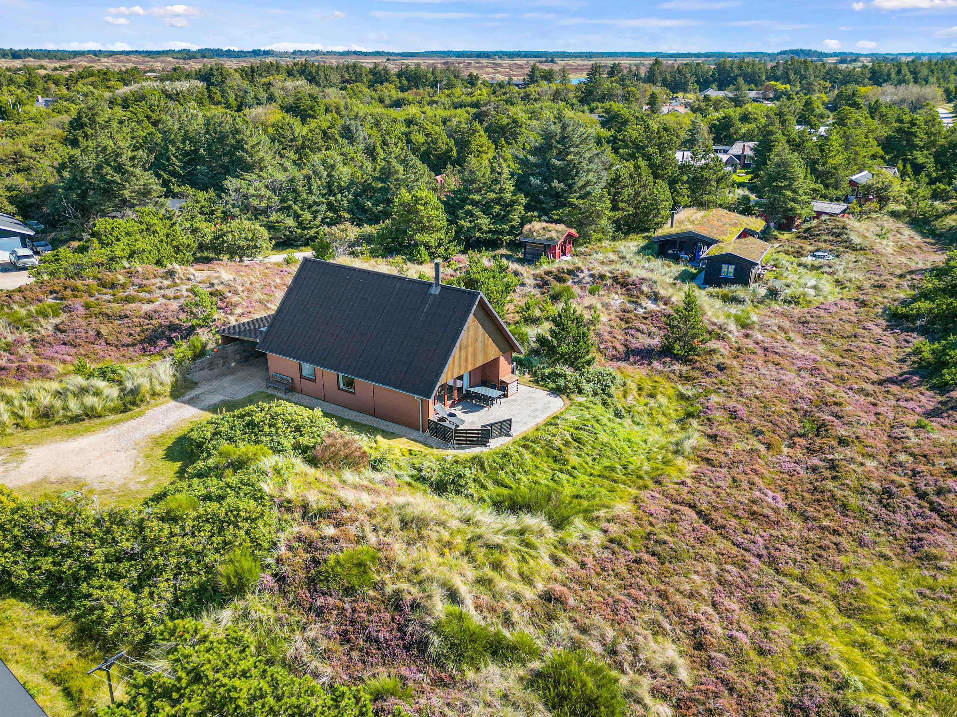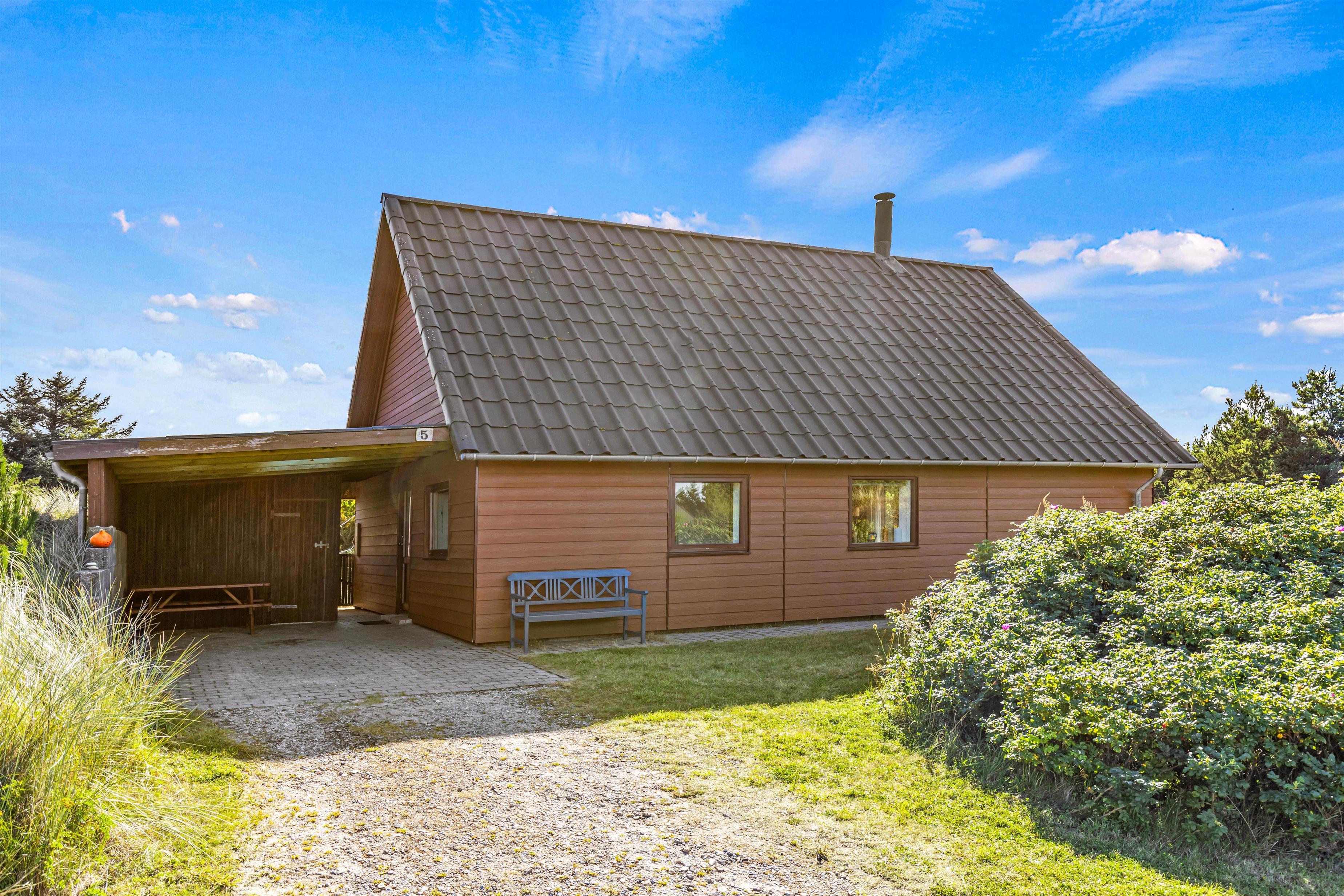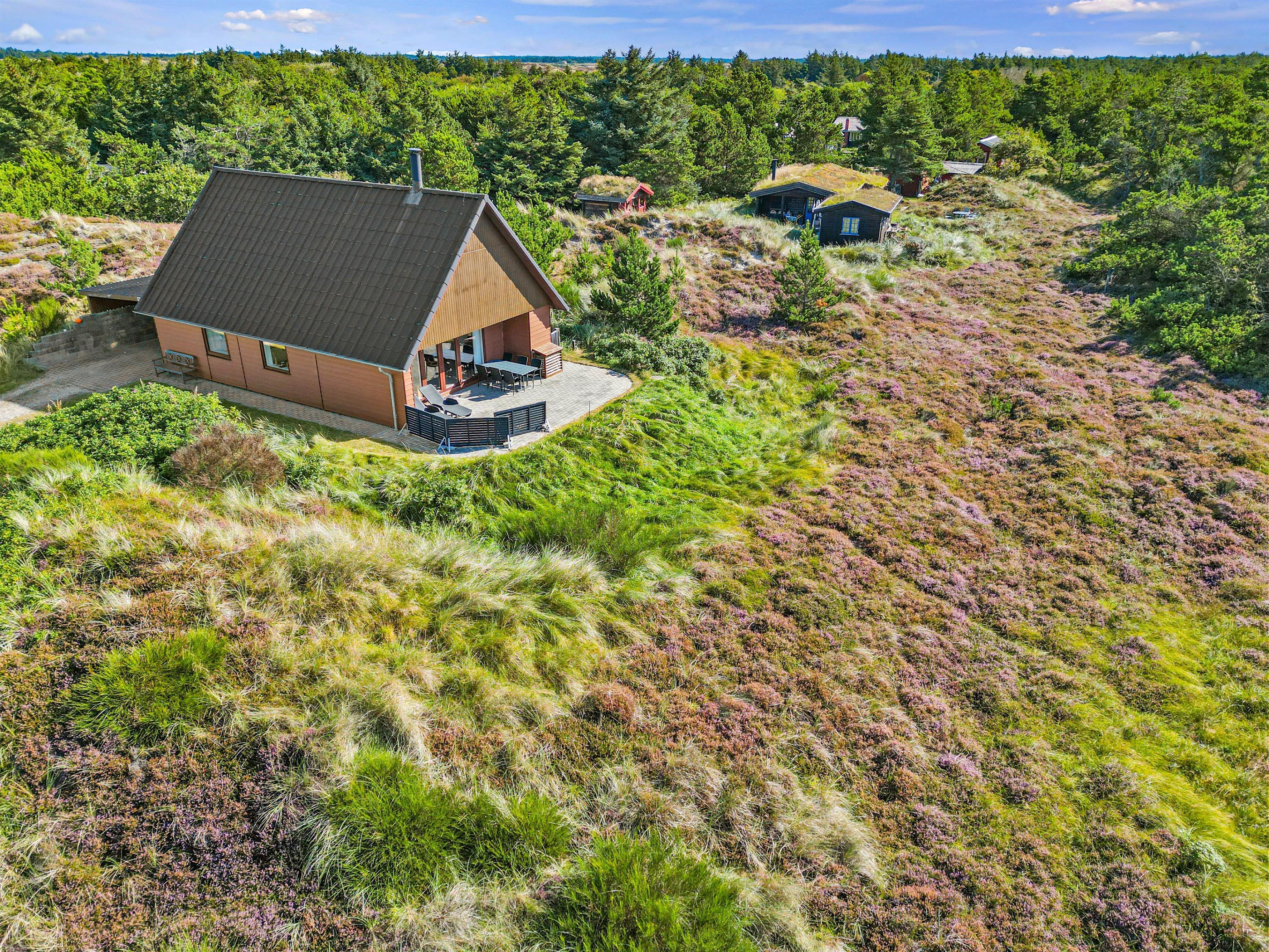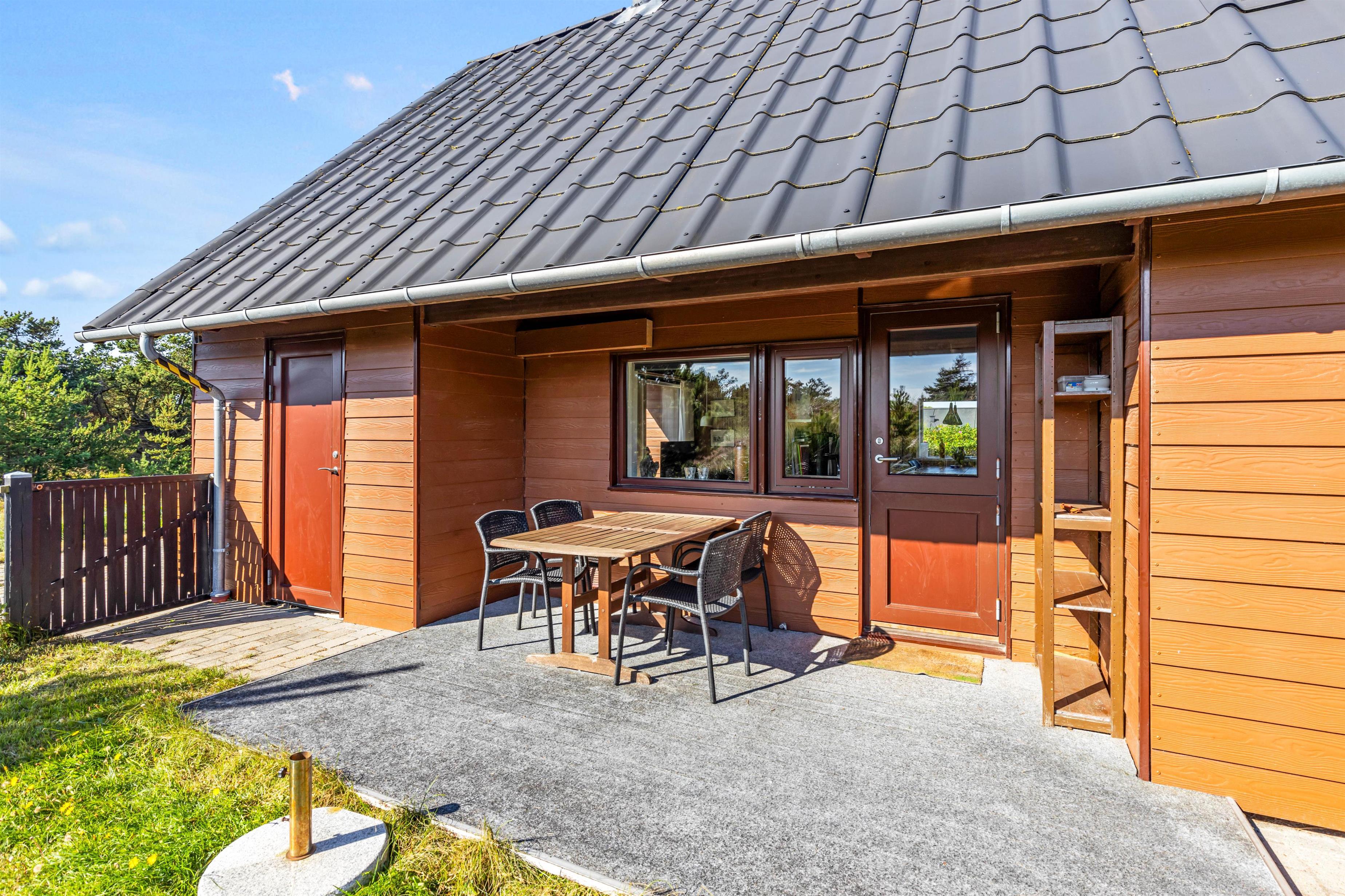Det klassiske feriehus ligger midt i det klitbeklædte landskab, og på den åbne terrasse har I smuk natur til alle sider. Læn jer tilbage i liggestolene med noget koldt at drikke eller spis en lækker frokost i solen - i det gode vejr er udendørsmulighederne uendeligt mange!
