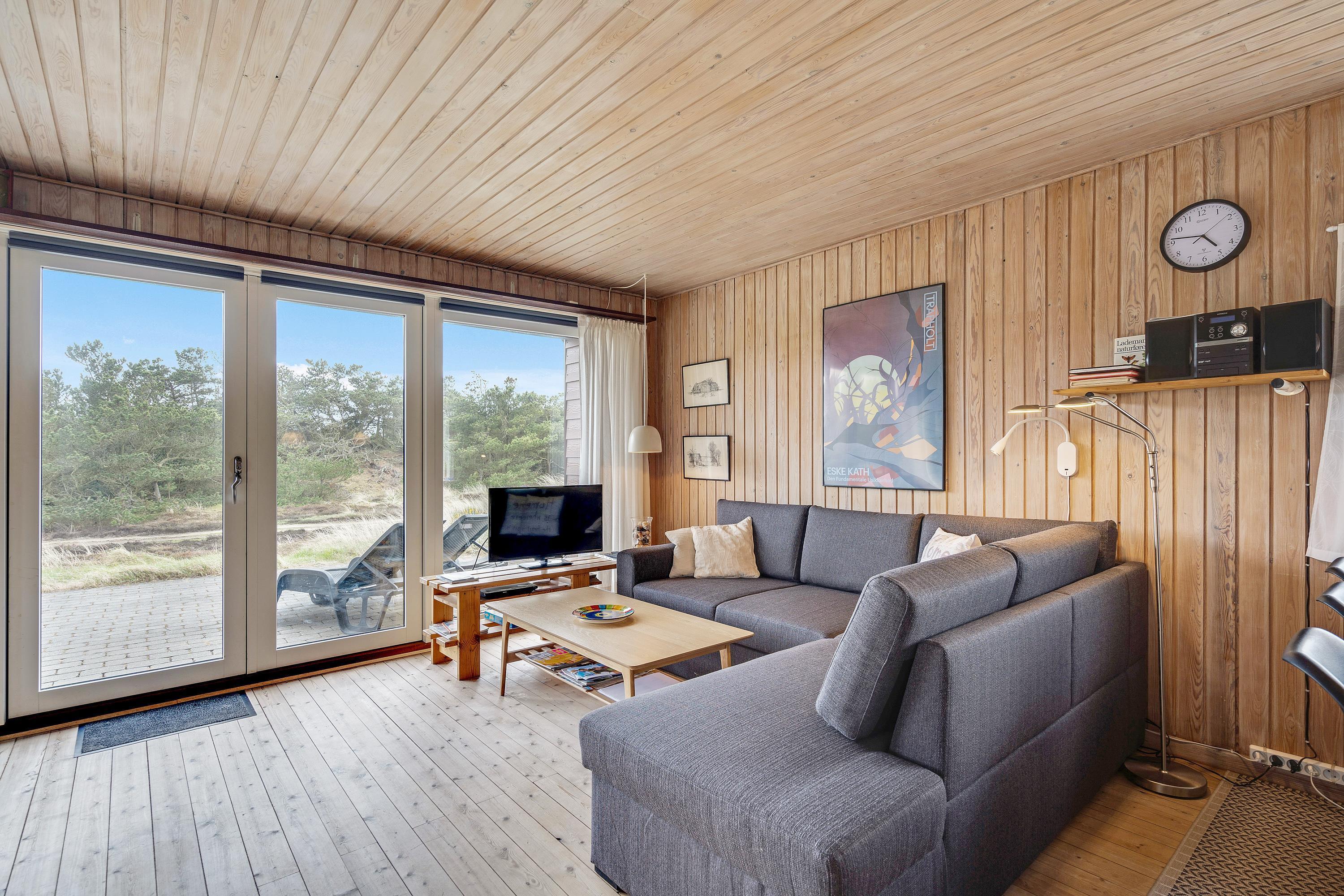 Det hyggelige træhus i Grærup Strand byder på helt enkel og afslappende sommerhusferie midt i naturen. Den klassiske indretning med masser af lyse træelementer og små detaljer gør omgivelserne både venlige og personlige, og de store panoramavinduer i stuen giver jer mulighed for at nyde den smukke natur fra sofaen og slipper solens stråler ind.