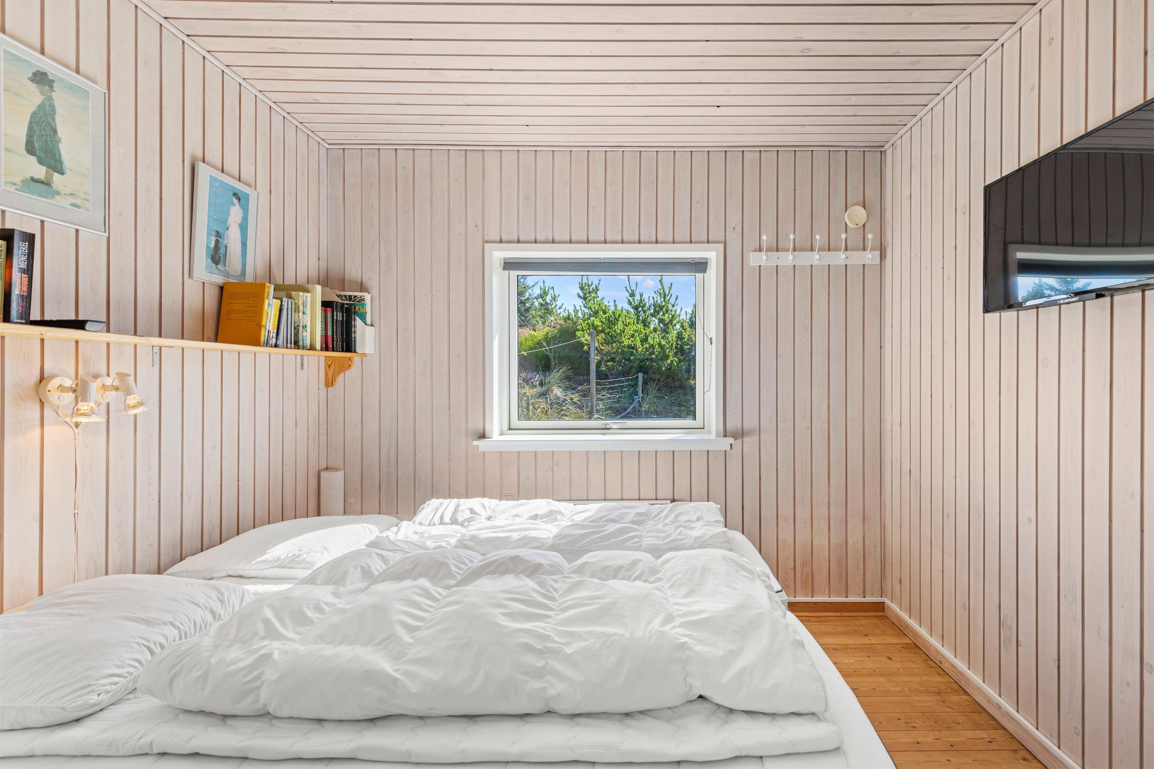 Der er TV i både opholdstue og det ene soverværelse med dobbeltseng.
