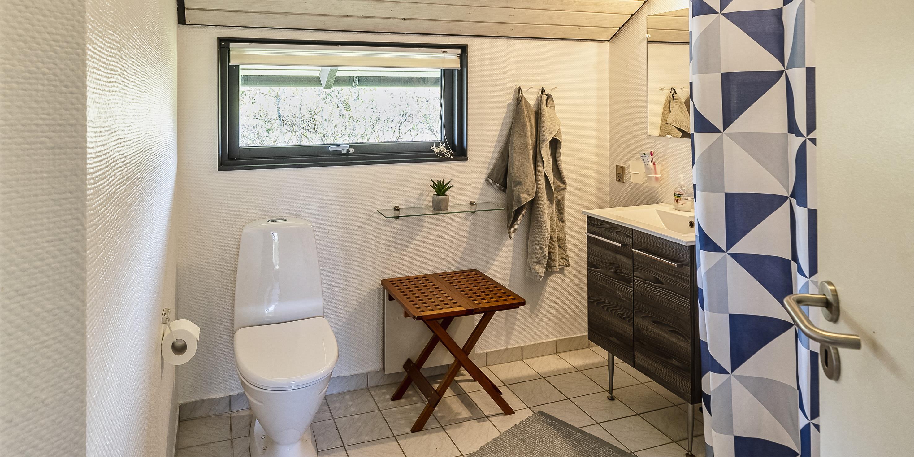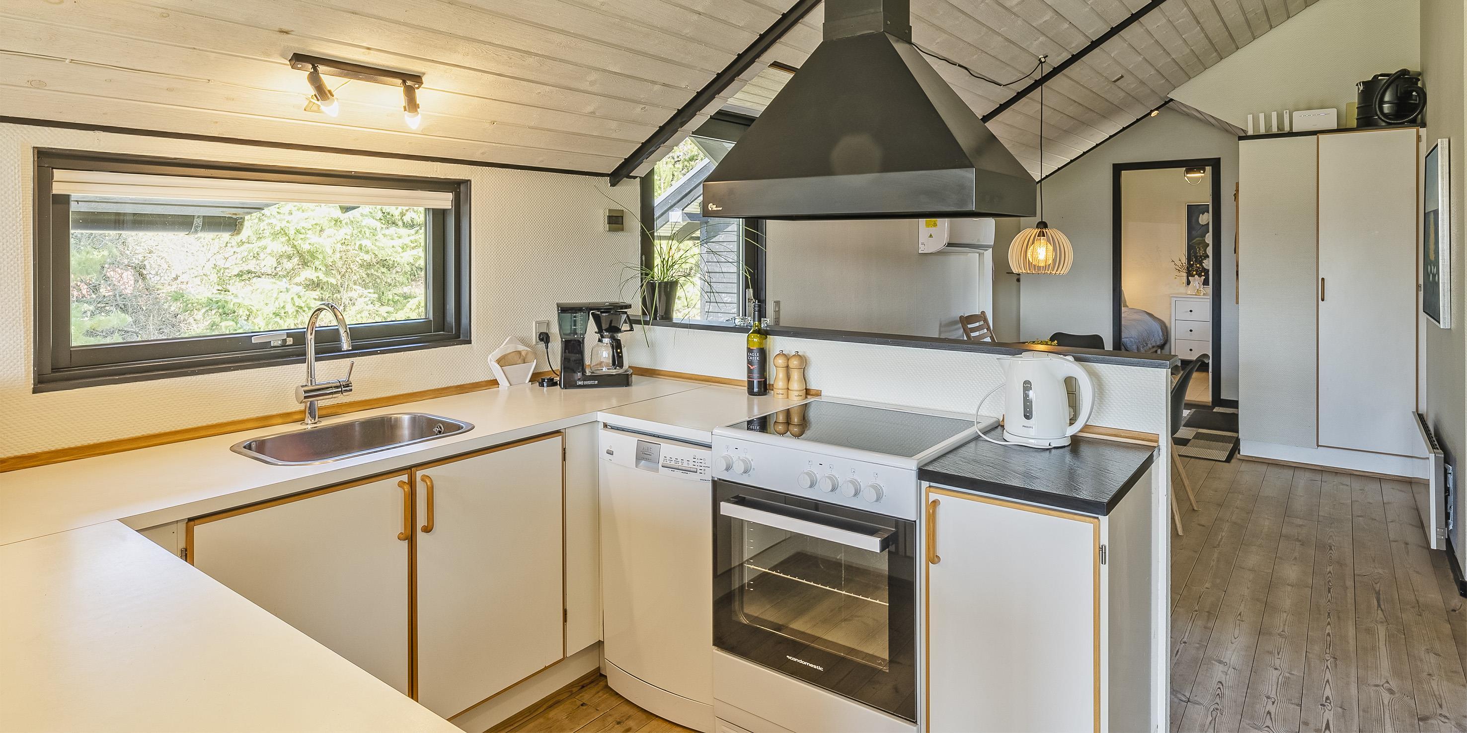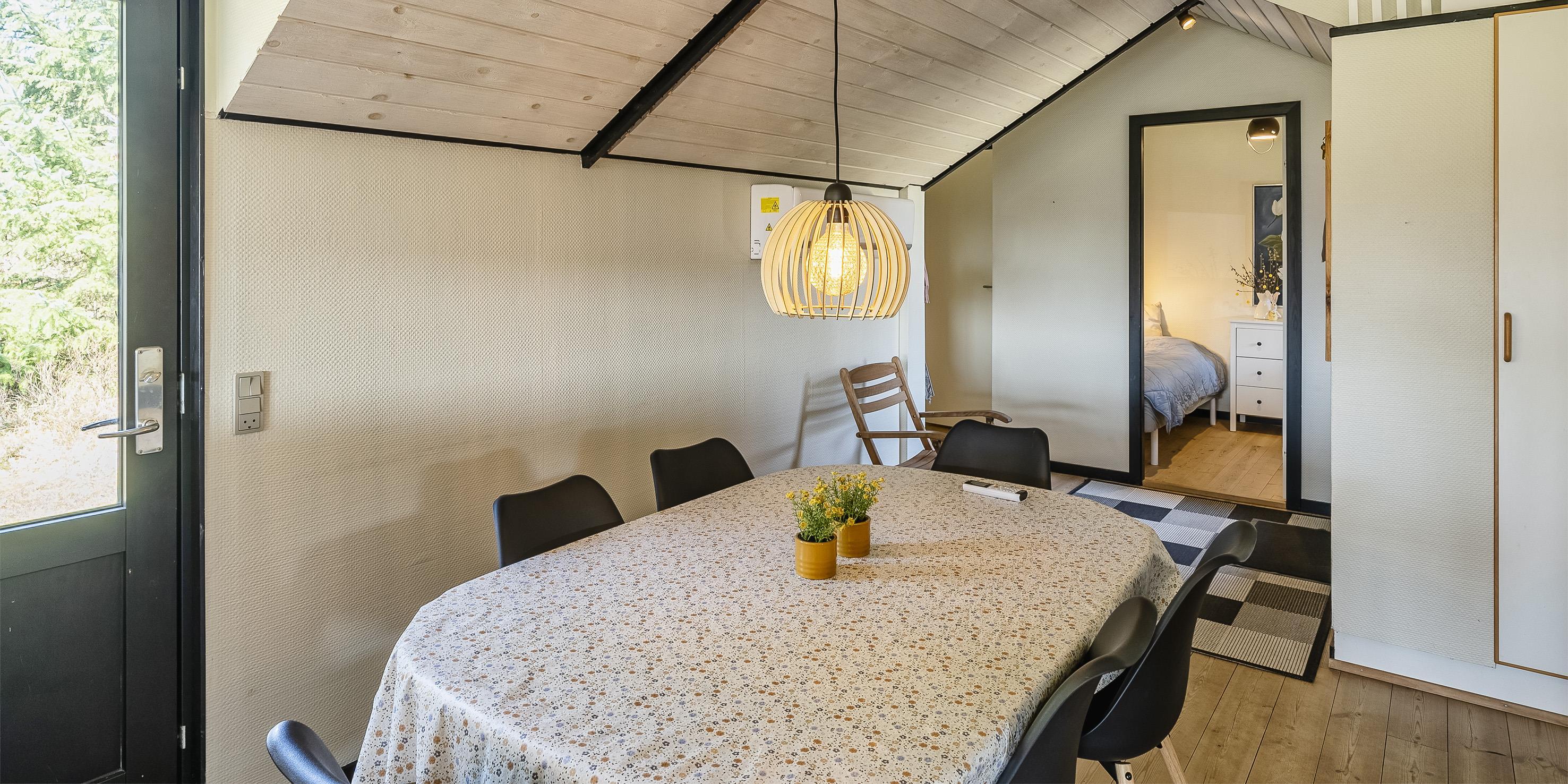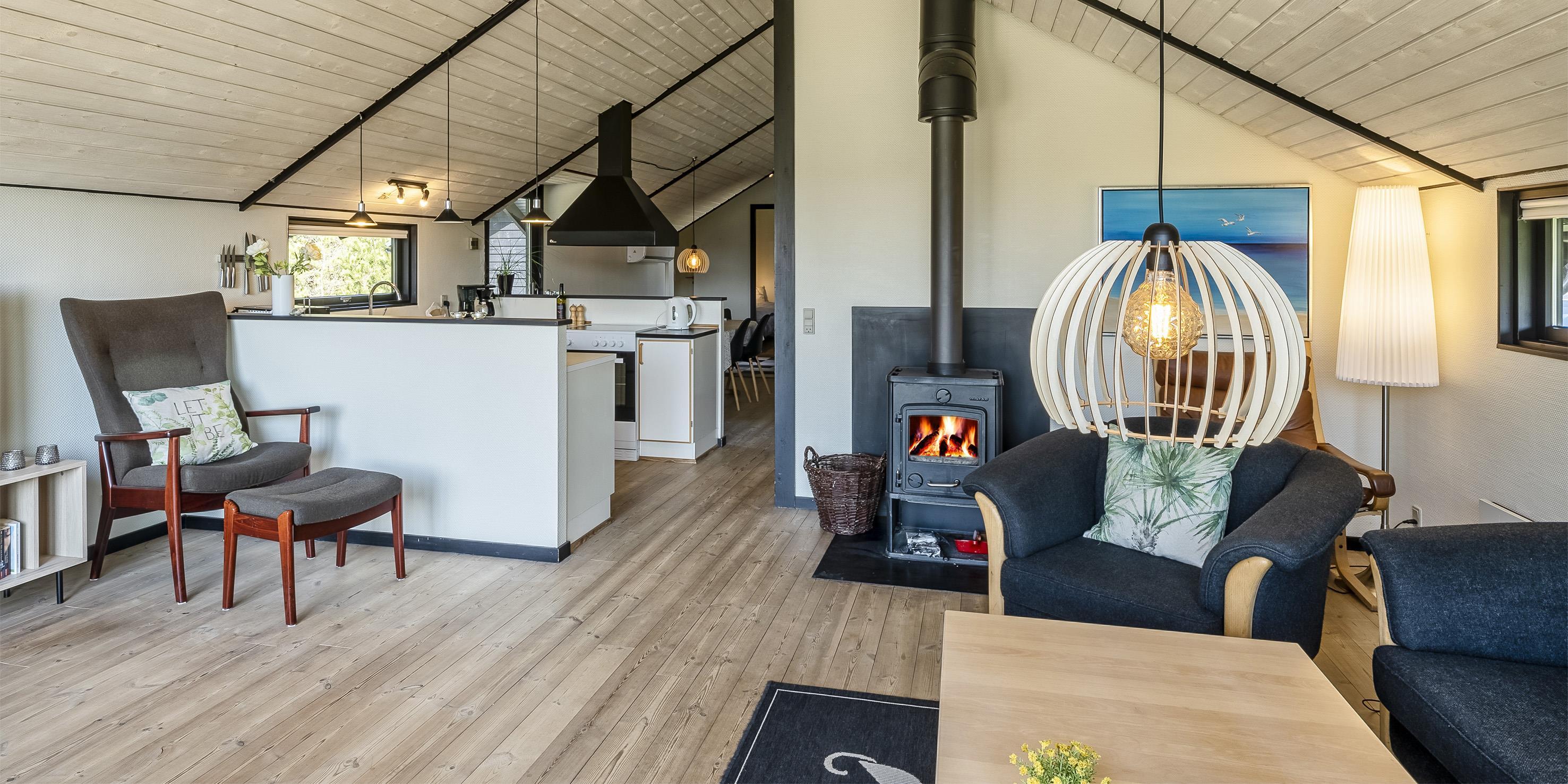 Huset er personligt indrettet og har fornyelig gennemgået en udskiftning af møblement (2020). Huset indeholder indgang med garderobe i åben forbindelse med spisestue. Lyst køkken med opvaskemaskine, mikroovn, køle-/fryseskab, emhætte og komfur. Stort opholdsrum med åbent til kip, hyggelig brændeovn, varmepumpe, sofahjørne med fjernsyn med parabol programmer og Boxer TV, trådløs Internet samt udsigt til terrassen. Fra spisestuen er der adgang til badeværelse med bruser, toilet og vask samt til stort soveværelse med dobbeltseng. Fordelingsgang med 2 gode soveværelser samt adgang til gæstetoilet med bruser. Det ene soveværelse med en dobbeltseng og det andet med to enkeltsenge. Der forefindes vaskemaskine og kummefryser i huset. Der er udgang til terrasserne fra stuen, spisestuen og fordelingsgangen. Rummene i huset er lyse og har et godt lysindfald fra vinduerne. 3 soveværelser: DS + DS + 2S.