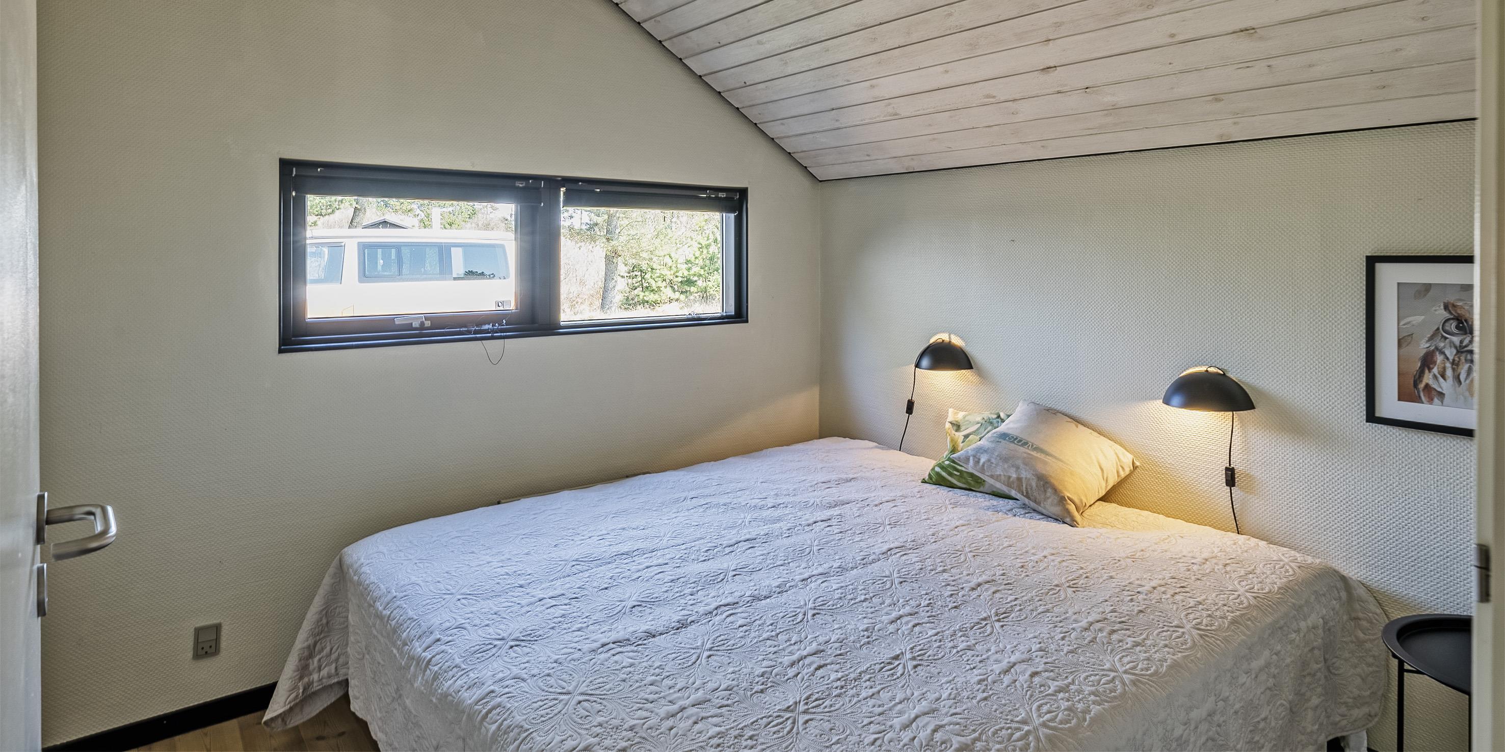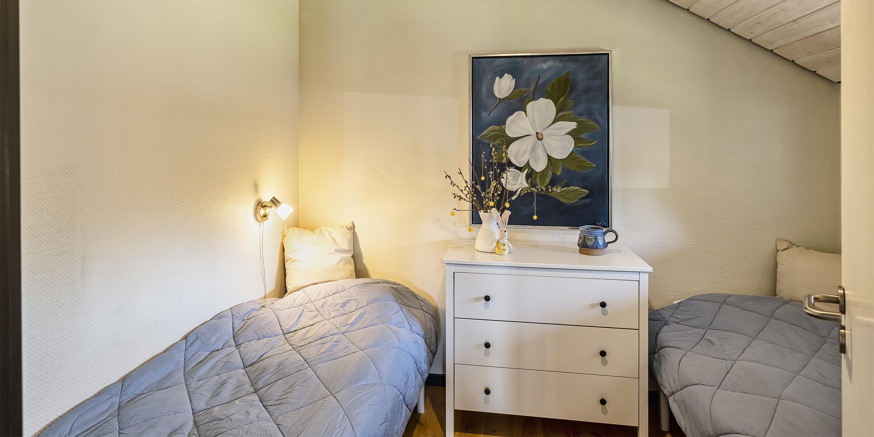 3 soveværelser. 2 med dobbeltseng 180x200 cm. 1 med 2 enkeltsenge (á 90x200 cm)