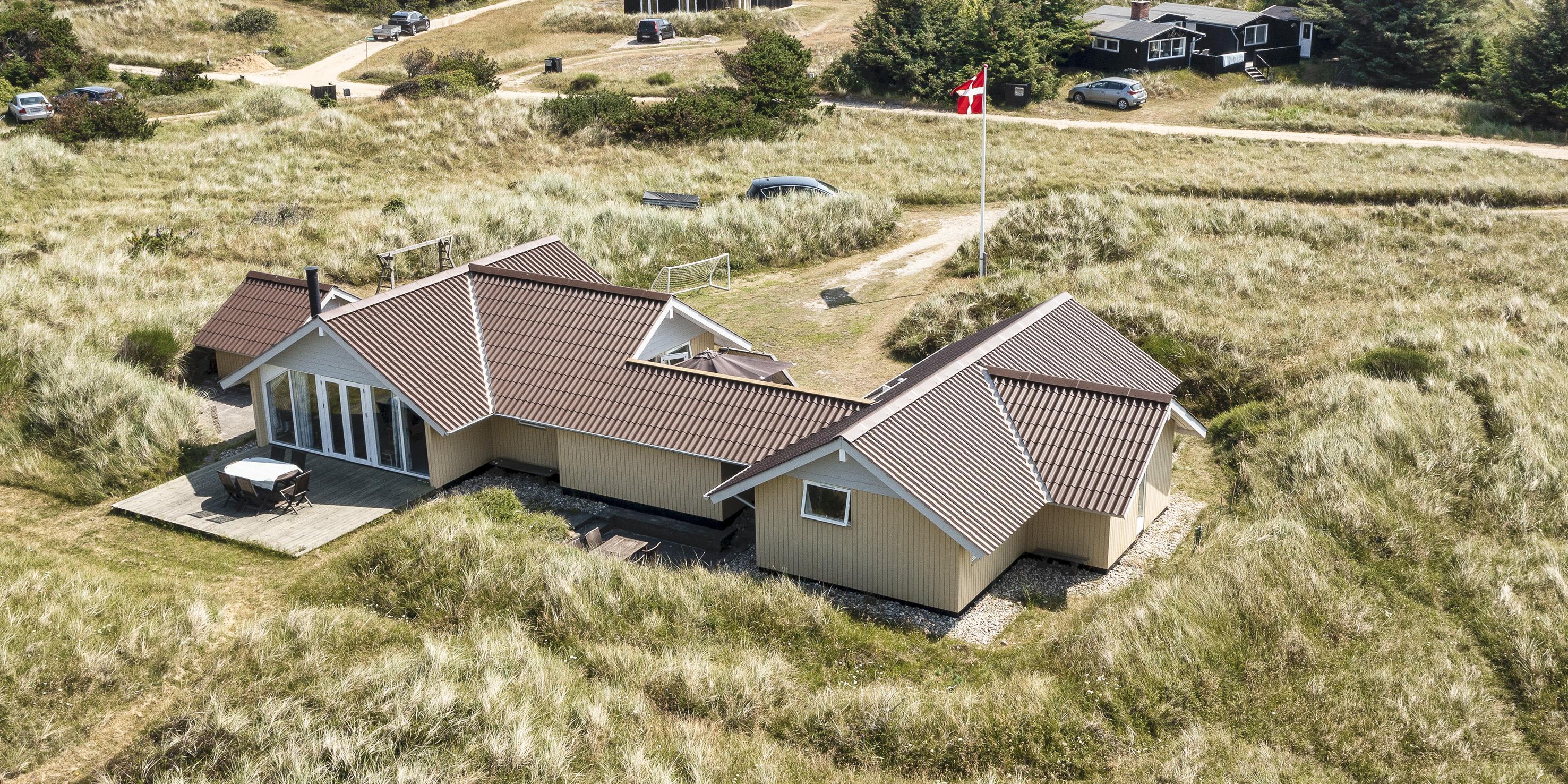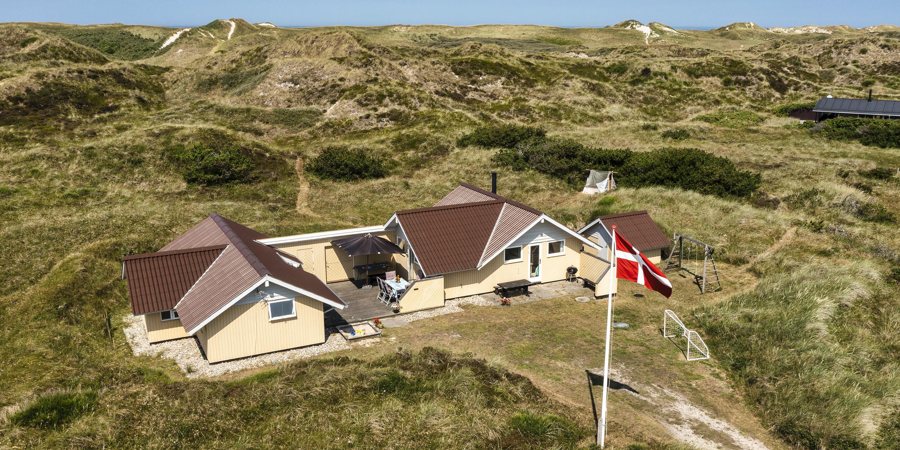 Dejligt lyst arkitekttegnet sommerhus til 7 personer beliggende på en yderst naturskøn grund på 3300 kvm. Grunden er omgivet af klitter, med direkte adgang til en fantastisk bilfri sandstrand og tæt beliggende på hede arealer.