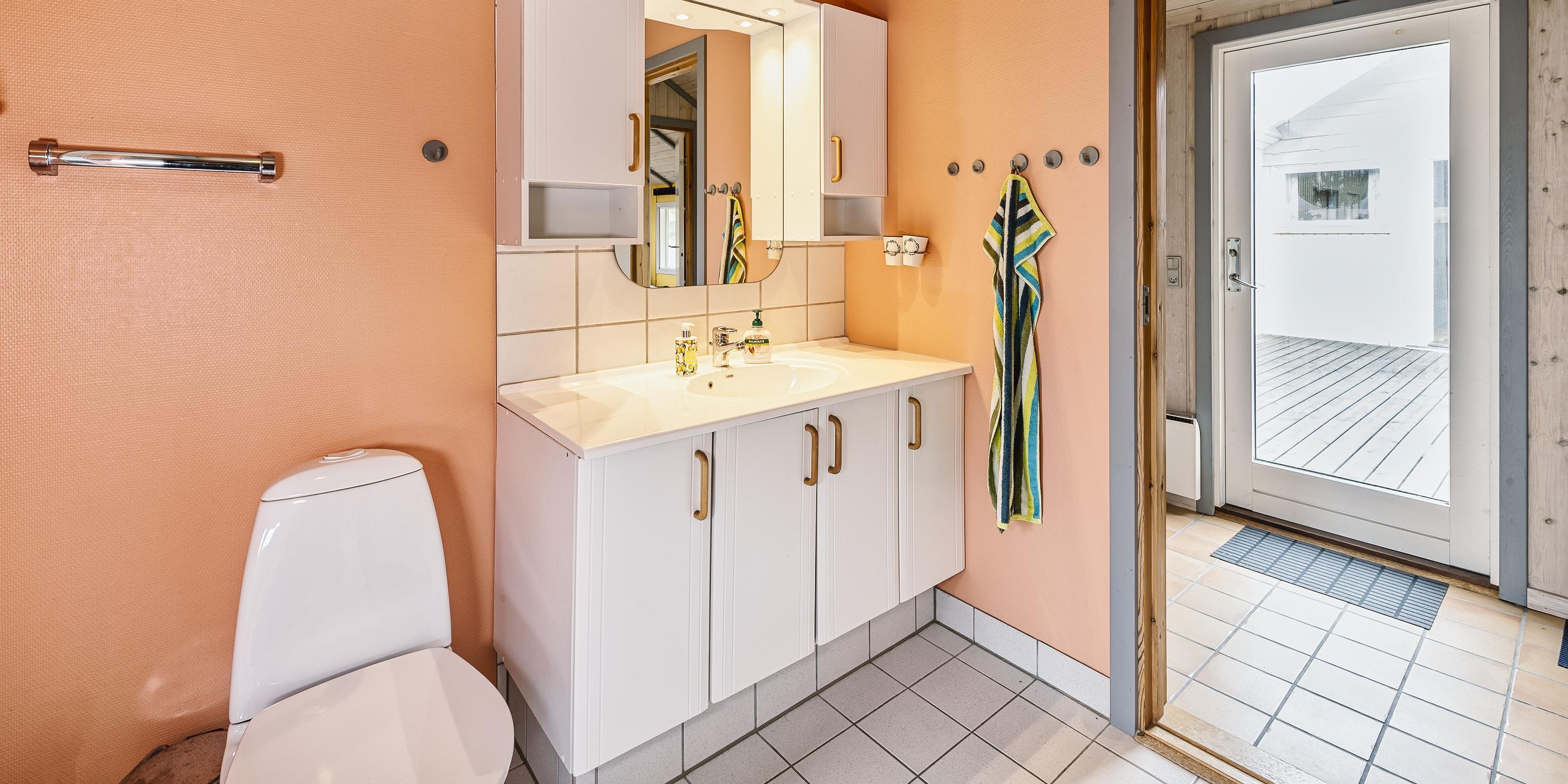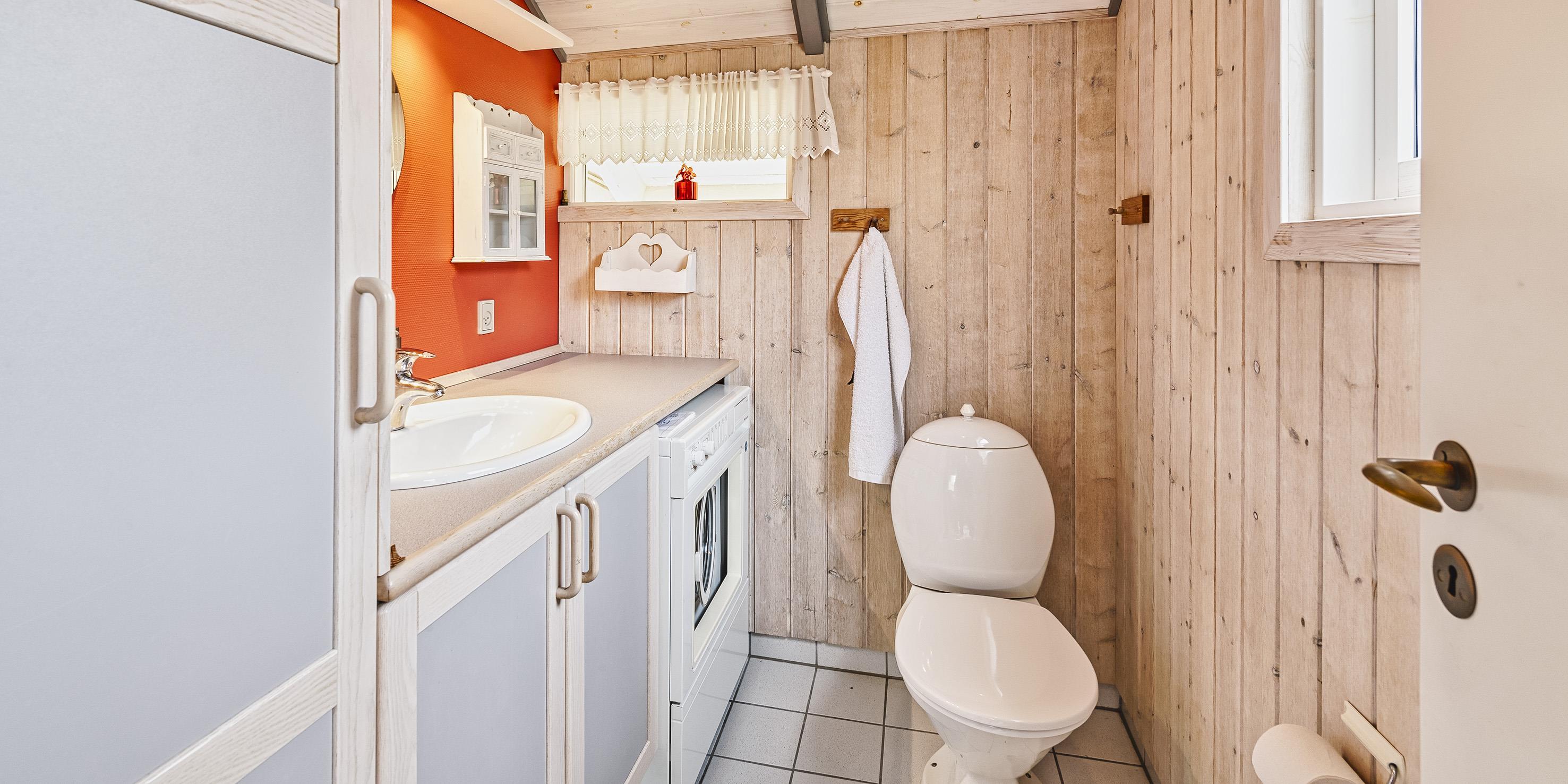 Bad med toilet, bruser og vask