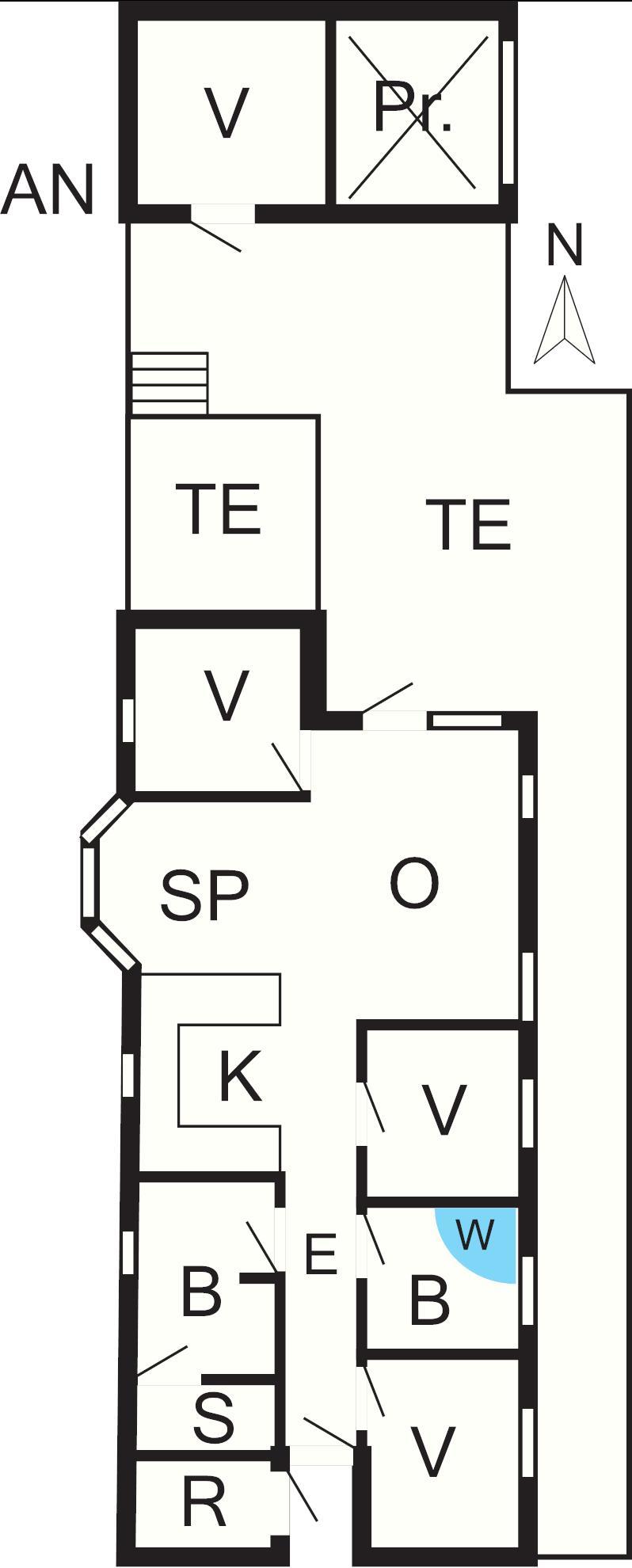 1 Opholdsstue: Brændeovn, tv, høj stol