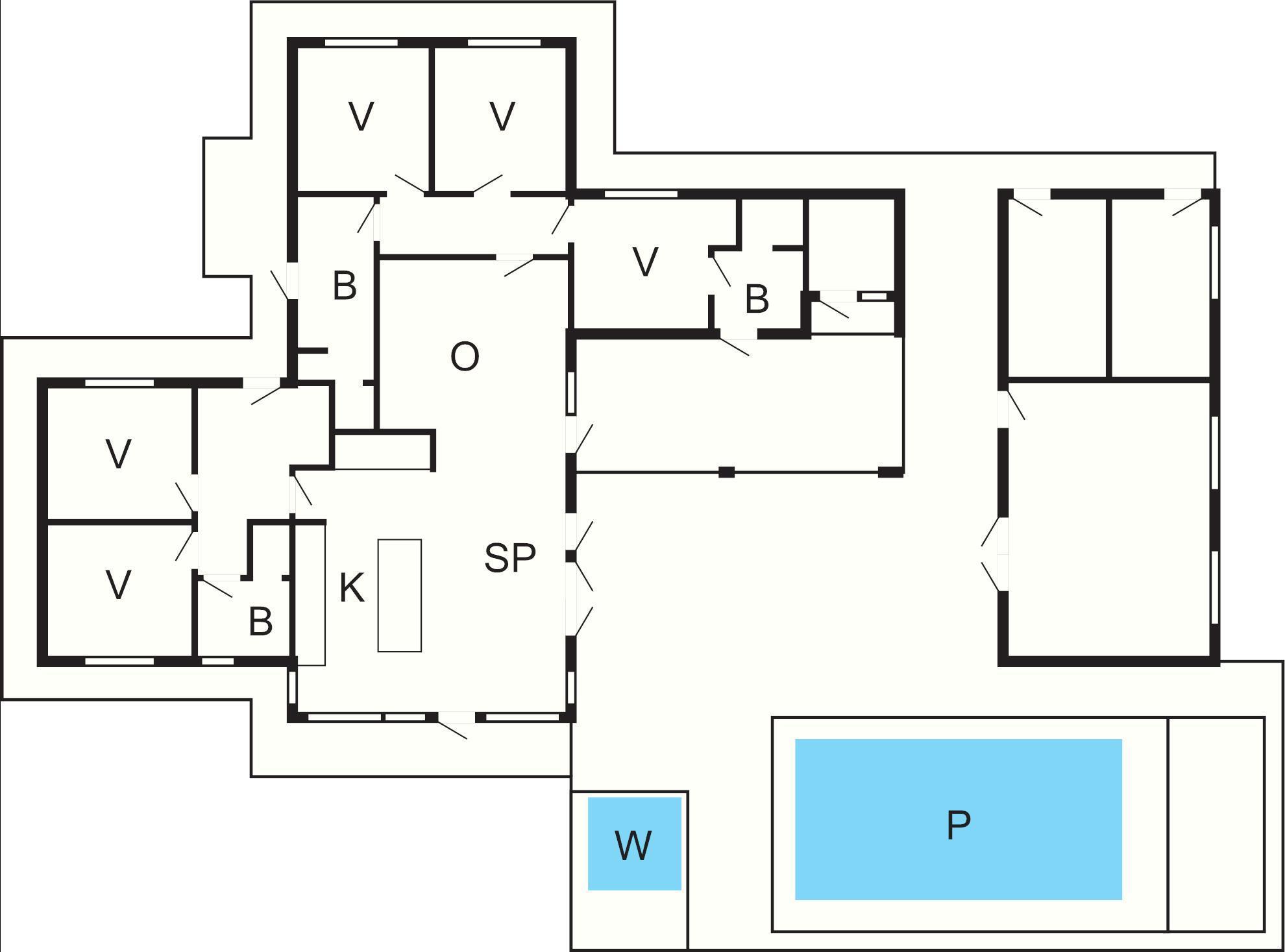 5 Soveværelser: (2S)+(2S)+(2S)+(2S)+(2S)