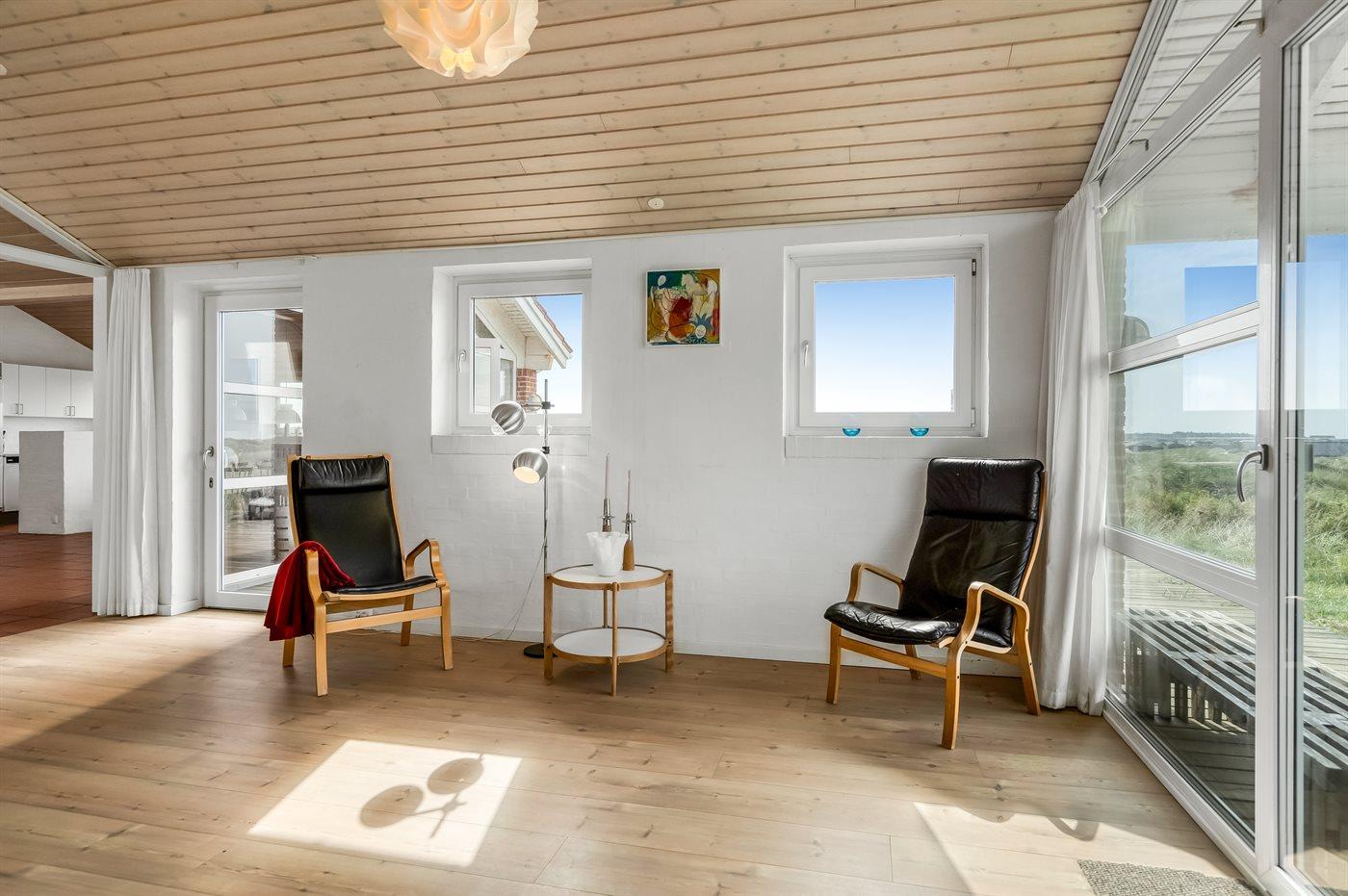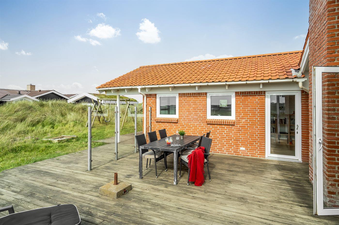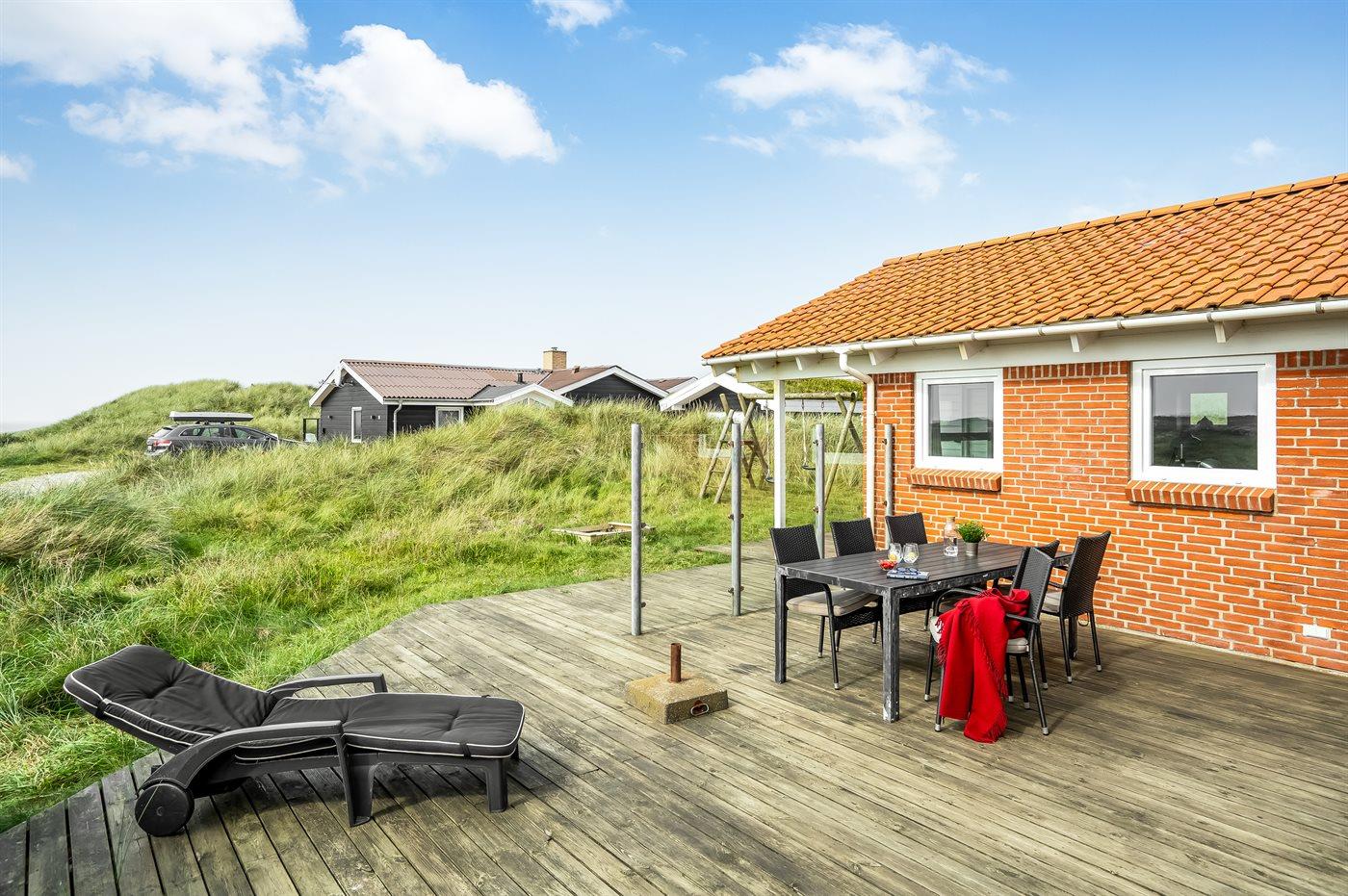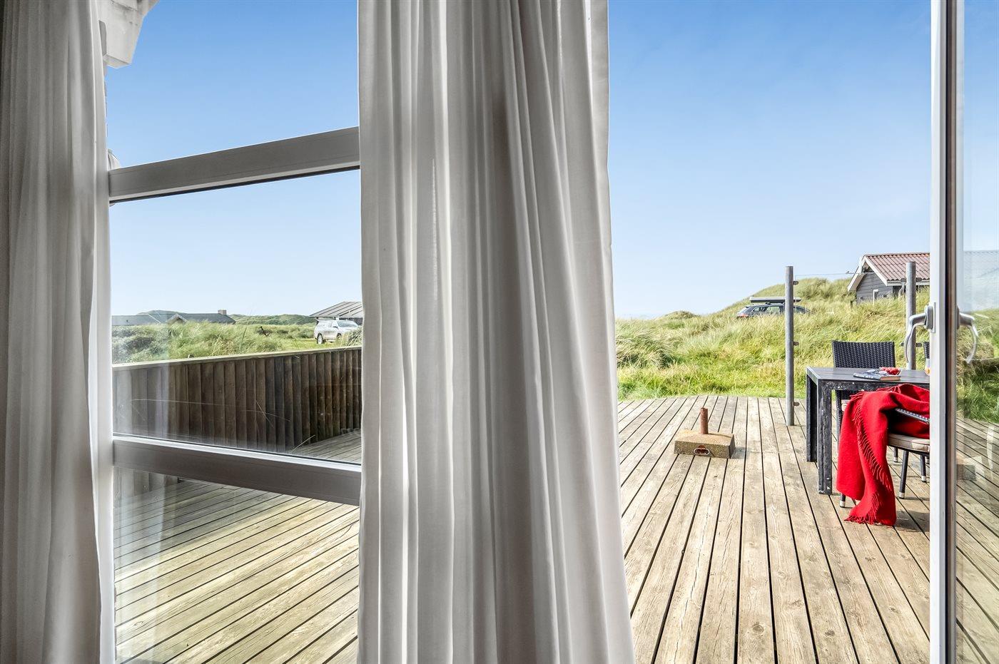 Huset er bygget til at modstå det hårde vejr, - men danner samtidig rammen om en god ferie, for her er skønne terrasser, hvor man på gode dage kan sidde og nyde udsigten og høre havet. Find en god bog og slå dig ned på terrassen eller i klitten. Huset er dog også egnet til den mere aktive feriegæst da det ligger midt i klitterne og der er ikke langt til stranden, hvor man kan gå lange ture og nyde stilheden. Her er der, hvis man ønsker det, en god mulighed for at få en skøn ferie.