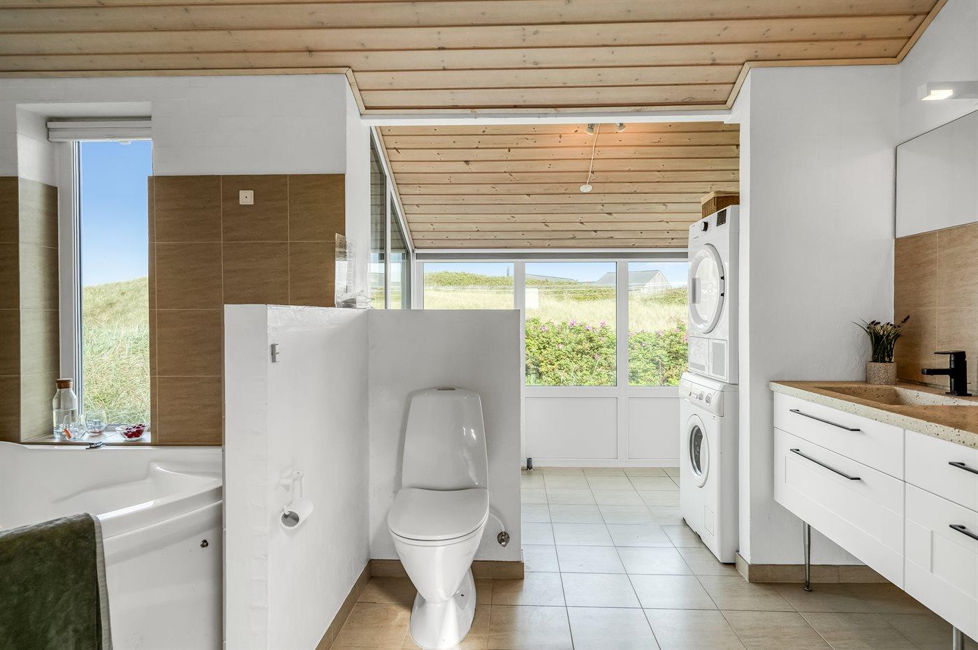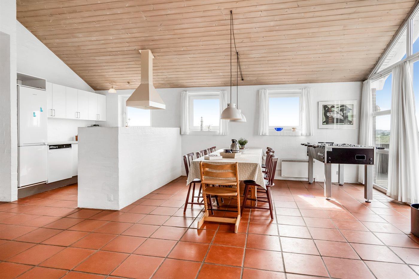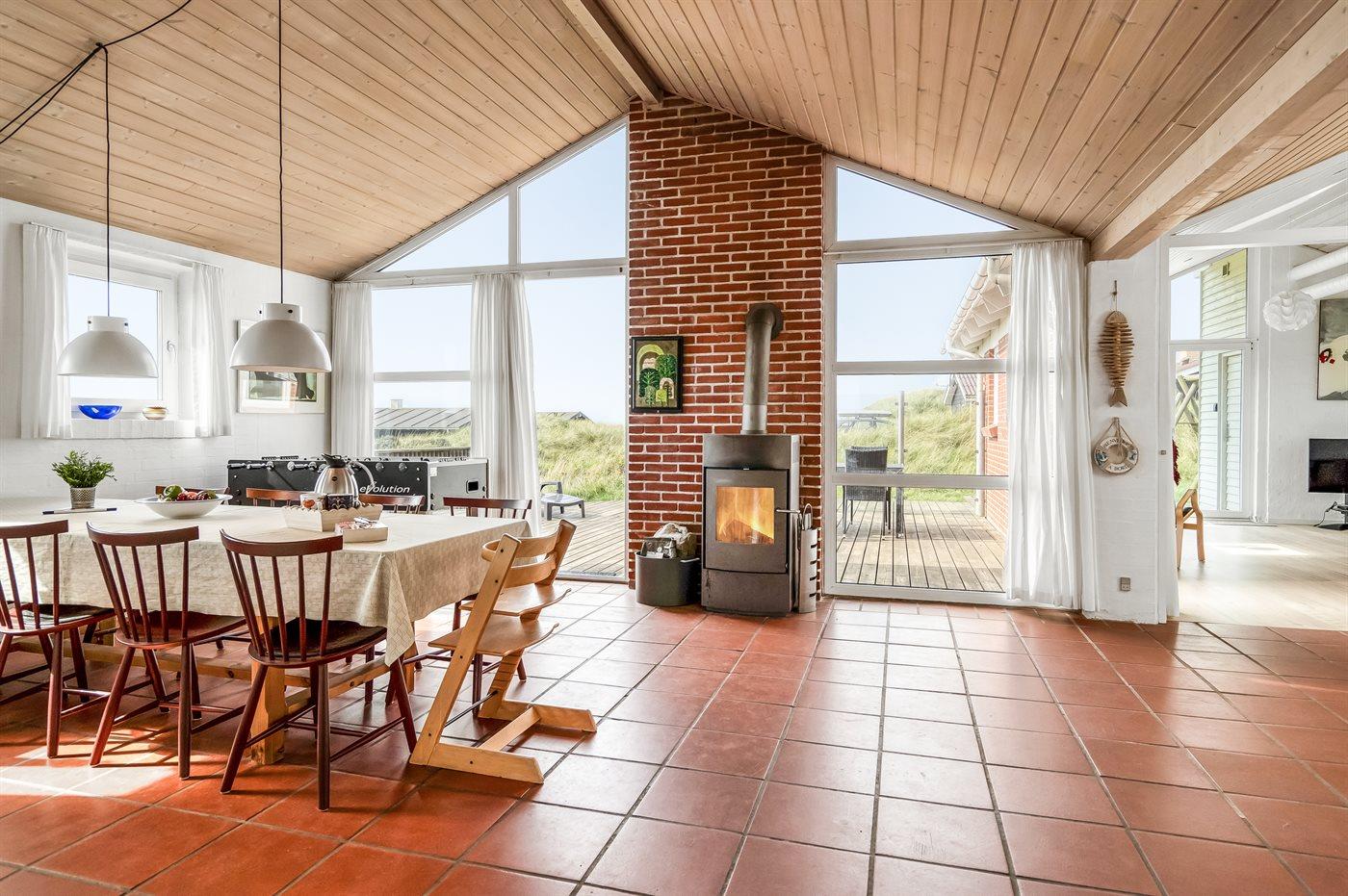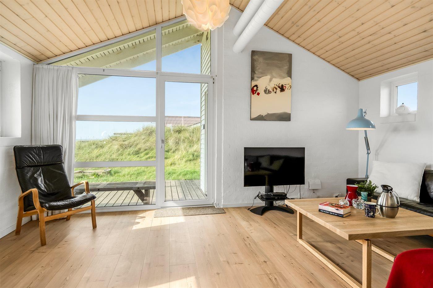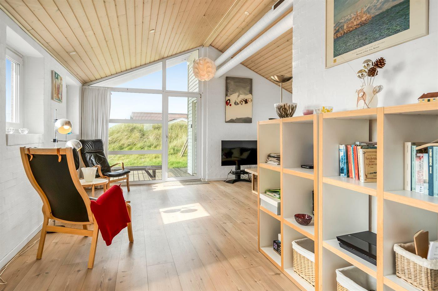 Huset er bygget til at modstå det hårde vejr, - men danner samtidig rammen om en god ferie, for her er skønne terrasser, hvor man på gode dage kan sidde og nyde udsigten og høre havet. Find en god bog og slå dig ned på terrassen eller i klitten. Huset er dog også egnet til den mere aktive feriegæst da det ligger midt i klitterne og der er ikke langt til stranden, hvor man kan gå lange ture og nyde stilheden. Her er der, hvis man ønsker det, en god mulighed for at få en skøn ferie.