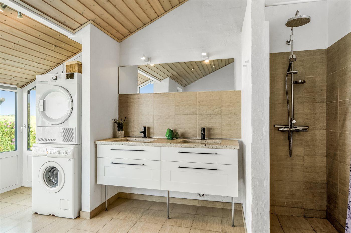 Der er 2 badeværelser med bruseniche og 2 toiletter. Der er gulvvarme på 1 badeværelse.