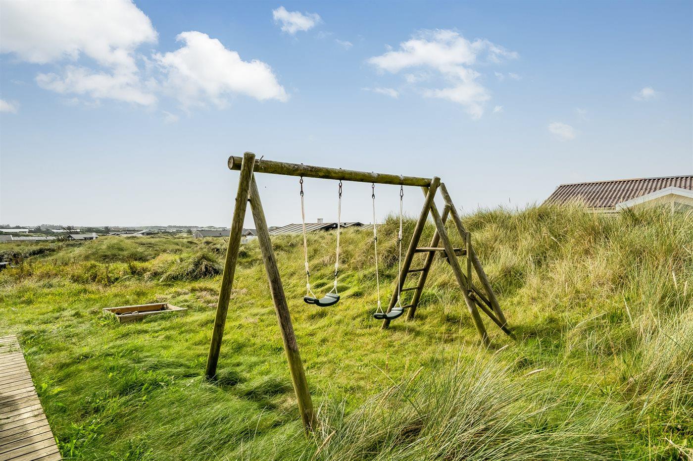 Ferieboligen er beliggende på en 1600 m² stor klitgrund. Der er 150 m til havet. Nærmeste forretning er beliggende i en afstand af 500 m. Der er en golfbane i en afstand af 11500 m. Til ferieboligen hører 120 m² terrasseareal. Desuden er der 10 m² overdækket terrasse. Der er redskabsrum. Gynge. Parkering ved ferieboligen.