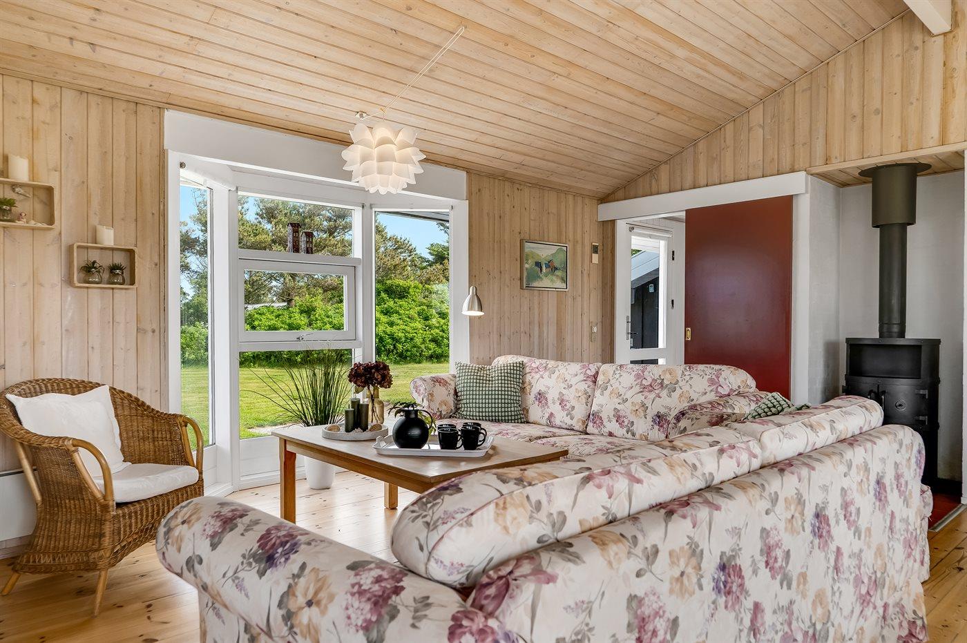 Hyggeligt sommerhus i naturskønne omgivelser nær Løkken med stor terrasse og brændeovn.