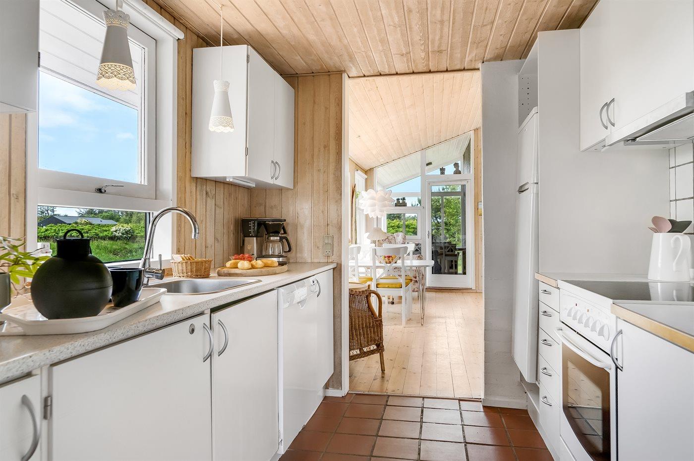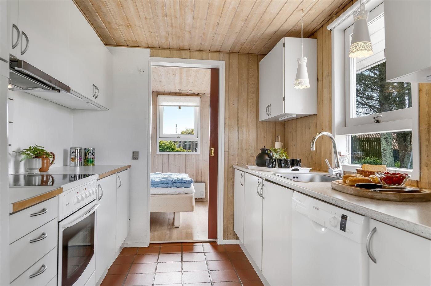 Køkkenet er udstyret med 1 køleskab. Der er 4 keramiske kogeplader, varmluftovn, mikrobølgeovn samt opvaskemaskine.