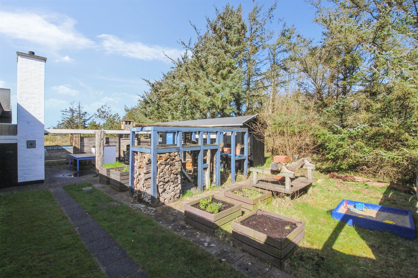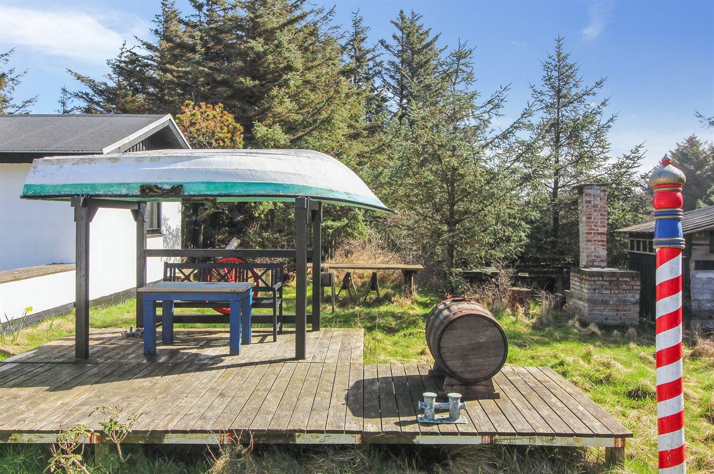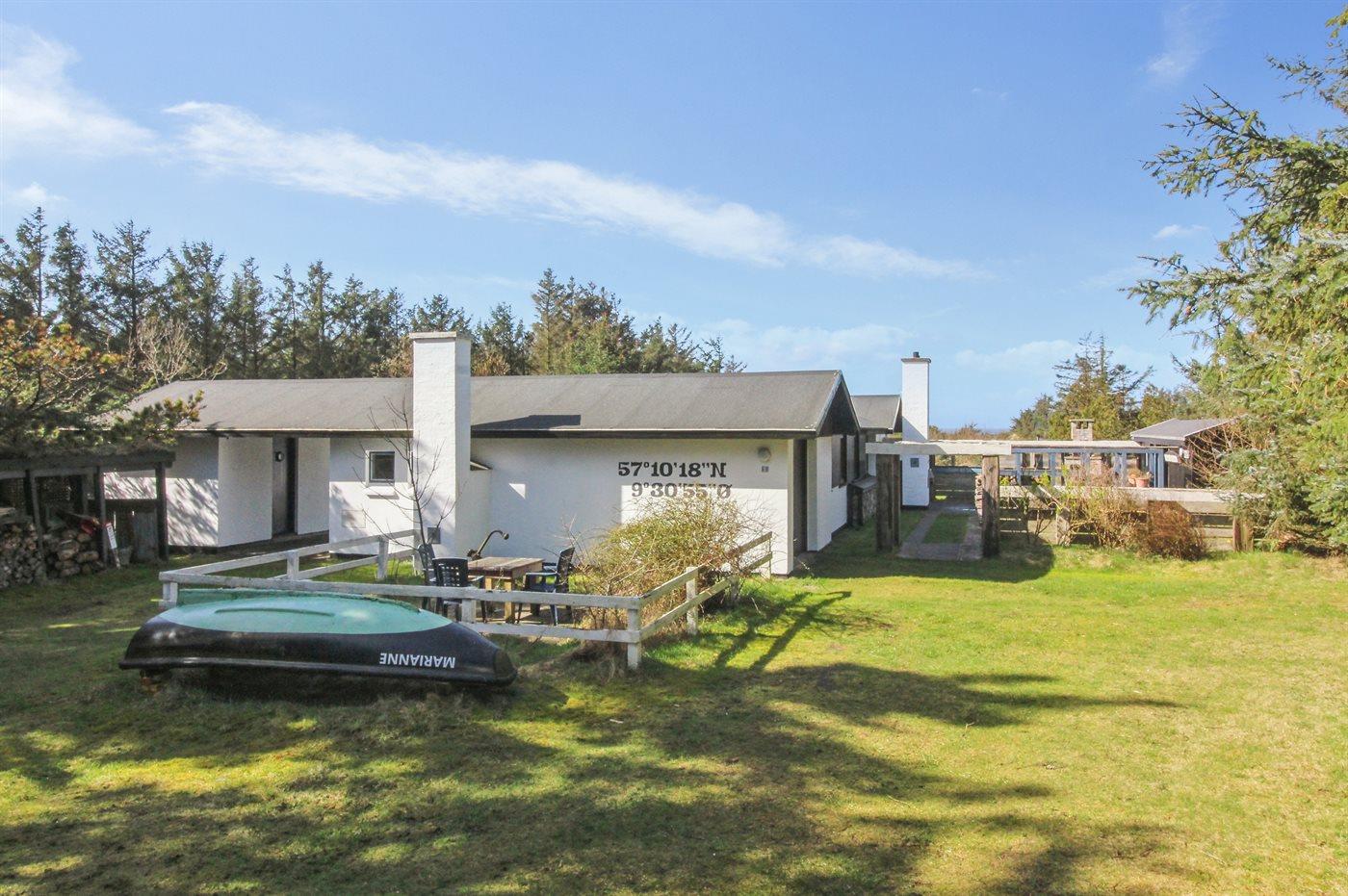 Ferieboligen er beliggende på en 4422 m² stor naturgrund. Der er 375 m til havet. Nærmeste forretning er beliggende i en afstand af 1200 m. Til ferieboligen hører 27 m² terrasseareal. Sandkasse. Grill til rådighed. Der er installeret stik til opladning af elbil. Parkering ved ferieboligen.