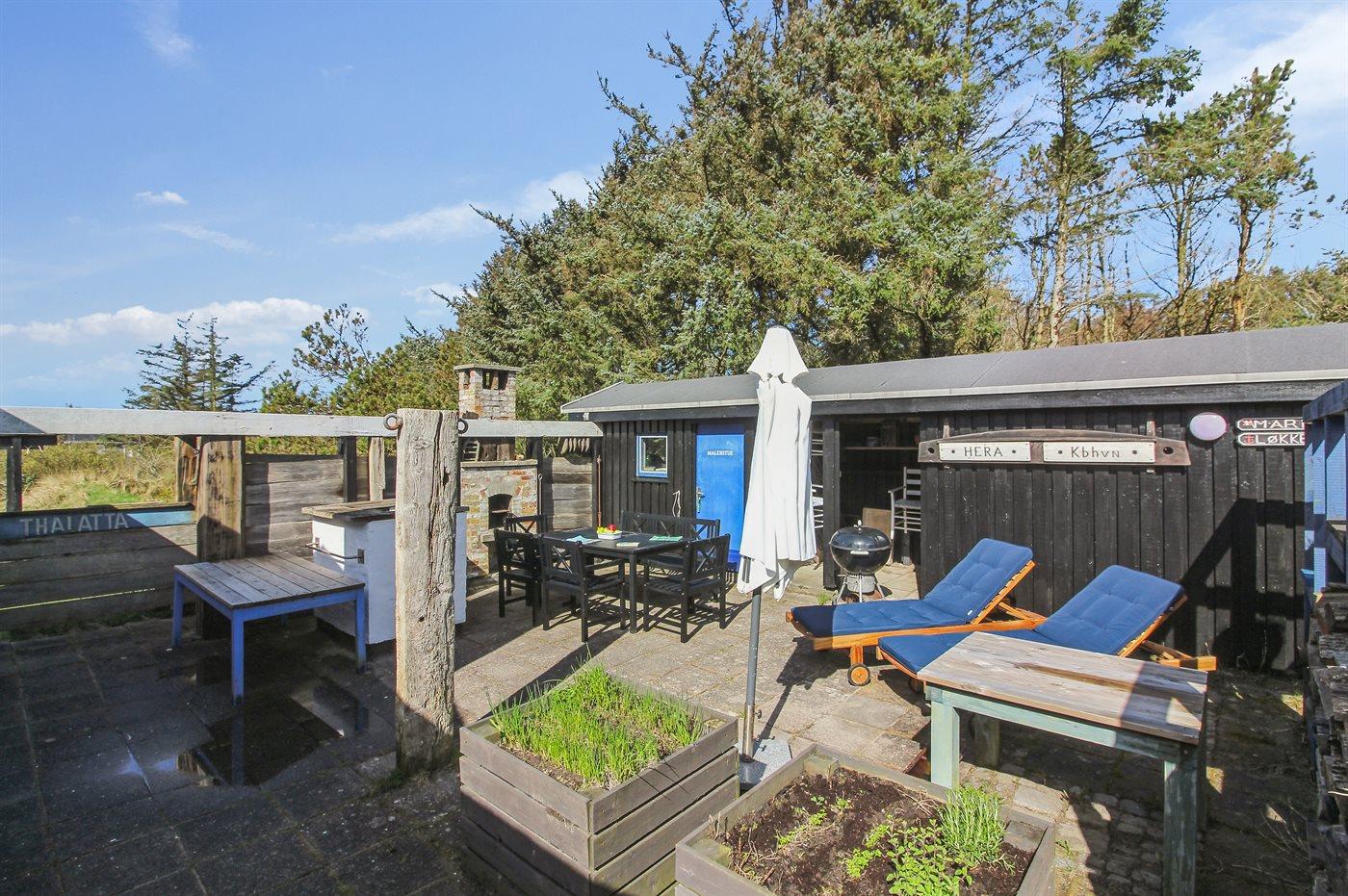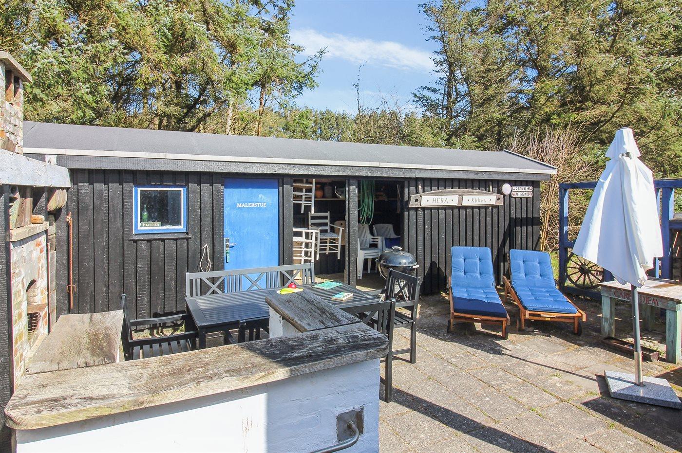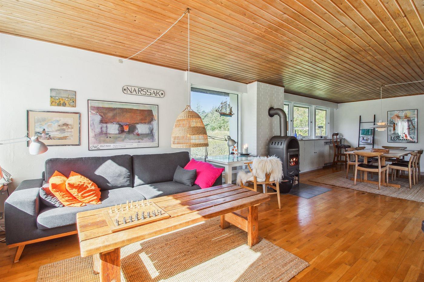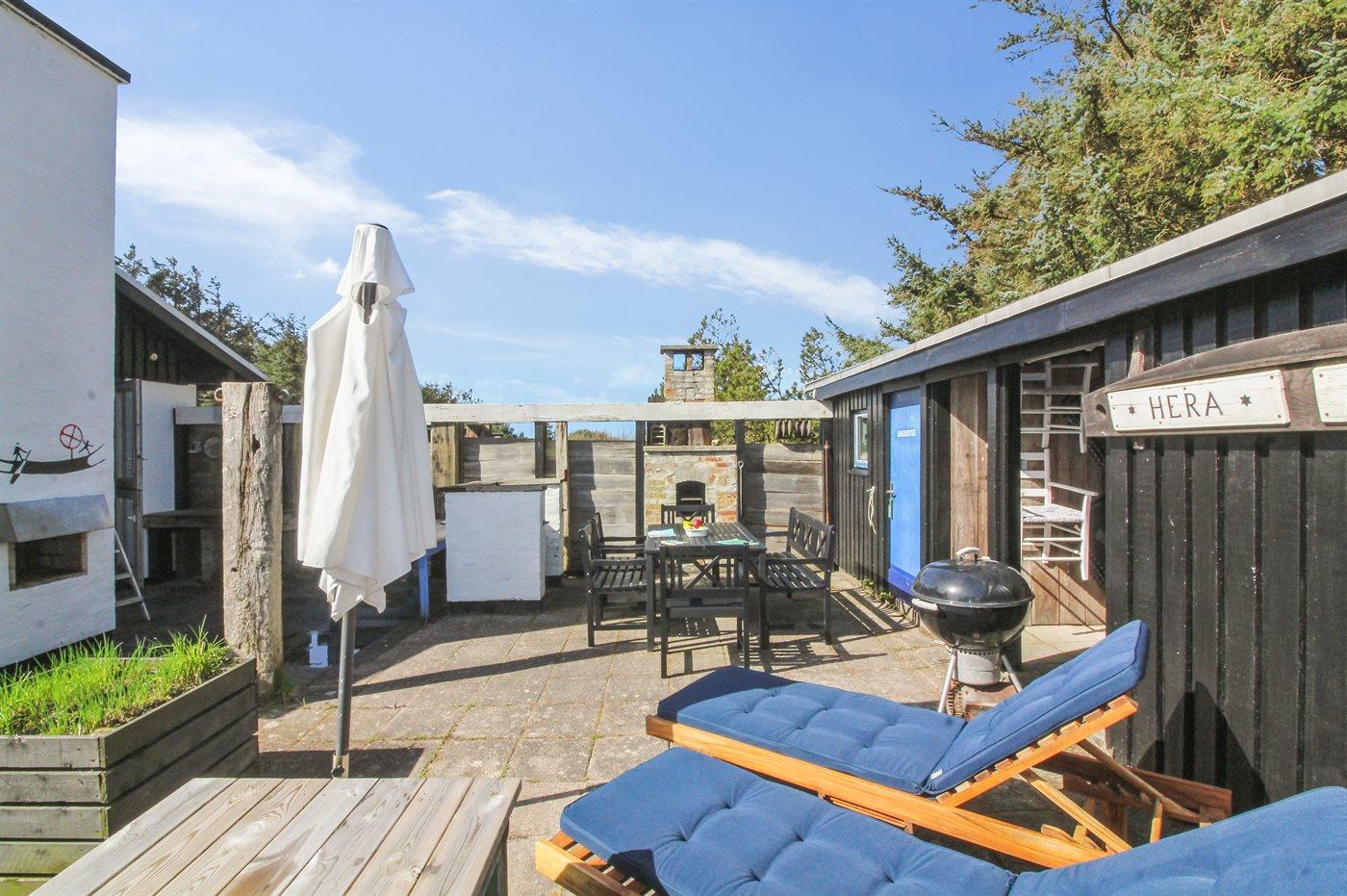 Ferieboligen er beliggende på en 4422 m² stor naturgrund. Der er 375 m til havet. Nærmeste forretning er beliggende i en afstand af 1200 m. Til ferieboligen hører 27 m² terrasseareal. Sandkasse. Grill til rådighed. Der er installeret stik til opladning af elbil. Parkering ved ferieboligen.