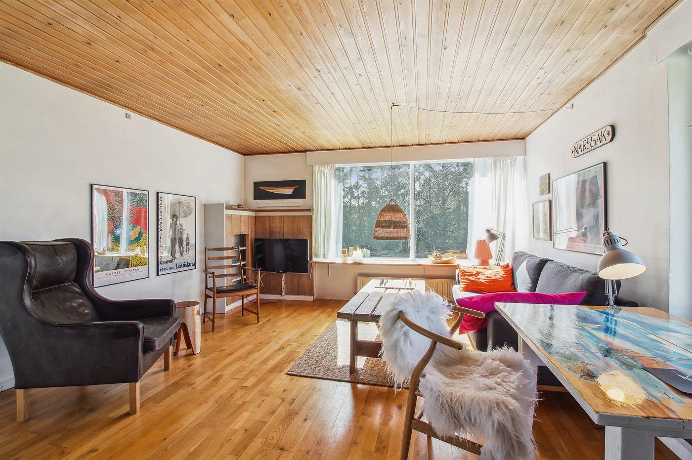 Hyggeligt sommerhus med personligt præg beliggende ugeneret på en meget stor grund i et naturskønt område nær havet og dejlig badestrand.