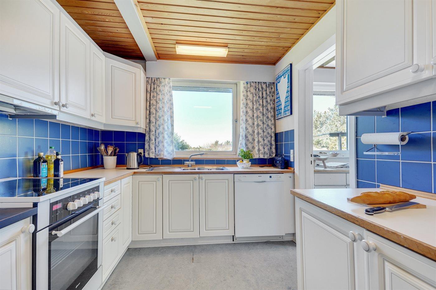 Køkkenet er udstyret med 1 køleskab. Der er 4 keramiske kogeplader, varmluftovn, mikrobølgeovn samt opvaskemaskine.