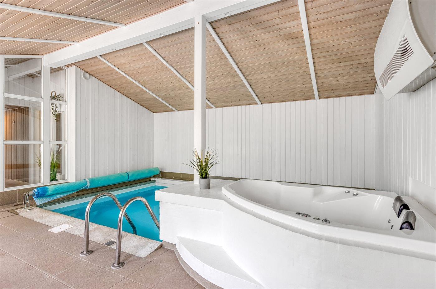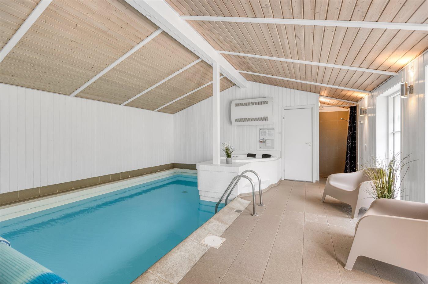 I den indendørs swimmingpool er der mulighed for leg og hyggeligt samvær. Swimmingpoolen måler op til 3,5 m i bredden, 5 m i længden og den er op til 1,5 m dyb. Vandet er mellem 24 og 28° C varmt. Swimmingpoolen har modstrømsanlæg. Der er gulvvarme i swimmingpoolområdet.