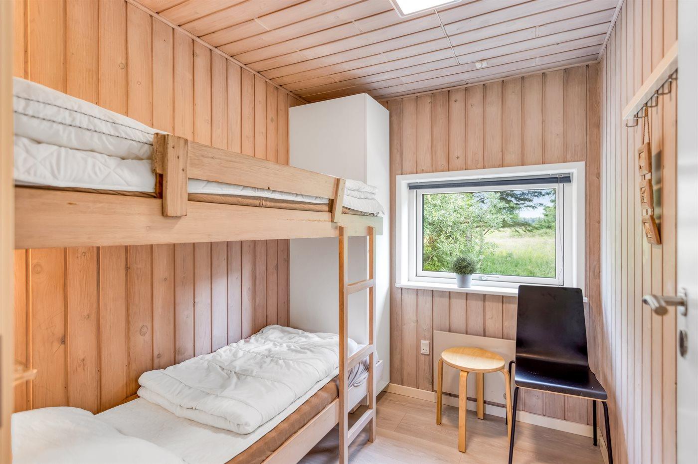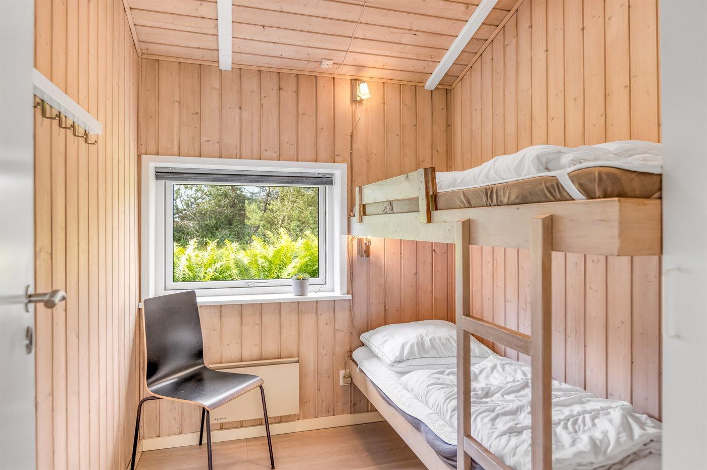 Der er i alt 4 soveværelser. Sovepladserne fordeler sig på: 4 sovepladser i dobbeltsenge. 4 sovepladser i køjesenge. Derudover er der 1 stk. barneseng.