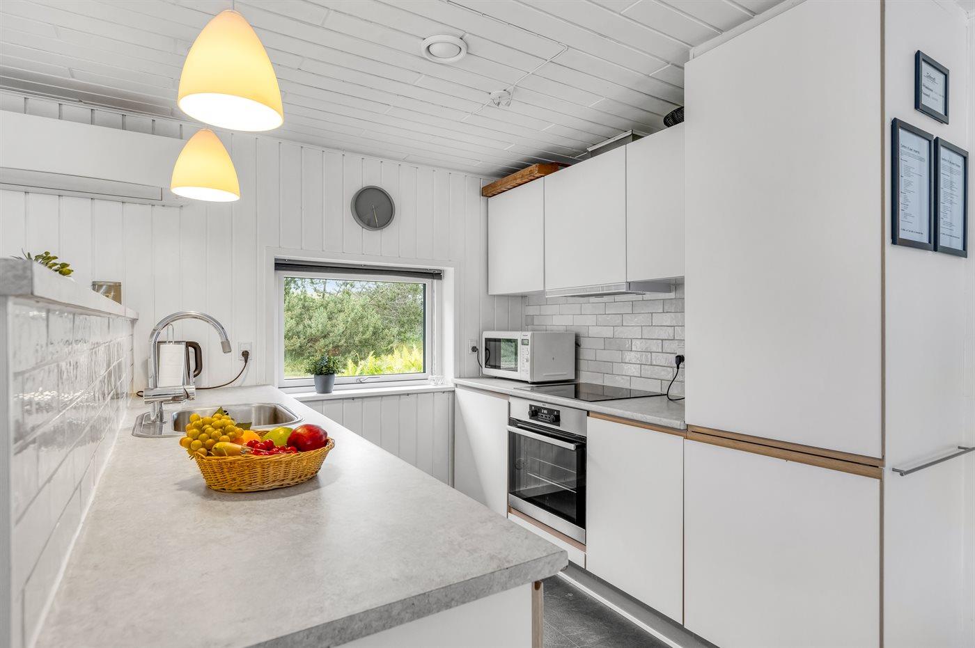 Køkkenet er udstyret med 1 køleskab. Der er 4 induktionskogeplader, varmluftovn, mikrobølgeovn samt opvaskemaskine.