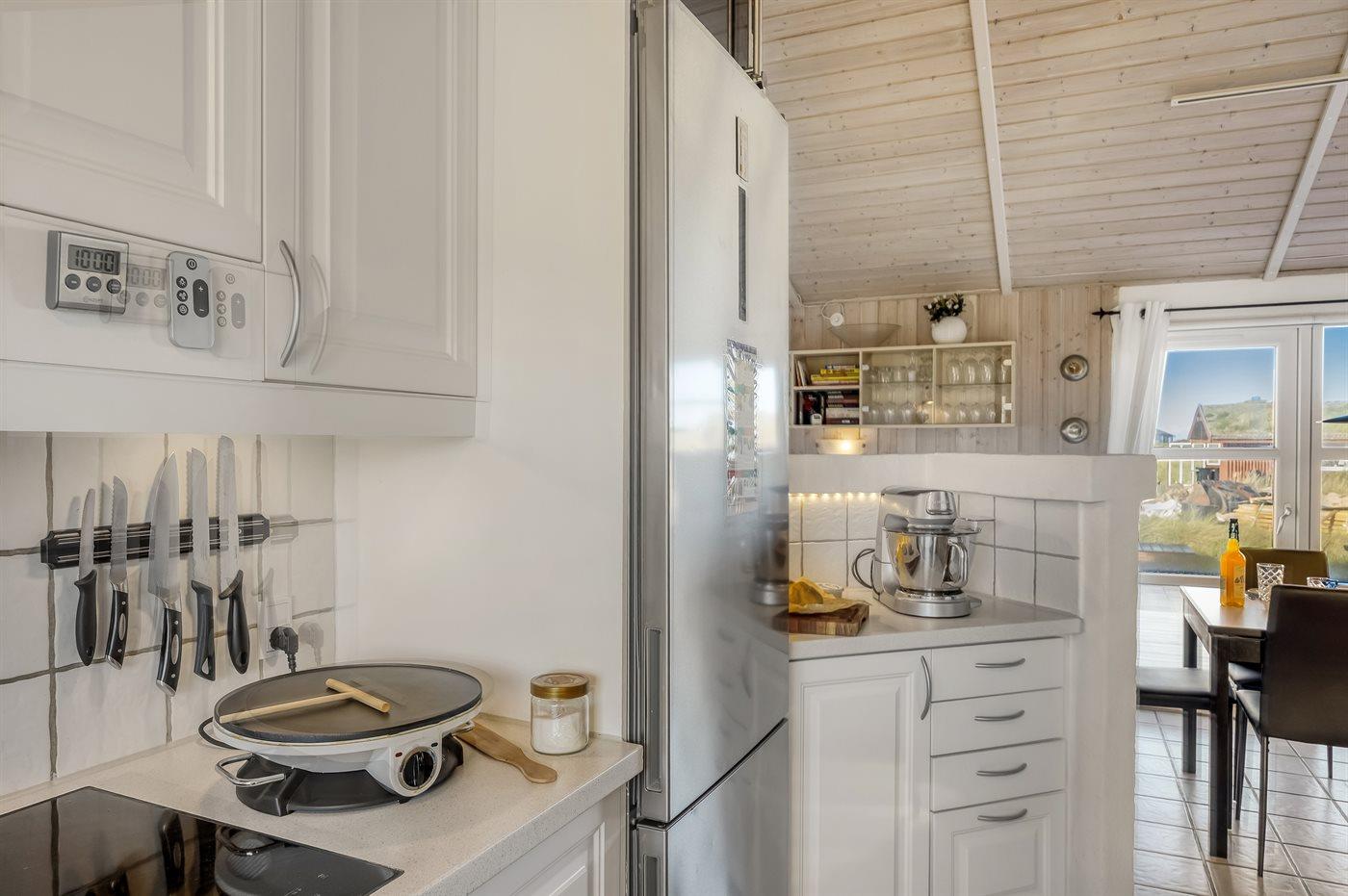 Køkkenet er udstyret med 1 køleskab. Der er 4 induktionskogeplader, varmluftovn, mikrobølgeovn samt opvaskemaskine.