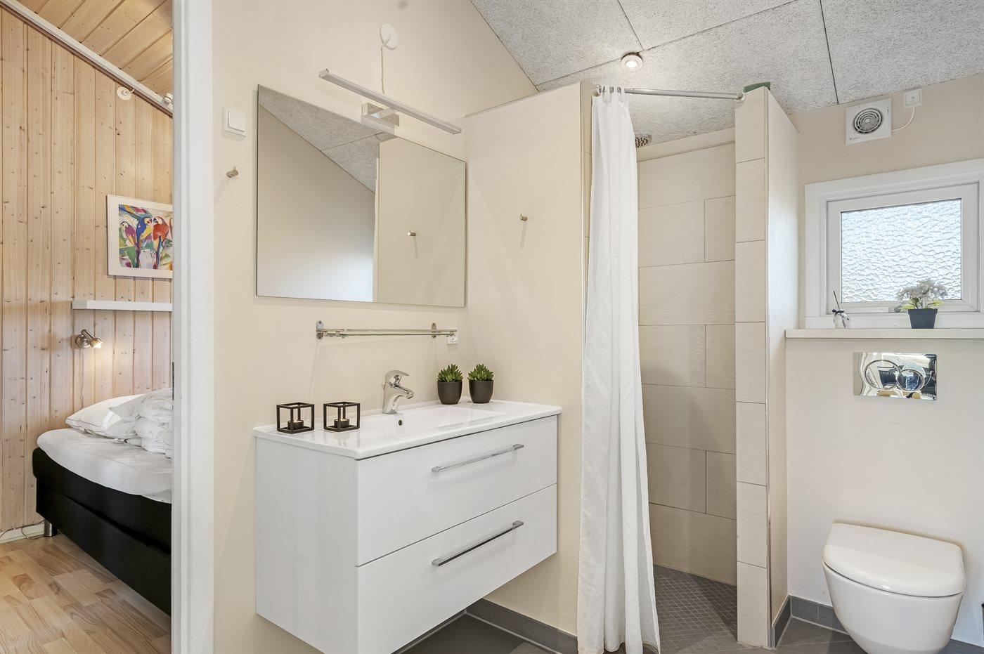 Der er 2 badeværelser med bruseniche og 2 toiletter. Der er gulvvarme på 2 badeværelser. I saunaen er der mulighed for afslapning.